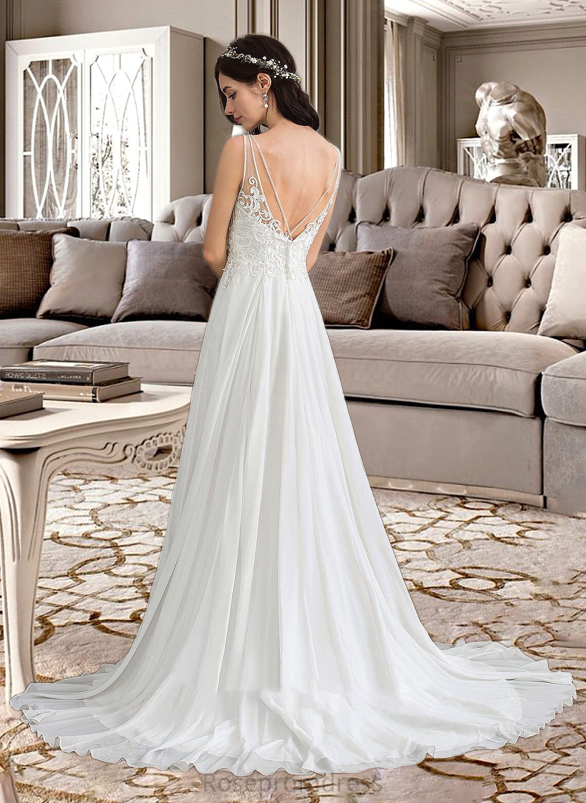 Nathaly A-Line V-neck Sweep Train Chiffon Wedding Dress With Beading Sequins Split Front SRSP0013806