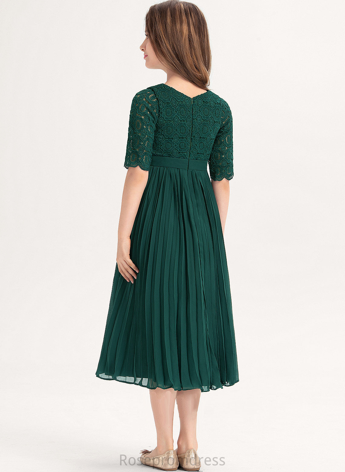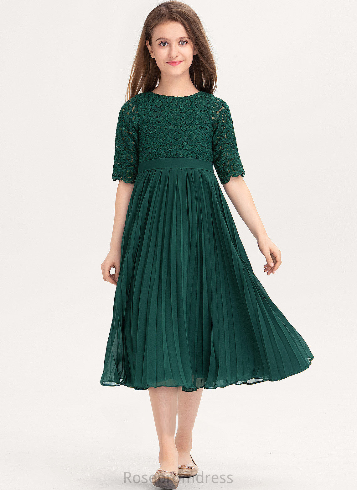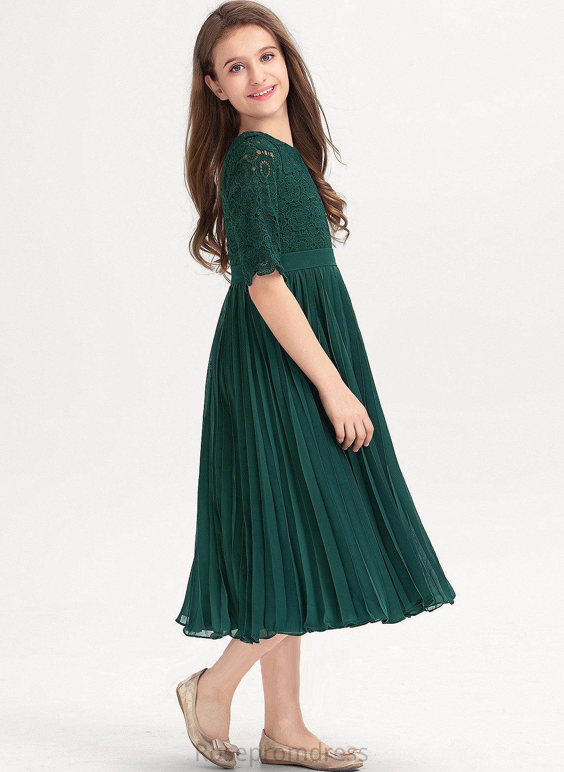 Neck A-Line Fiona With Tea-Length Junior Bridesmaid Dresses Scoop Chiffon Pleated Lace