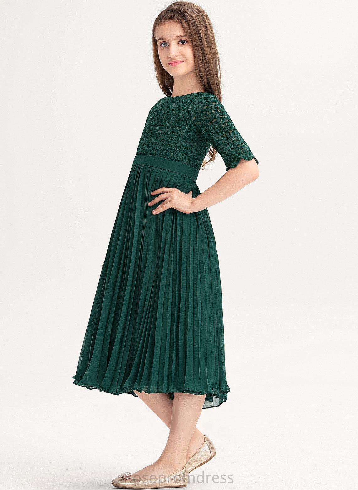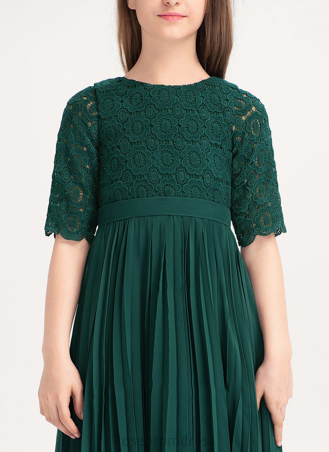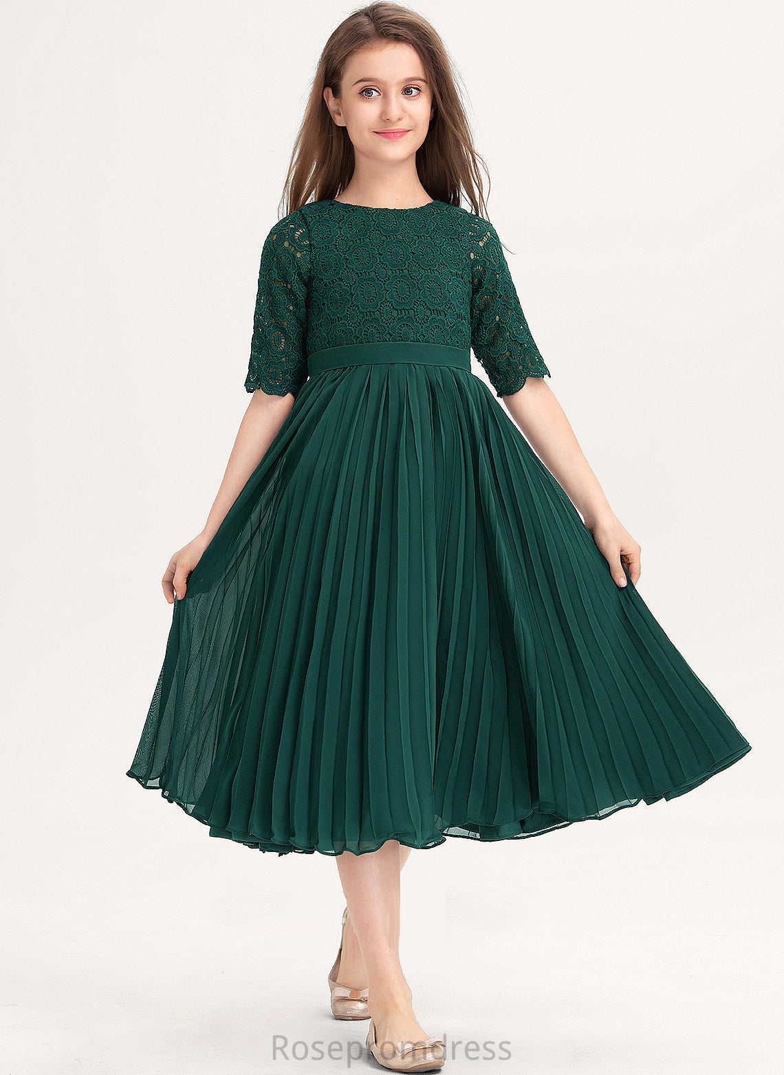 Neck A-Line Fiona With Tea-Length Junior Bridesmaid Dresses Scoop Chiffon Pleated Lace