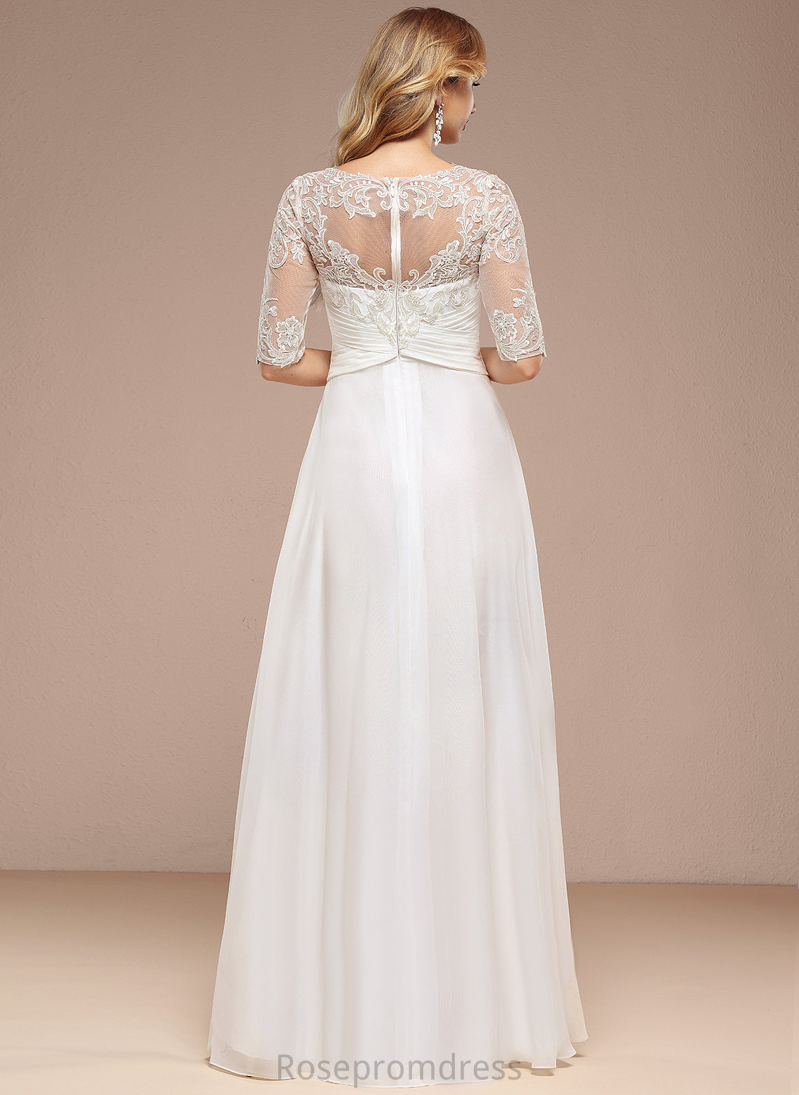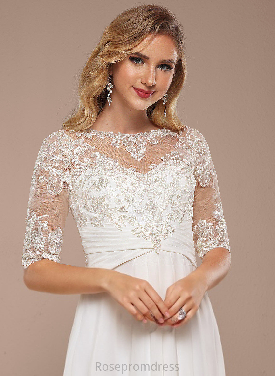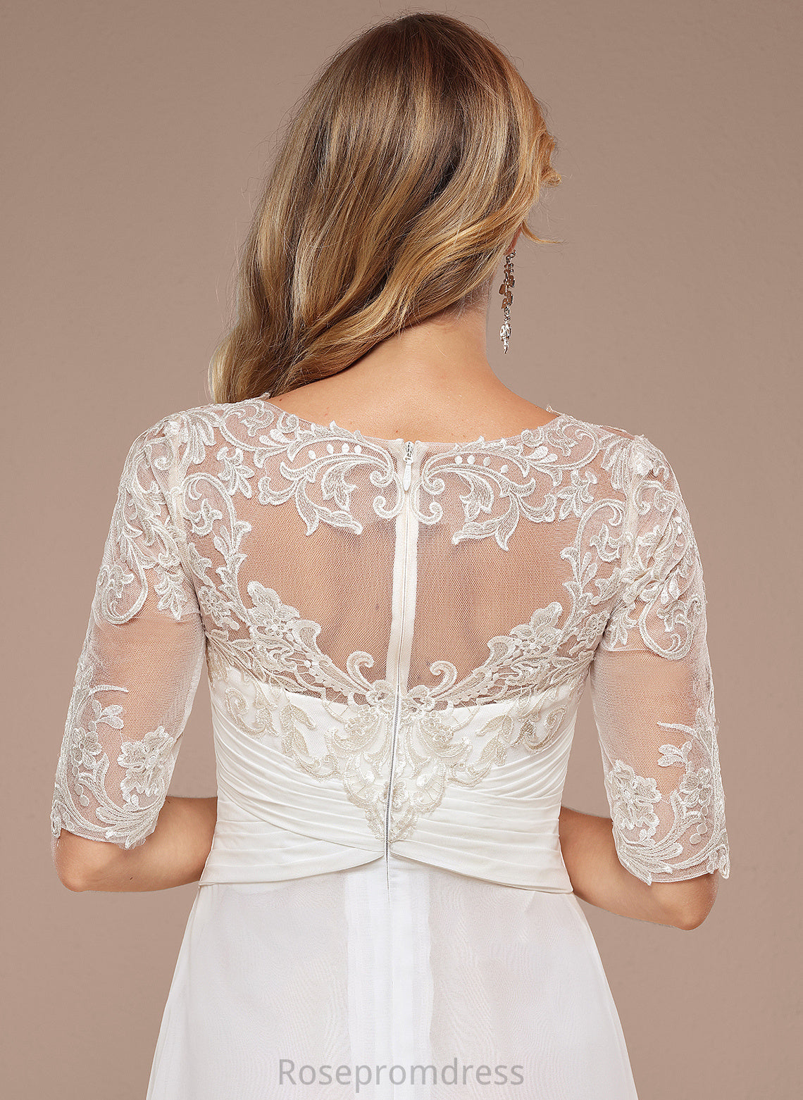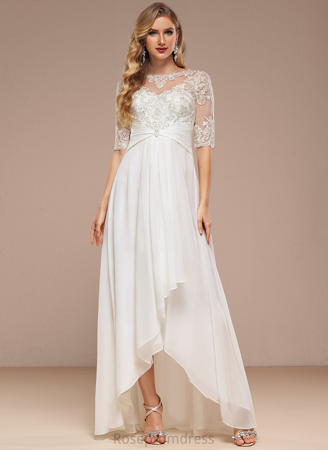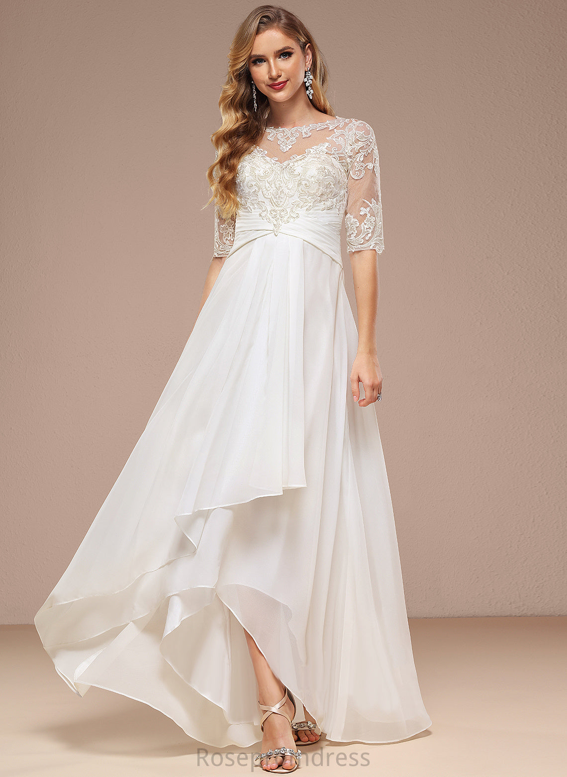 Neck Chiffon Dress Boat Asymmetrical Wedding Lace A-Line Jocelynn Wedding Dresses
