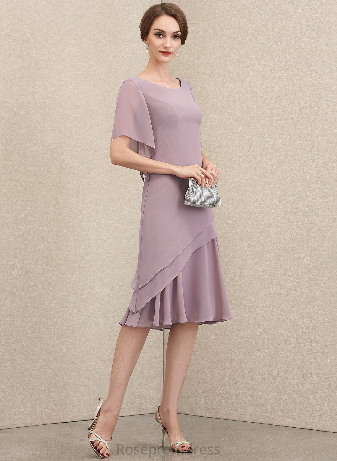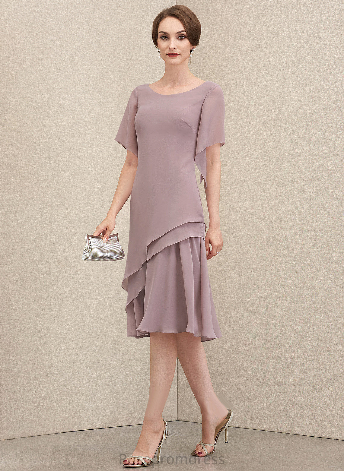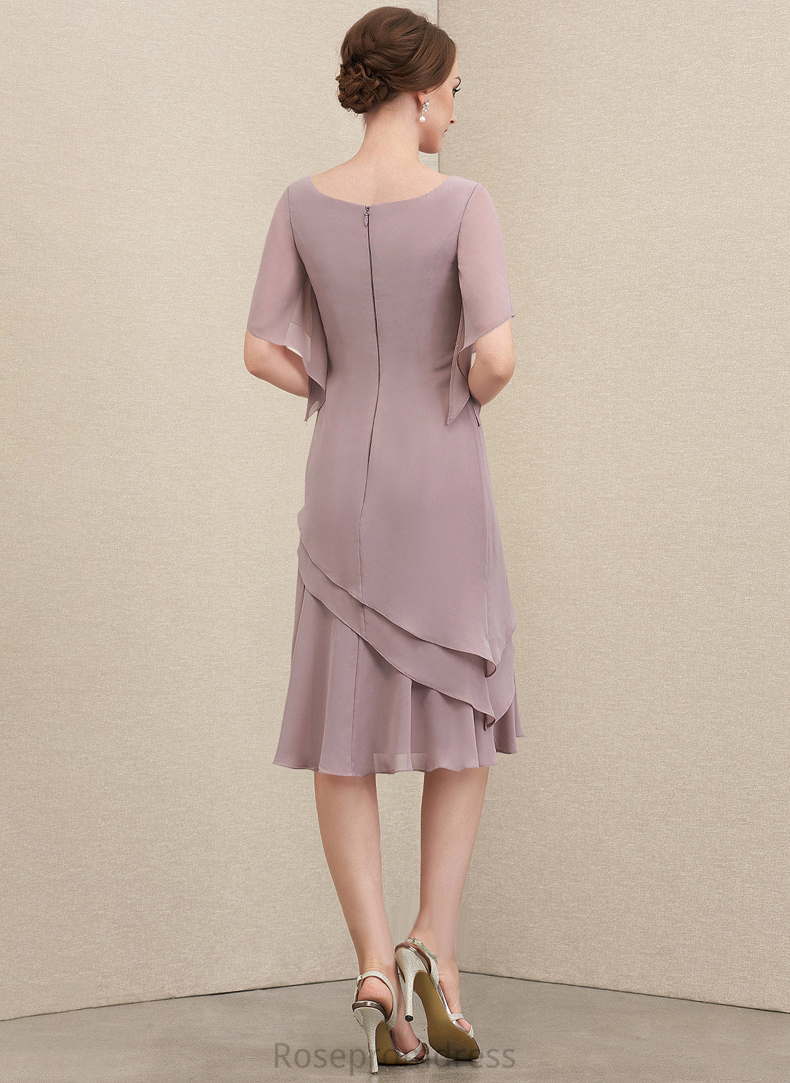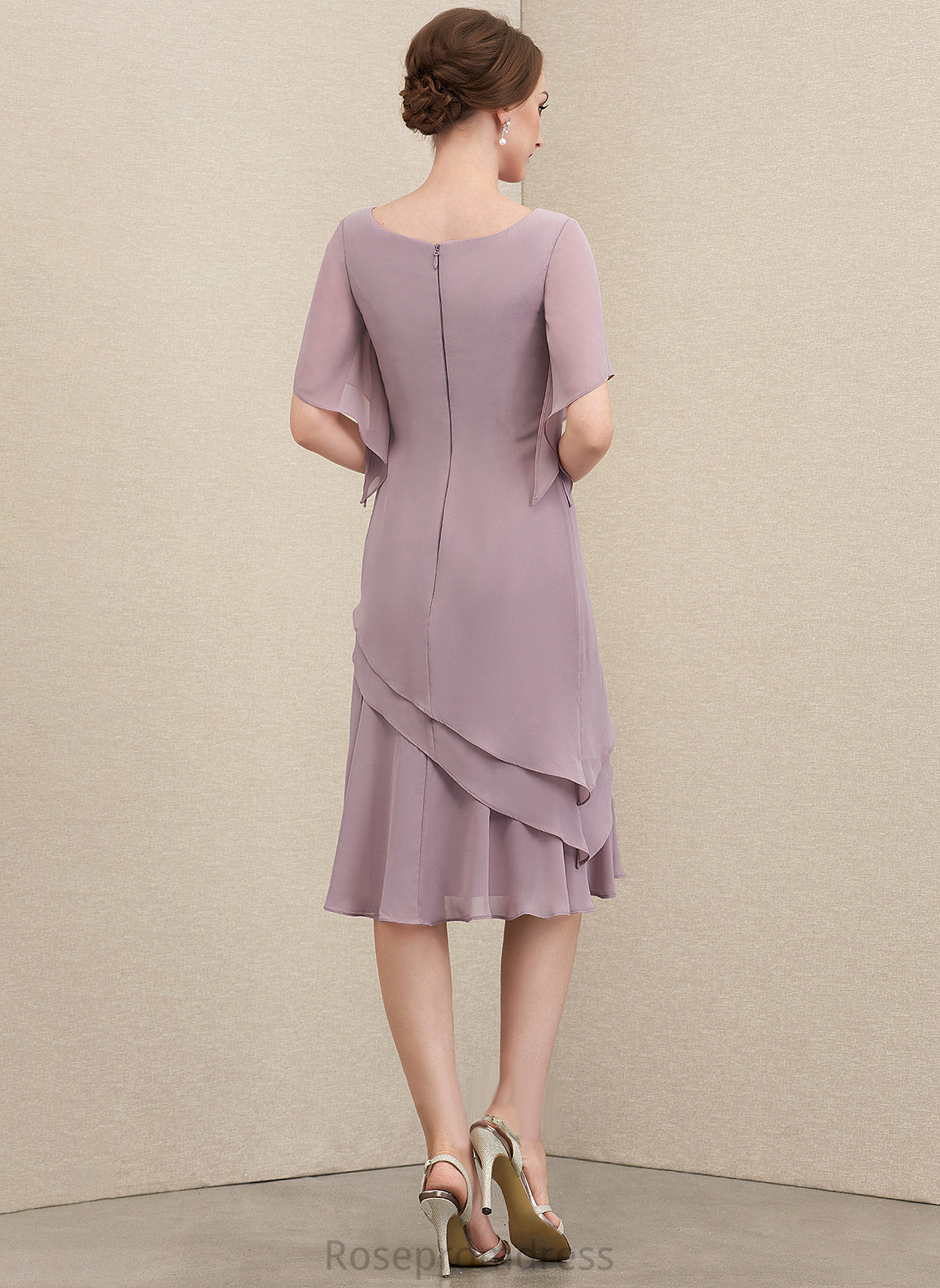 Neck Chiffon Knee-Length Cocktail Dresses Cocktail Cascading A-Line With Scoop Janiyah Dress Ruffles