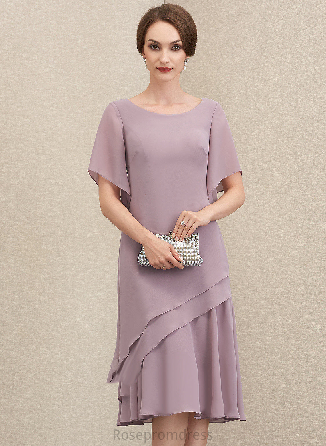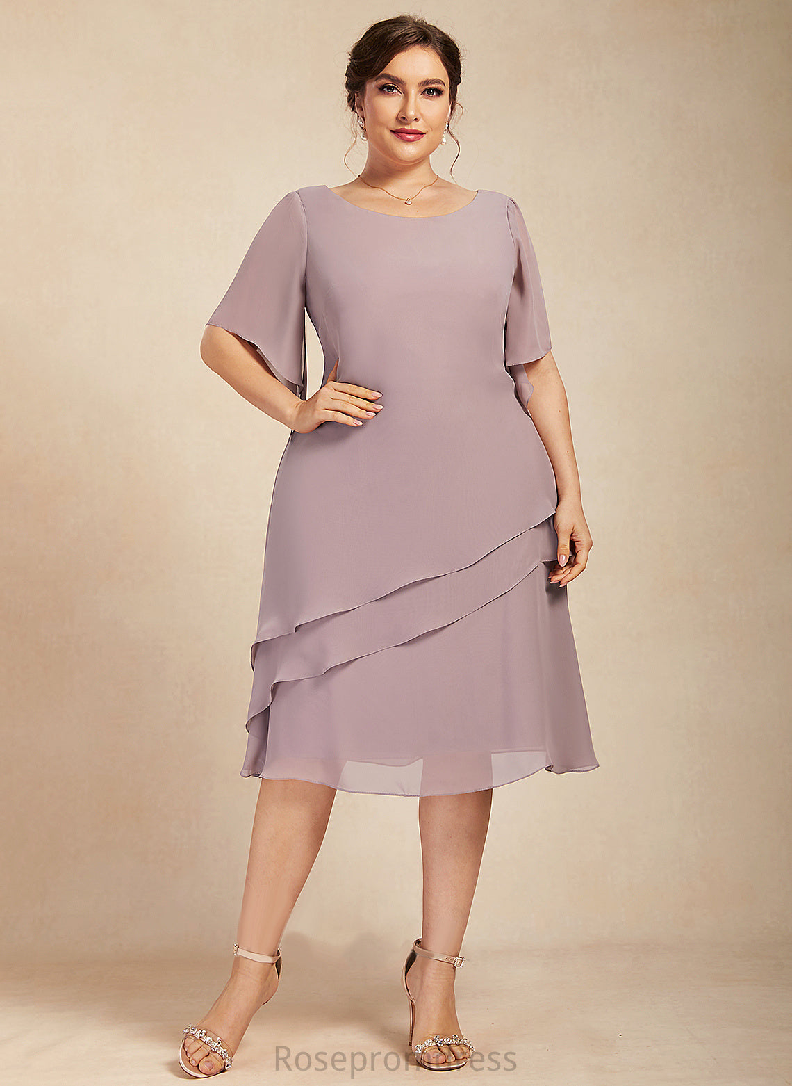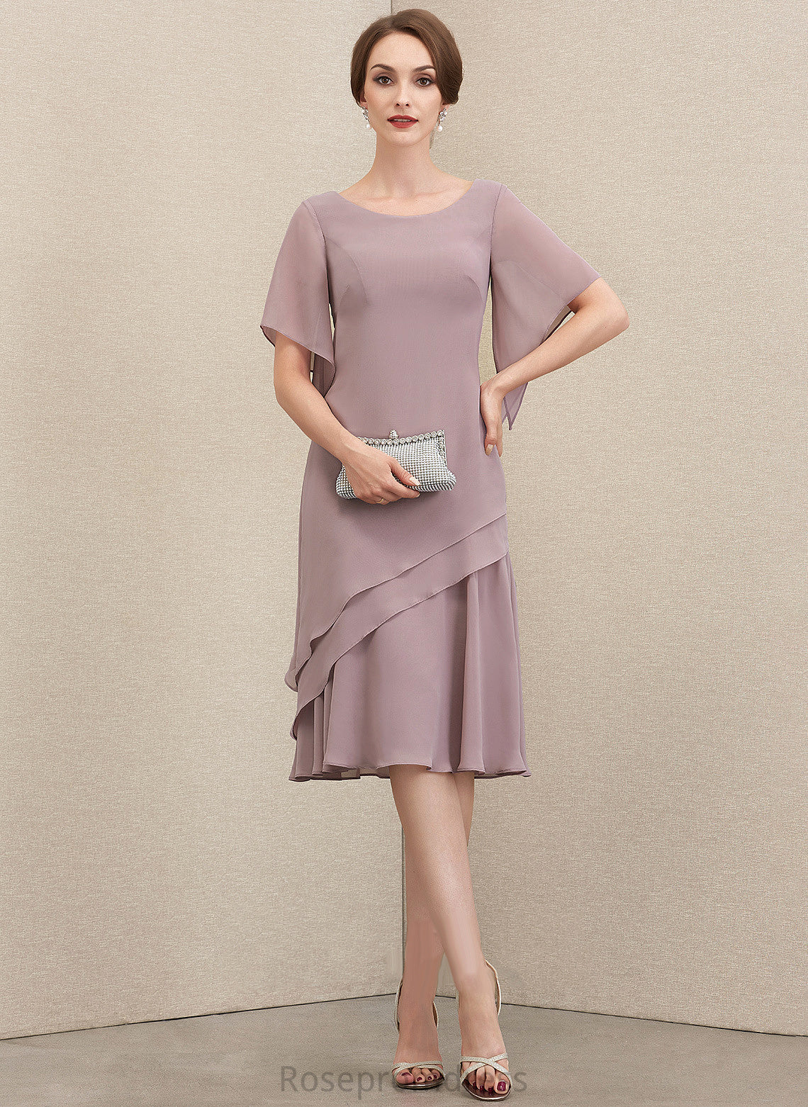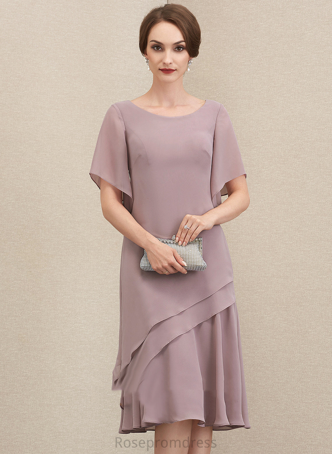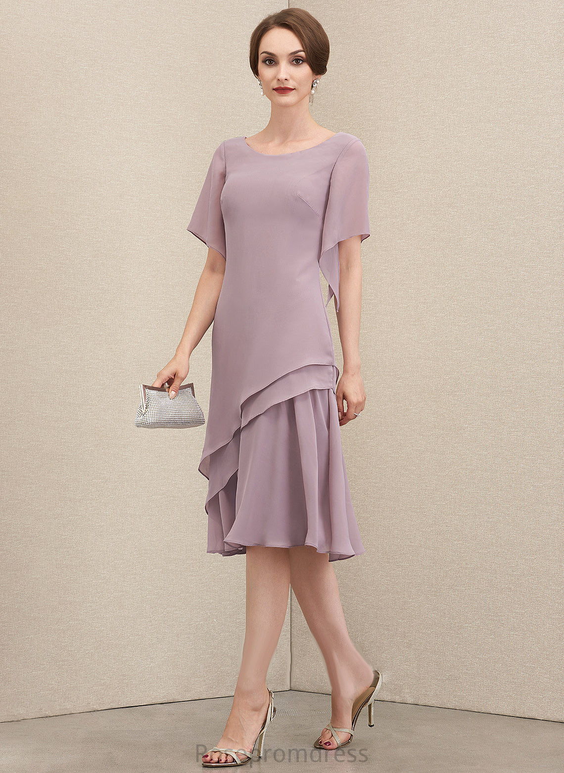 Neck Chiffon Knee-Length Cocktail Dresses Cocktail Cascading A-Line With Scoop Janiyah Dress Ruffles