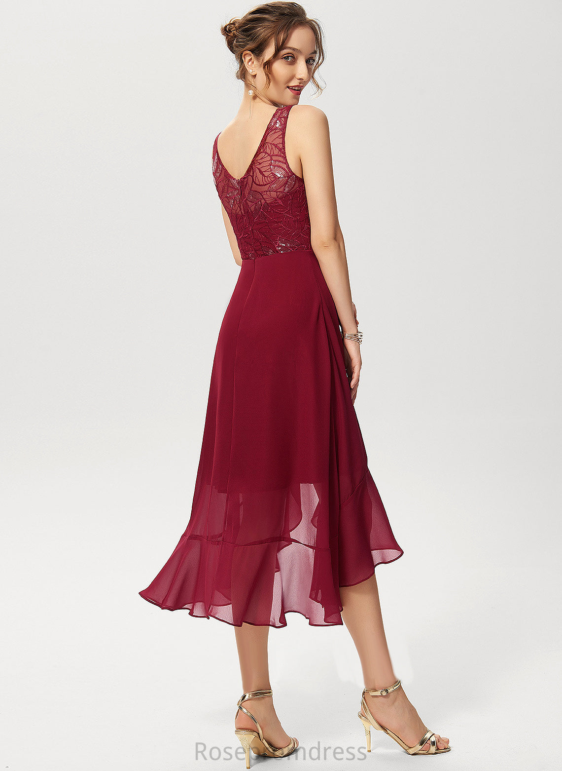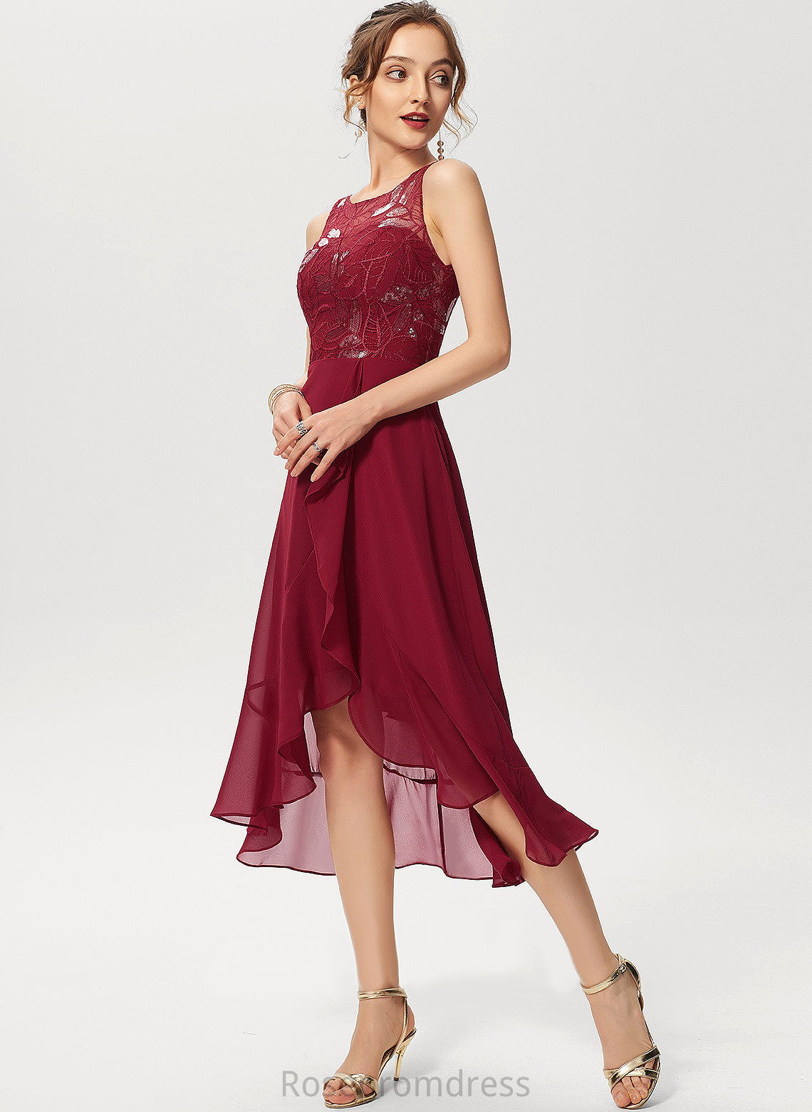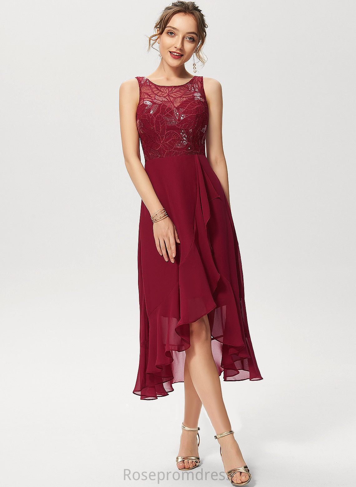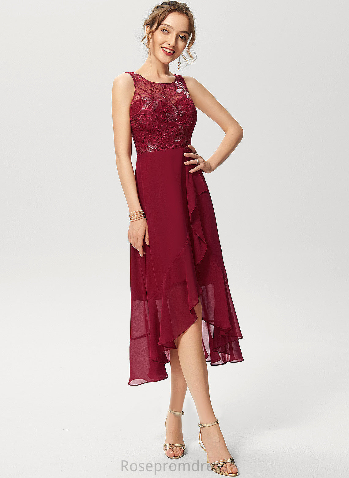 Neck Cocktail Lace Dress Ruffles Chiffon Meg Asymmetrical Scoop Cascading Cocktail Dresses A-Line With Sequins