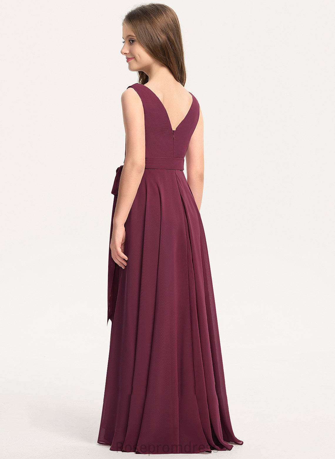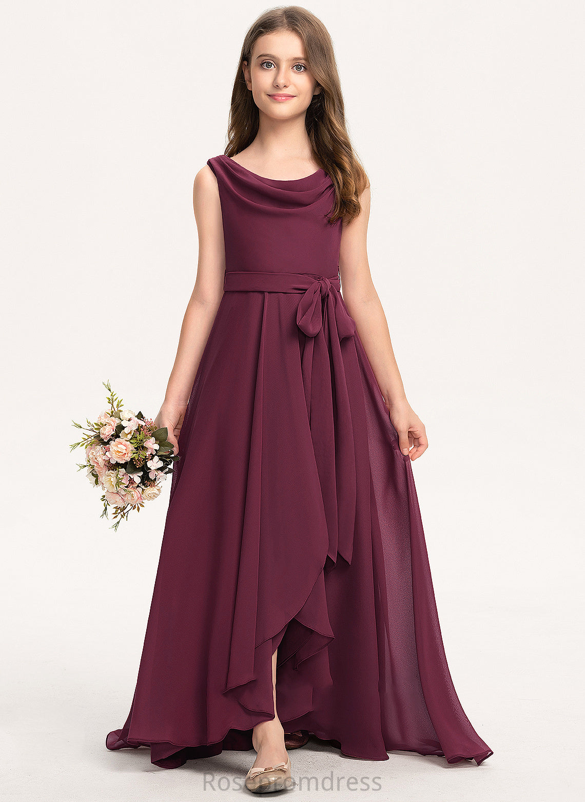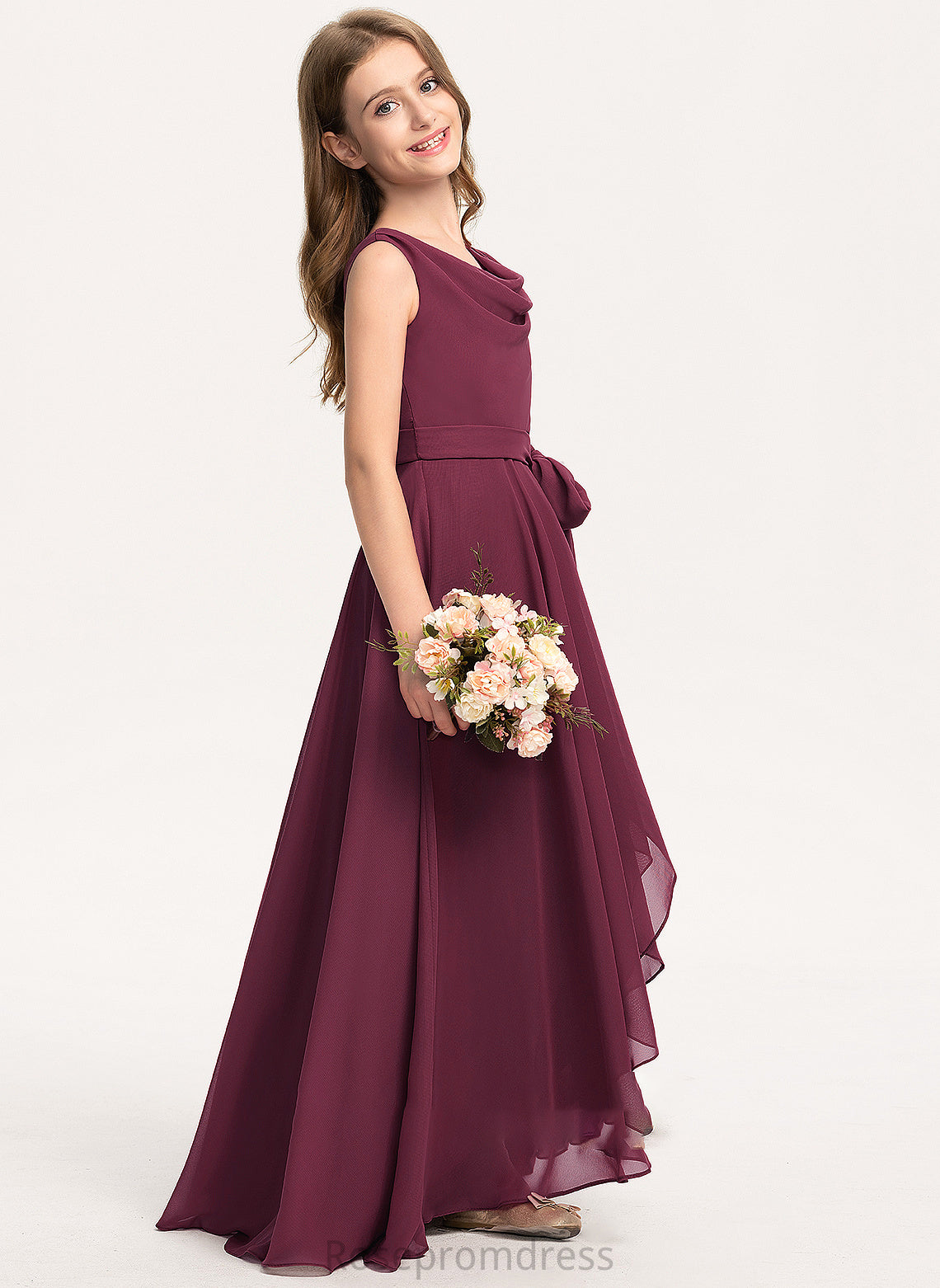 Neck Cowl Asymmetrical Chiffon Azaria Bow(s) A-Line With Junior Bridesmaid Dresses