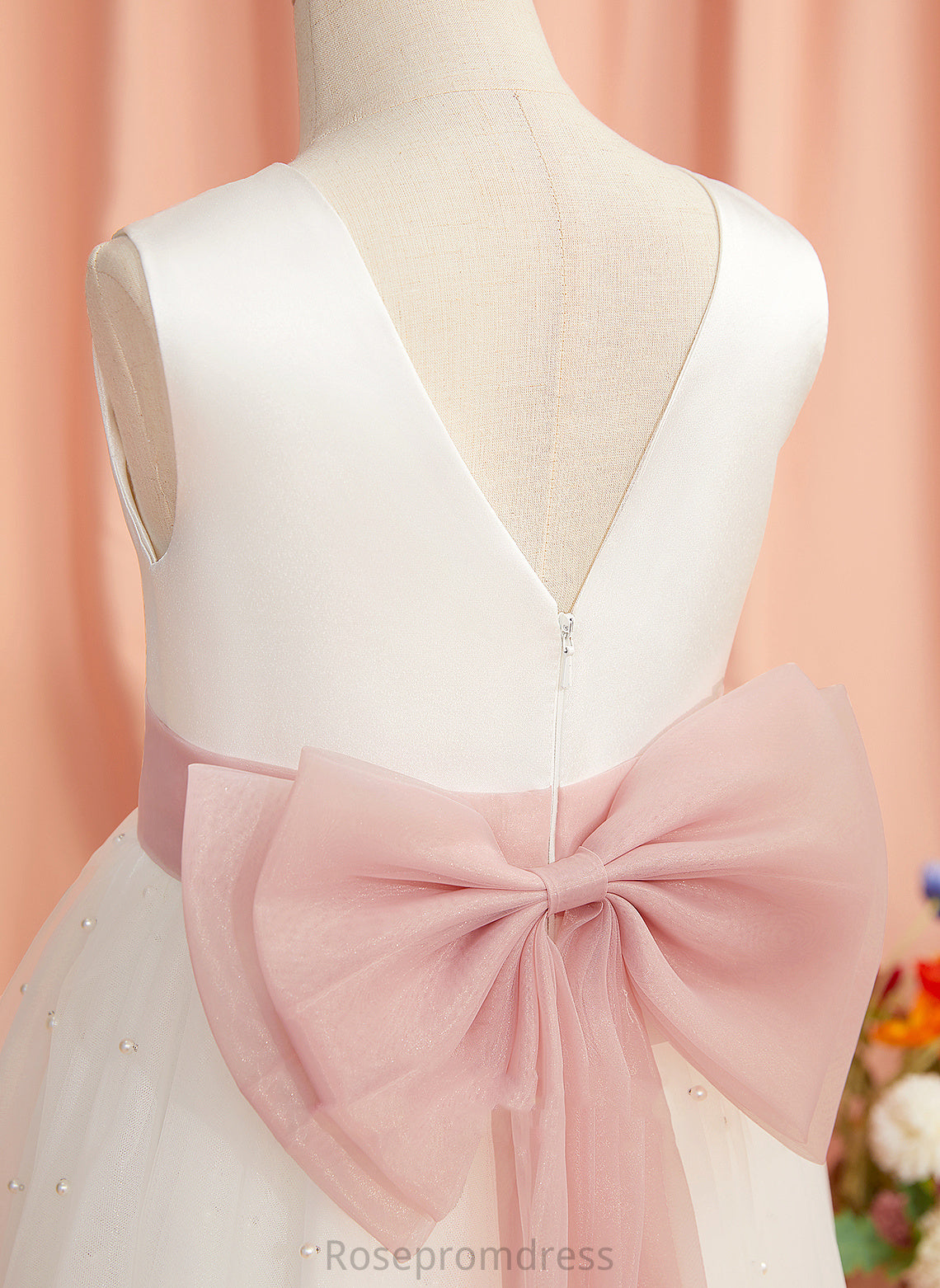 Neck Dress Tea-length With Back Scoop Girl A-Line Flower Sash/Bow(s)/V Flower Girl Dresses - Sleeveless Kaydence Satin/Tulle