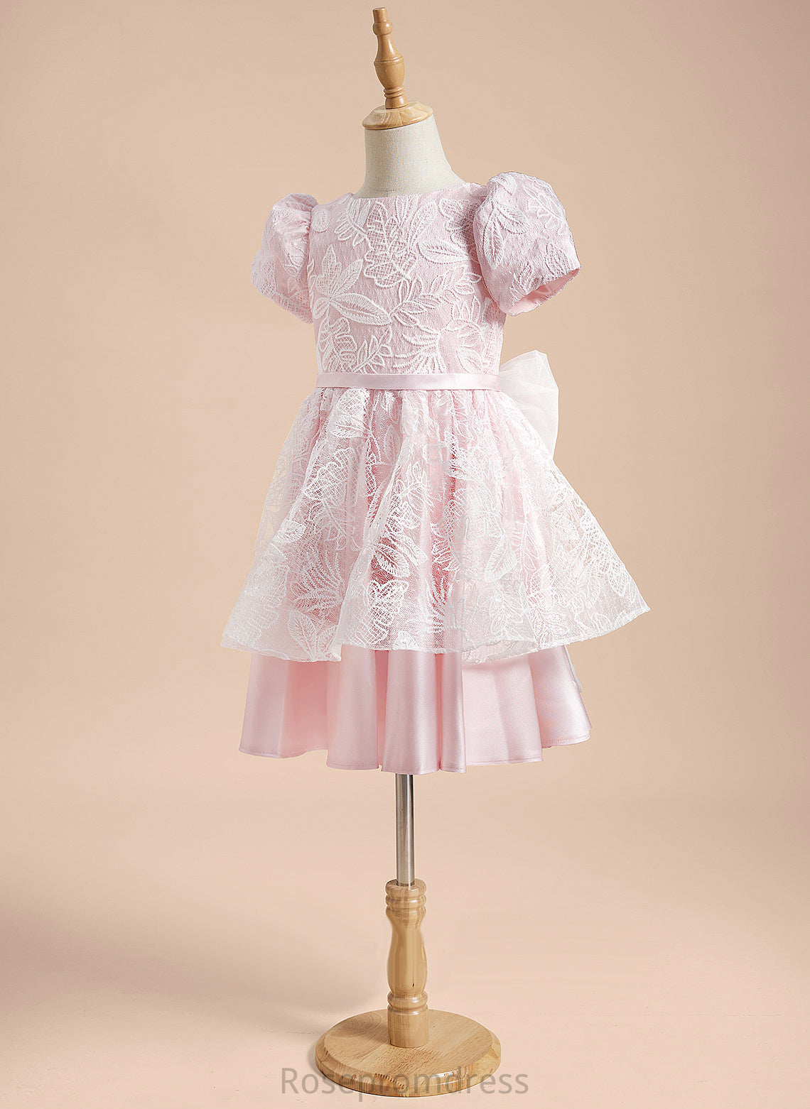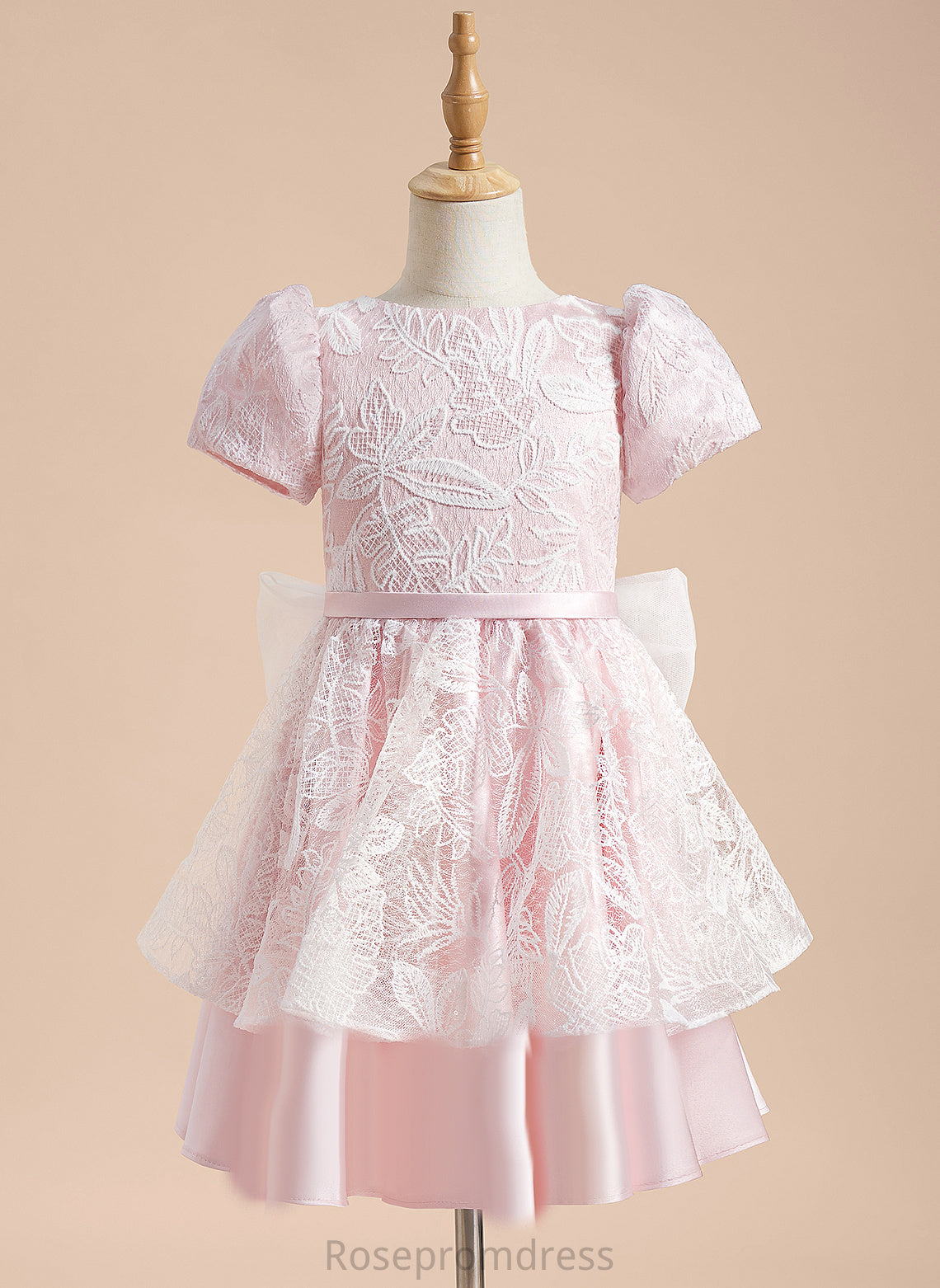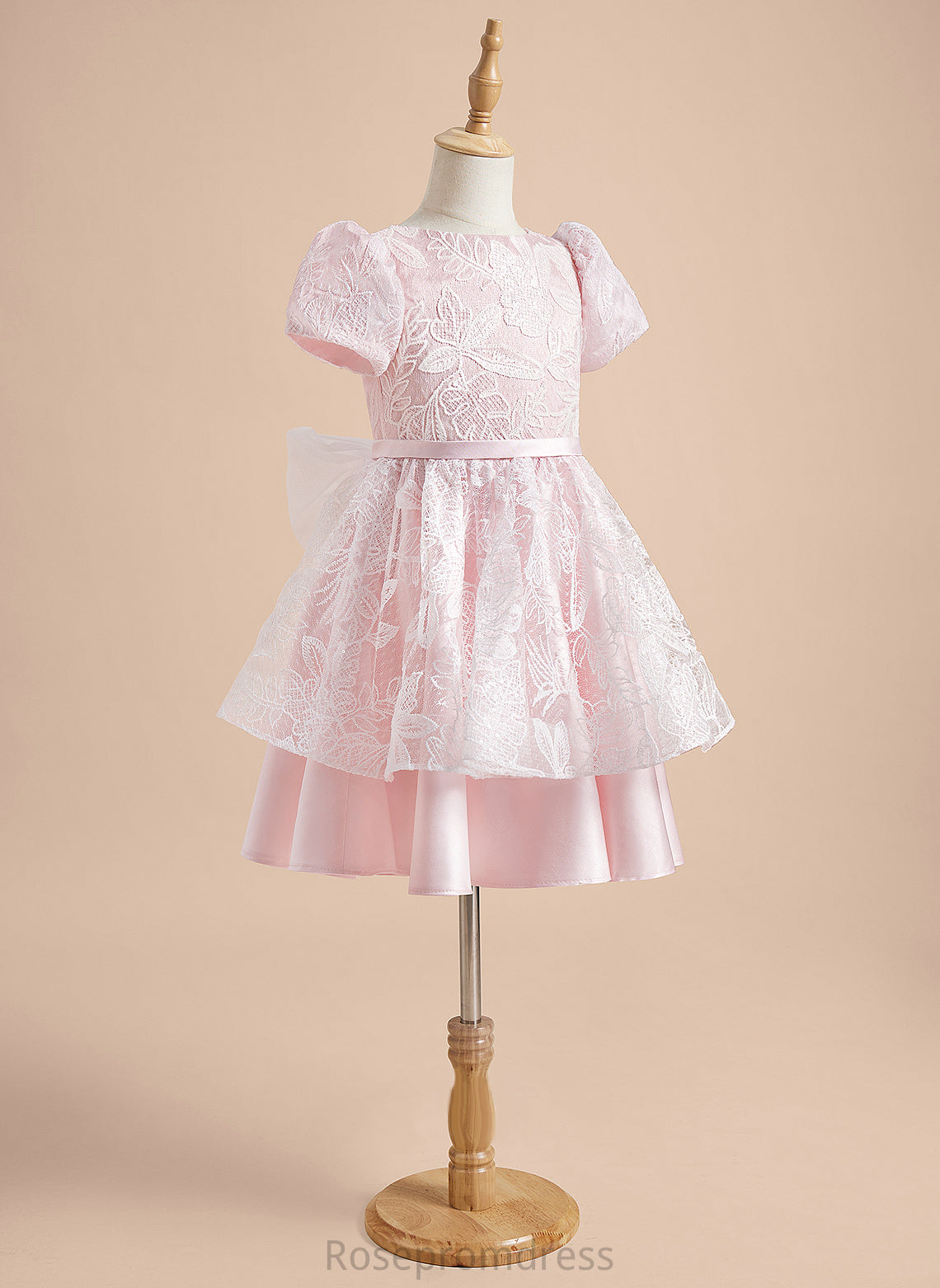 Neck Girl - Scoop Evie Satin/Tulle Dress A-Line Sleeves Knee-length Short Flower Lace/Sequins/Bow(s) With Flower Girl Dresses