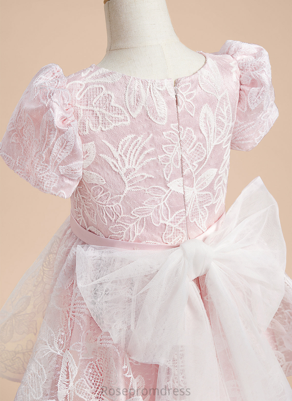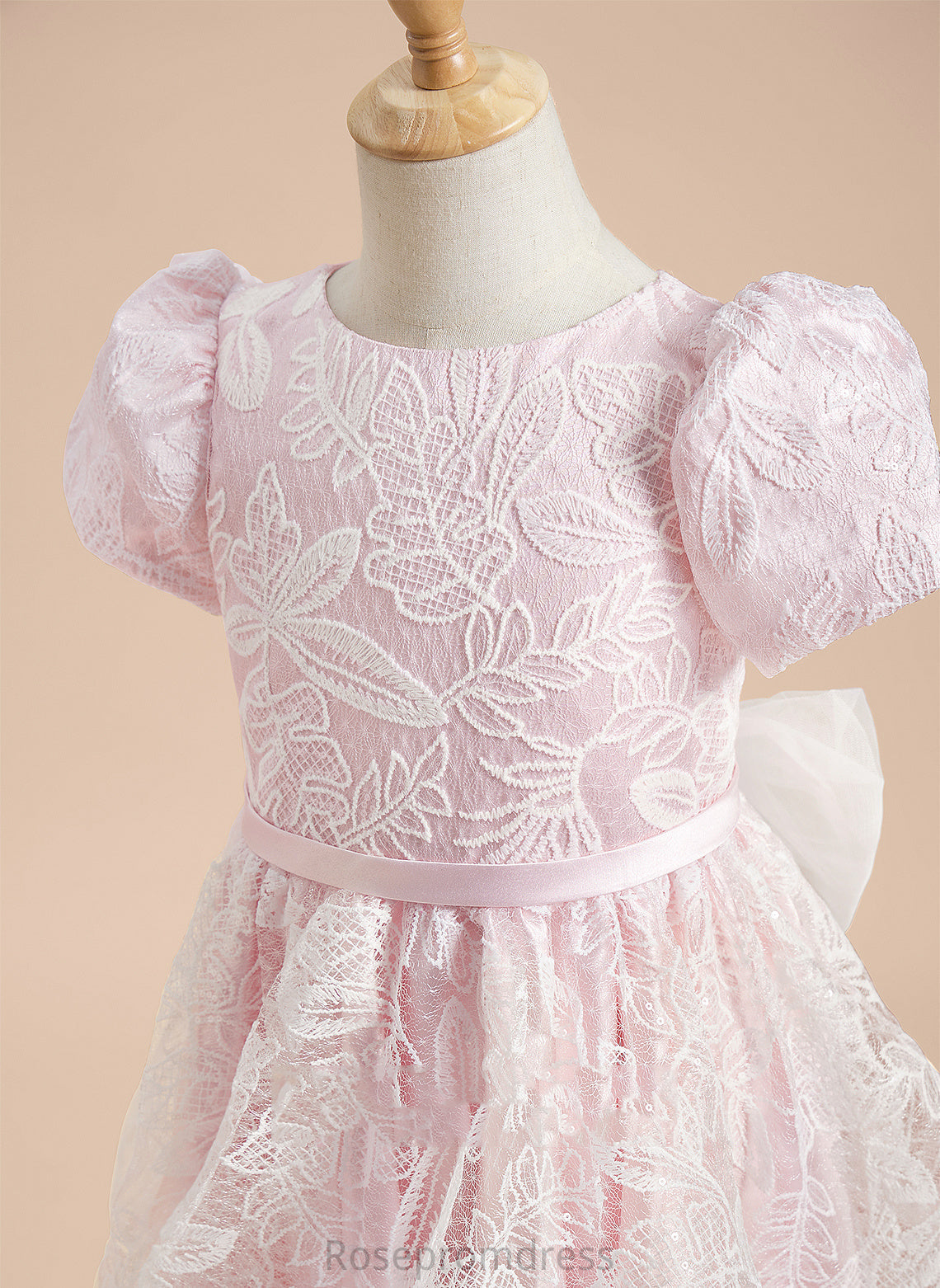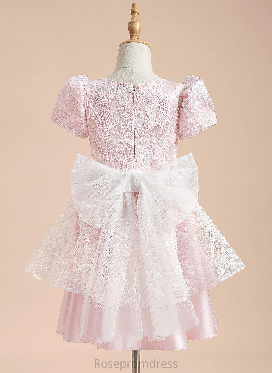 Neck Girl - Scoop Evie Satin/Tulle Dress A-Line Sleeves Knee-length Short Flower Lace/Sequins/Bow(s) With Flower Girl Dresses