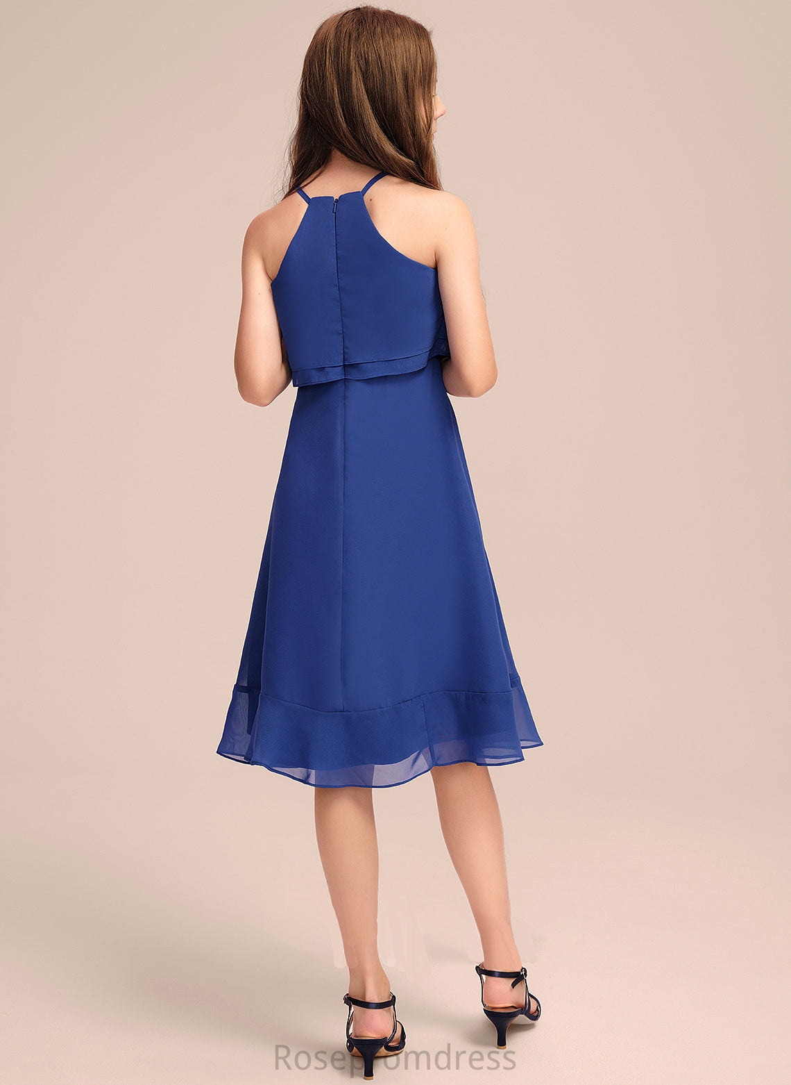 Neck Junior Bridesmaid Dresses Ruffles Chiffon With Nia Scoop Knee-Length Cascading A-Line