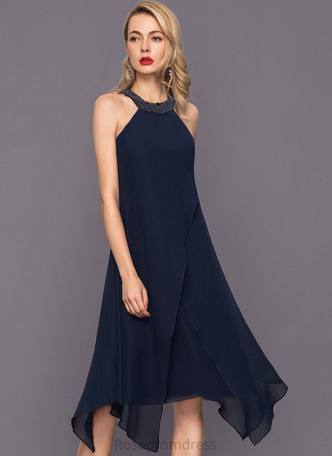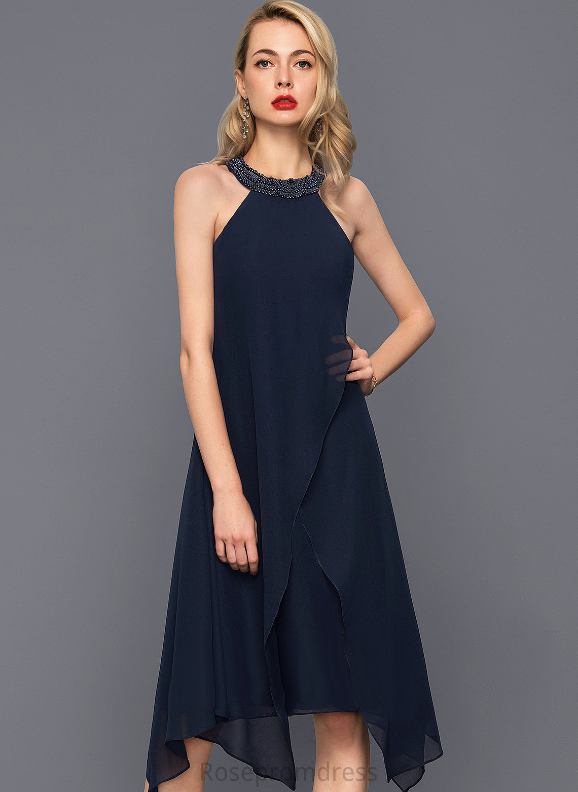 Neck Kiley Cocktail Dress Cocktail Dresses Chiffon Asymmetrical Beading A-Line With Scoop
