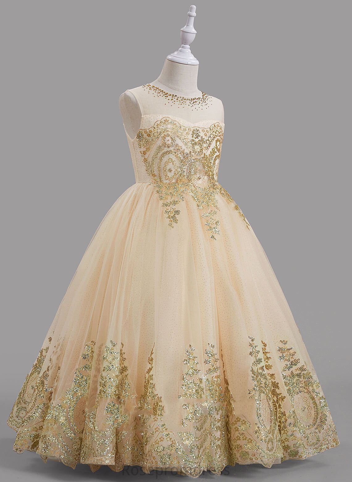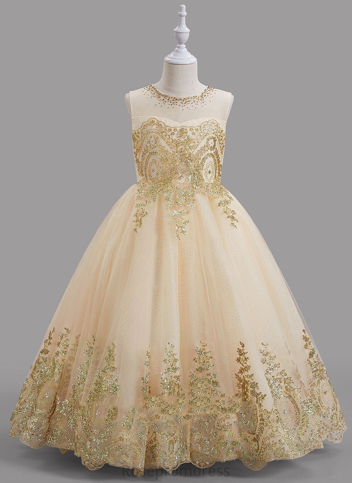 Neck Scoop Beading Flower Girl Dresses - Flower Tulle Floor-length Lesley Sleeveless Dress With Girl Ball-Gown/Princess