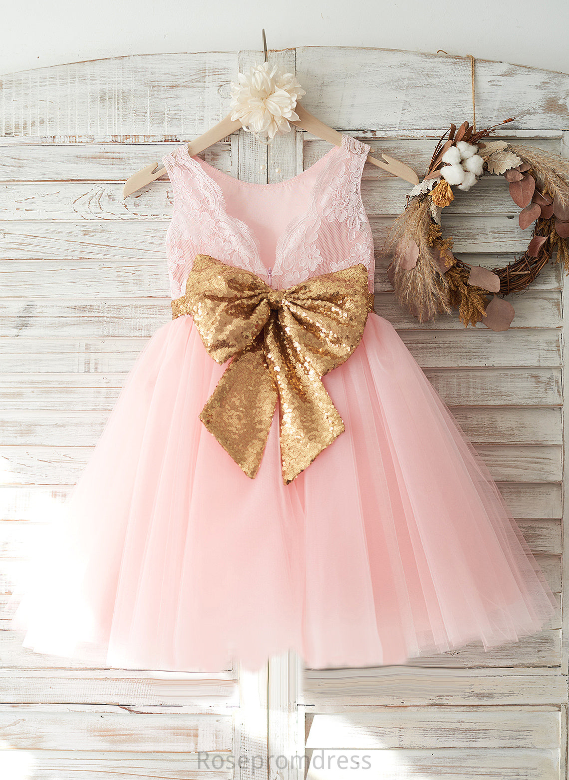 Neck - Tulle/Lace/Sequined Sleeveless Knee-length Girl A-Line Flower Girl Dresses Flower Scoop Dress Frederica With Bow(s)/V Back
