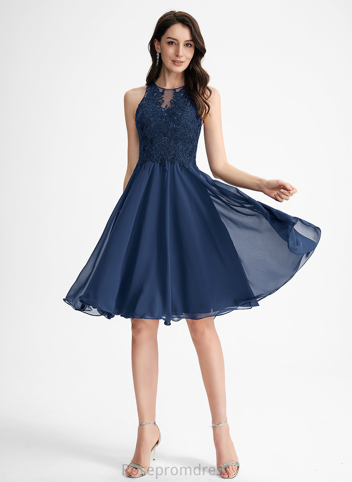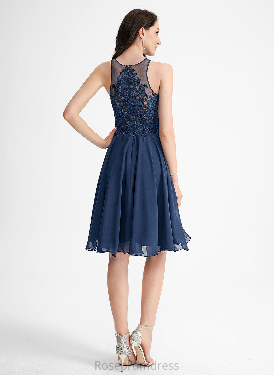 Neck With Chiffon Knee-Length Homecoming Dresses Beading Homecoming Yesenia Scoop Lace Dress A-Line