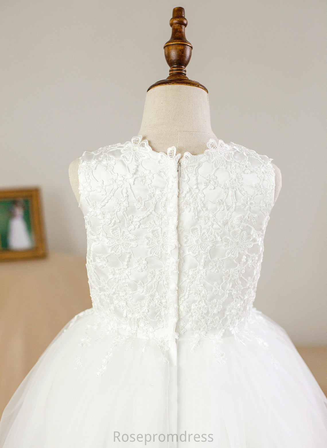 Neck With Girl Ankle-length Flower - Scoop Lara Ball Satin/Tulle Dress Gown Flower Girl Dresses Appliques Sleeveless