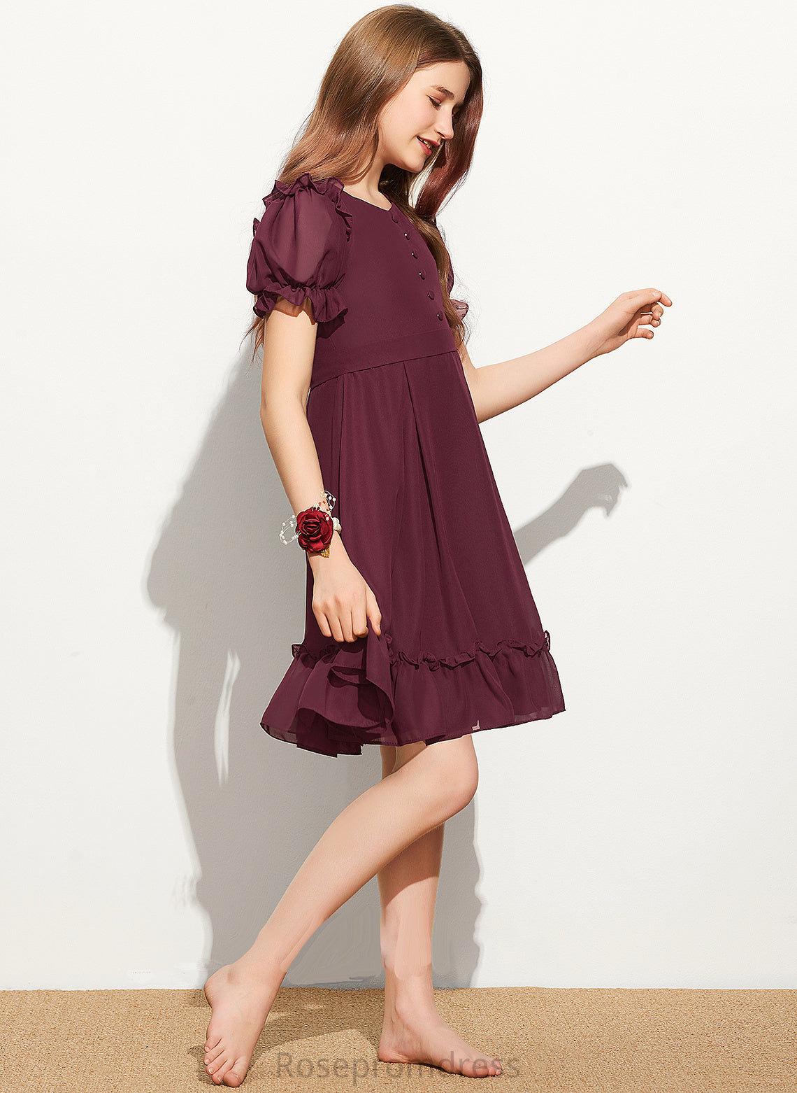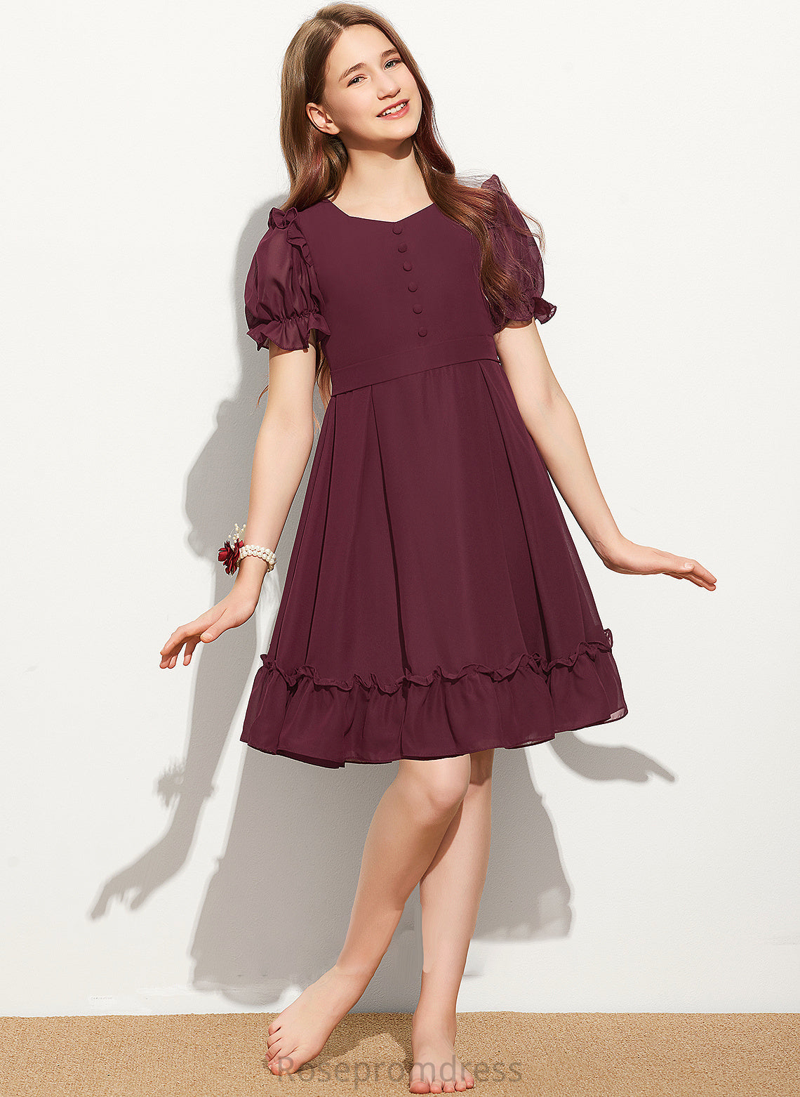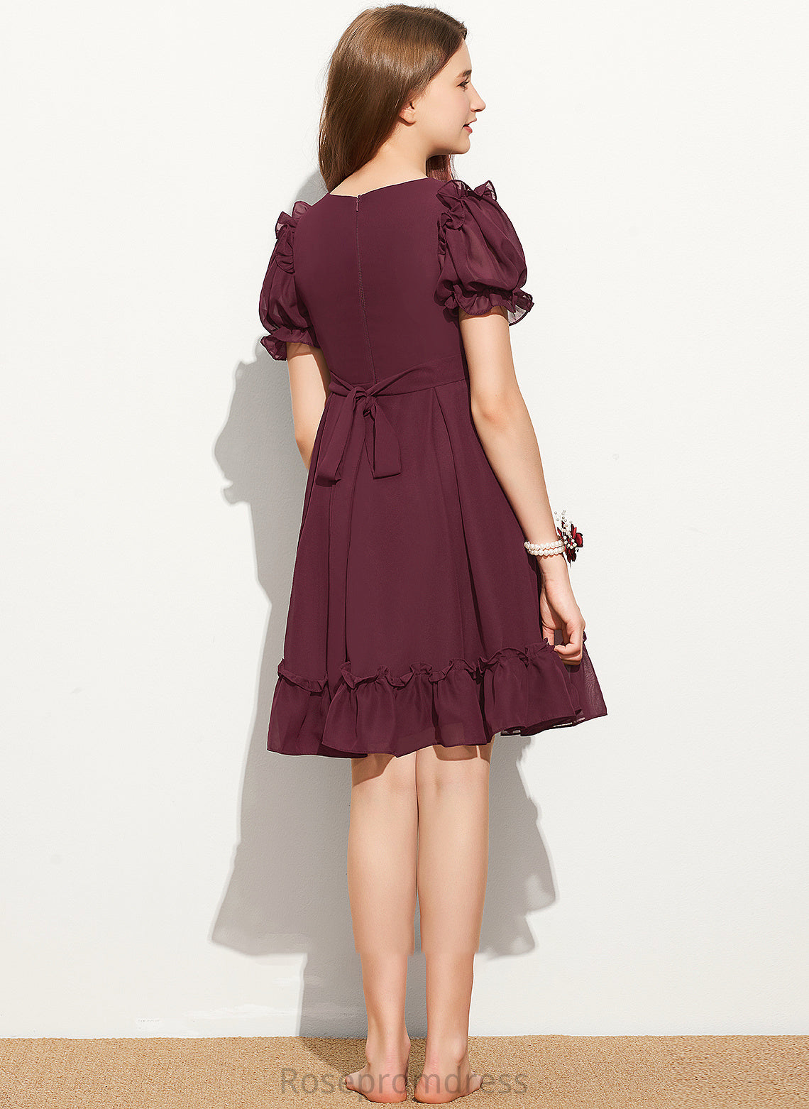 Neck With Scoop Bow(s) Cascading Ruffles Ava Knee-Length A-Line Junior Bridesmaid Dresses Chiffon