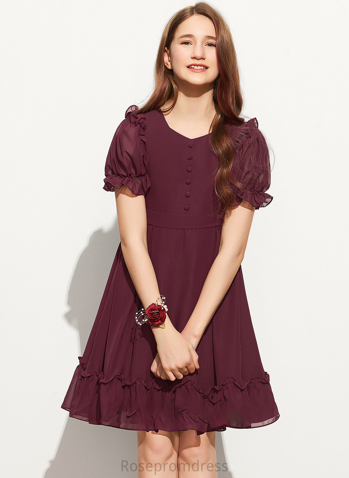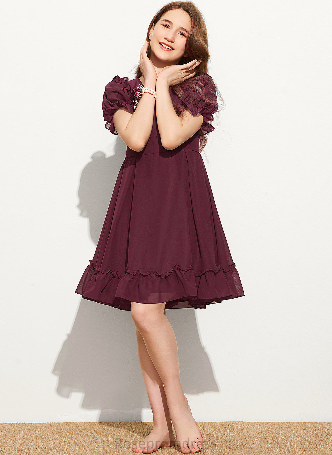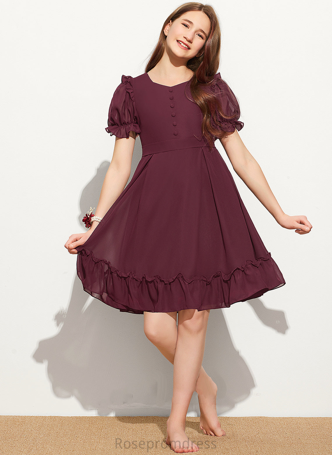 Neck With Scoop Bow(s) Cascading Ruffles Ava Knee-Length A-Line Junior Bridesmaid Dresses Chiffon