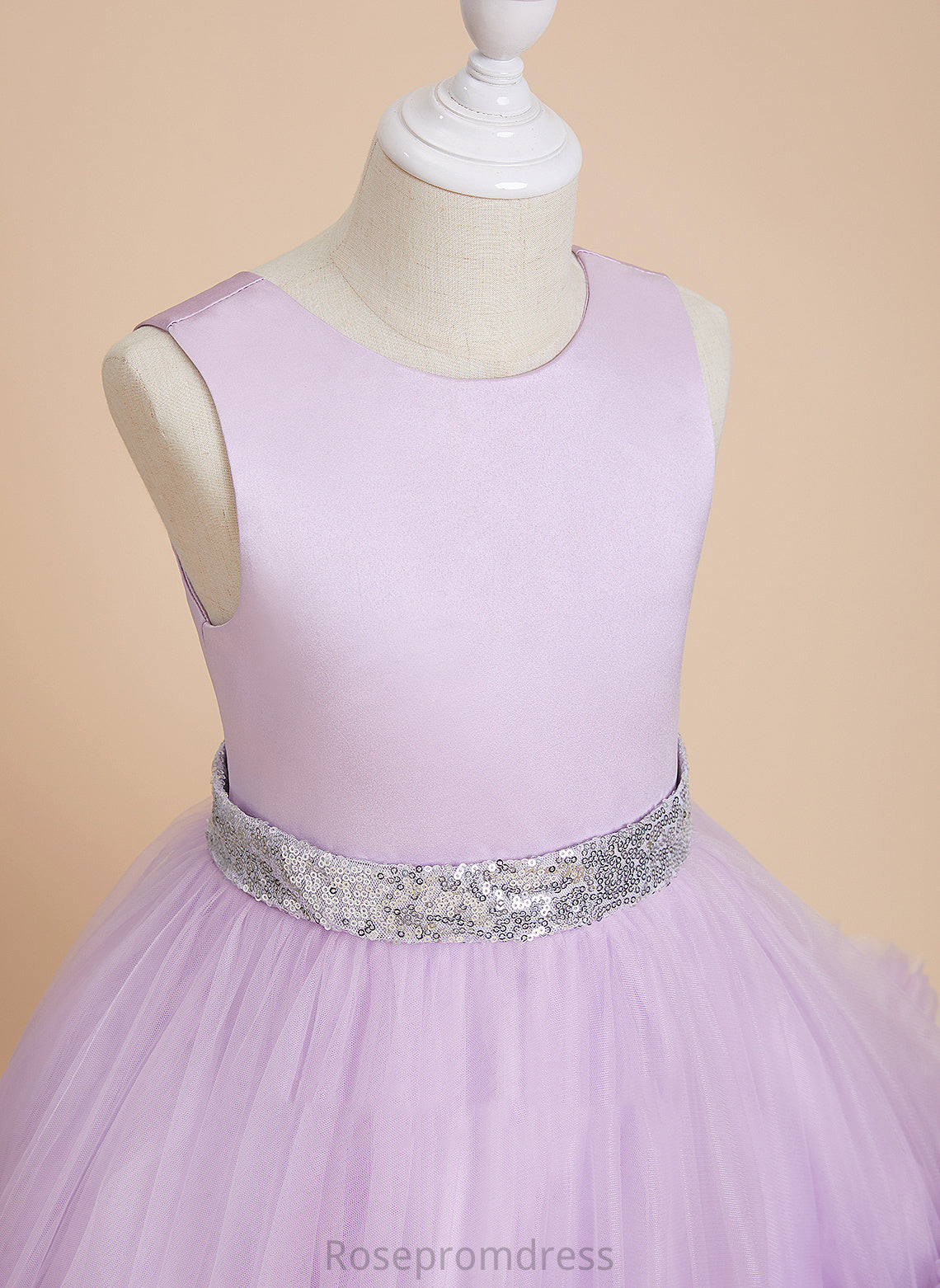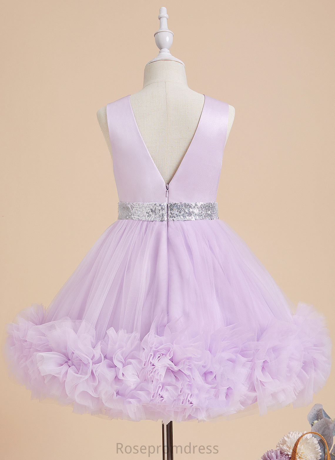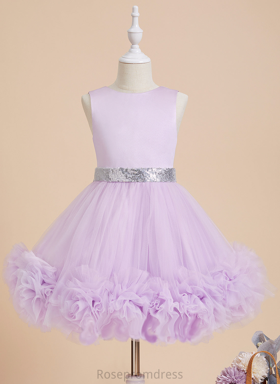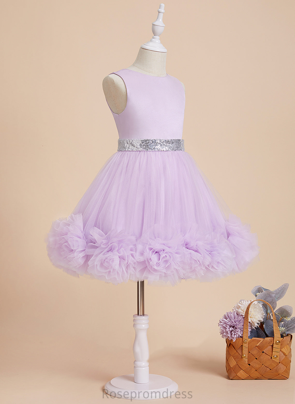 Neck With - Scoop Jaelyn Knee-length Flower Girl Dresses Sleeveless Ball-Gown/Princess Girl Flower Dress Satin/Tulle Flower(s)/Sequins