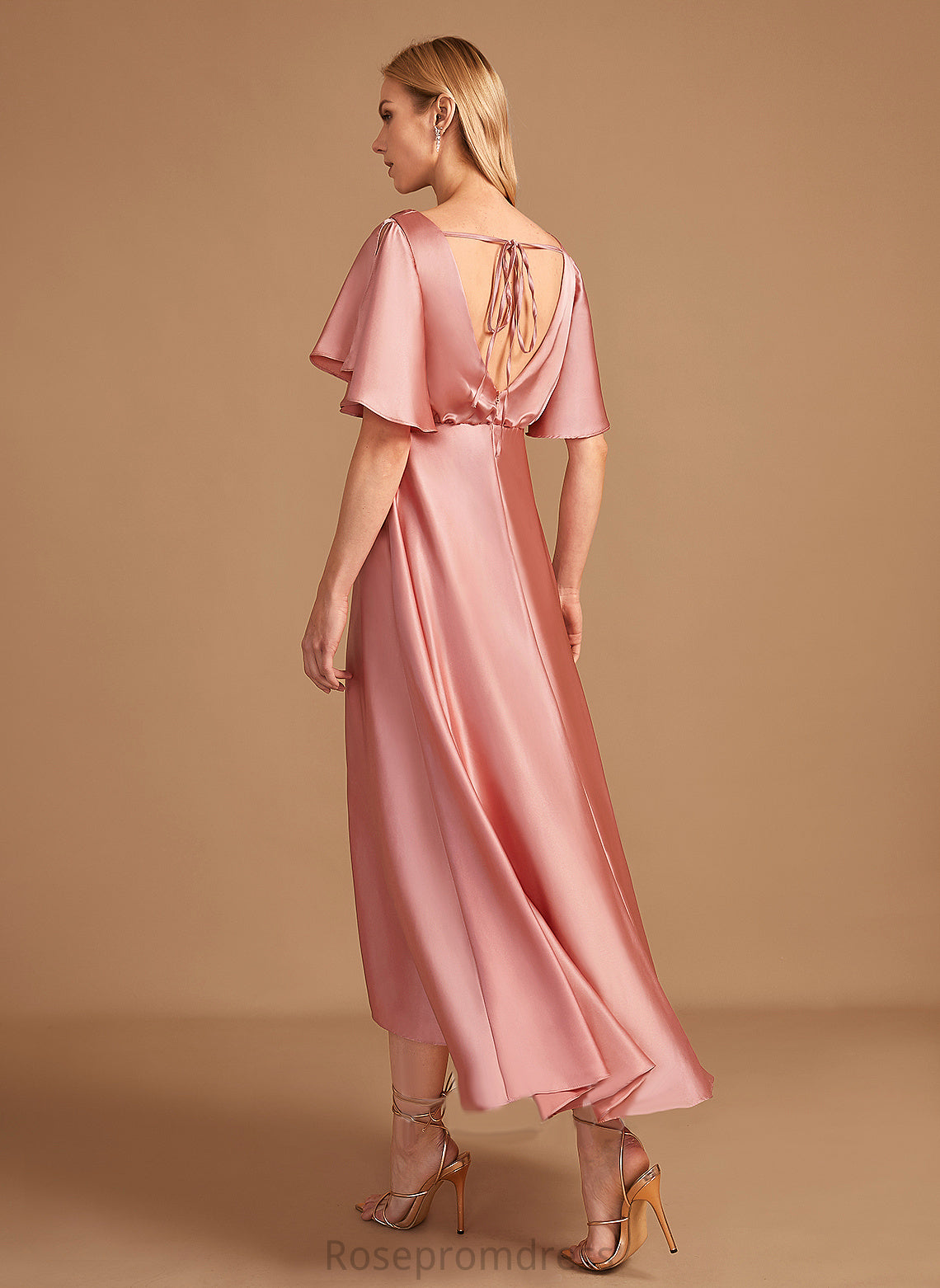 Neckline A-Line HighNeck Silhouette Asymmetrical Fabric Straps Satin Length Giuliana Bridesmaid Dresses