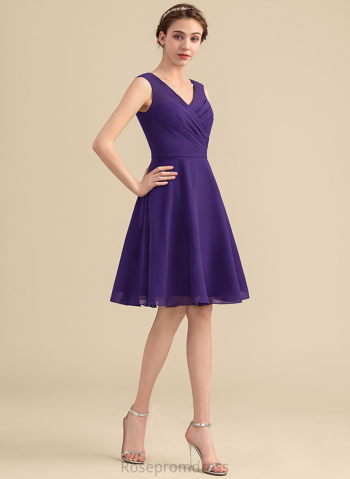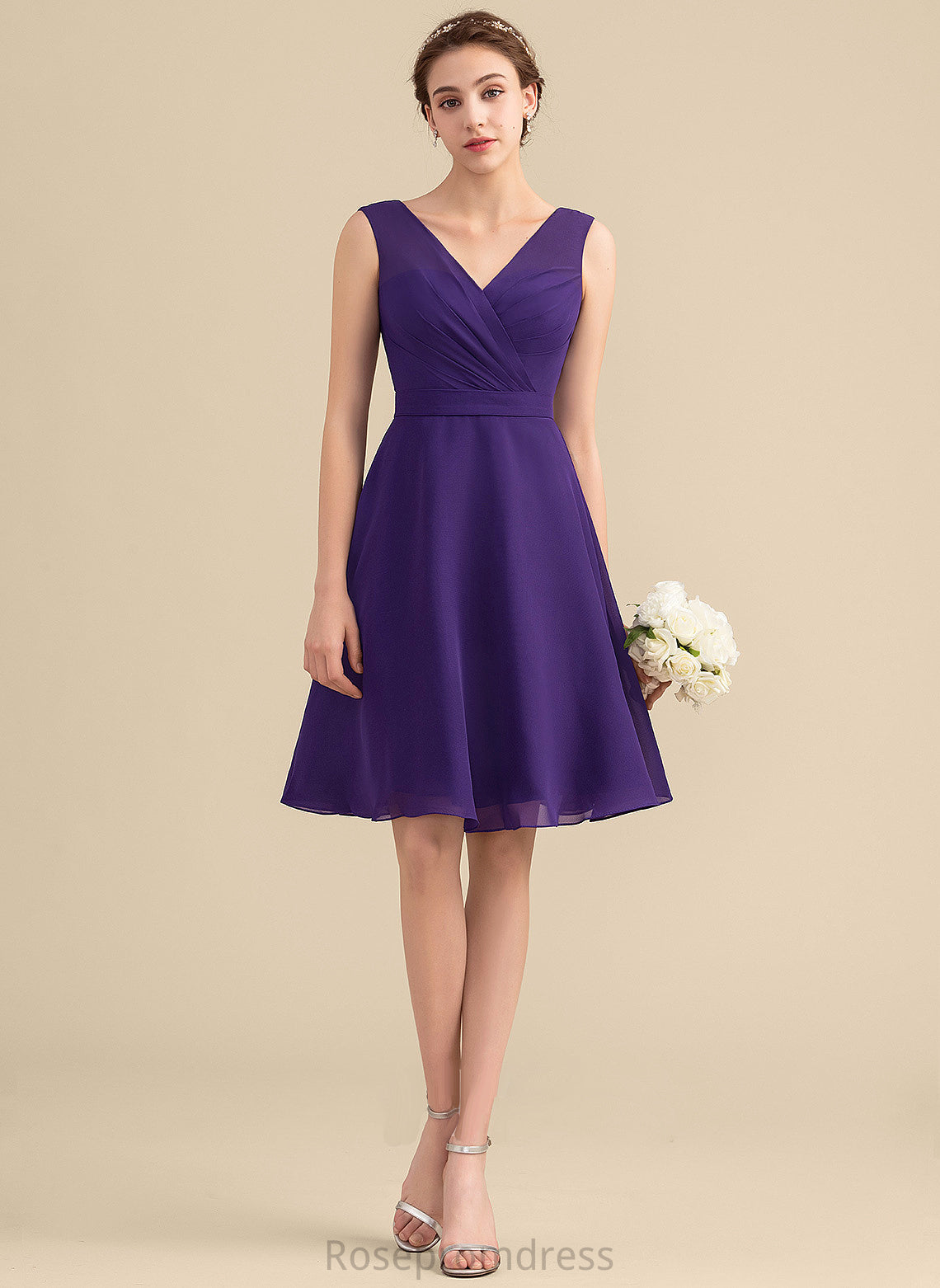 Neckline A-Line Silhouette Knee-Length Embellishment V-neck Fabric Length Ruffle Parker Bridesmaid Dresses