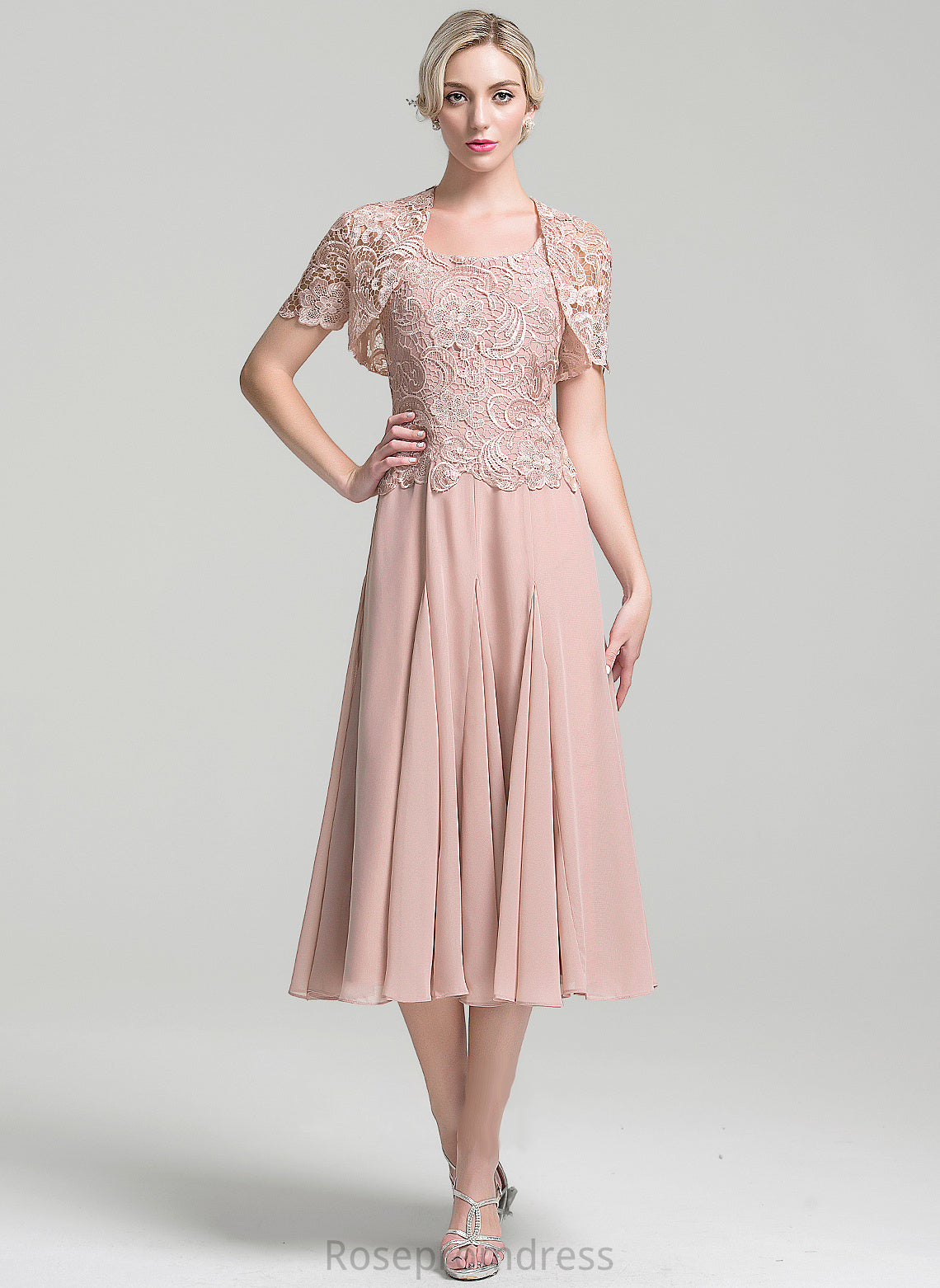 Neckline Dress Mother of the Bride Dresses Tea-Length the Mother Laila Chiffon Bride Square A-Line of