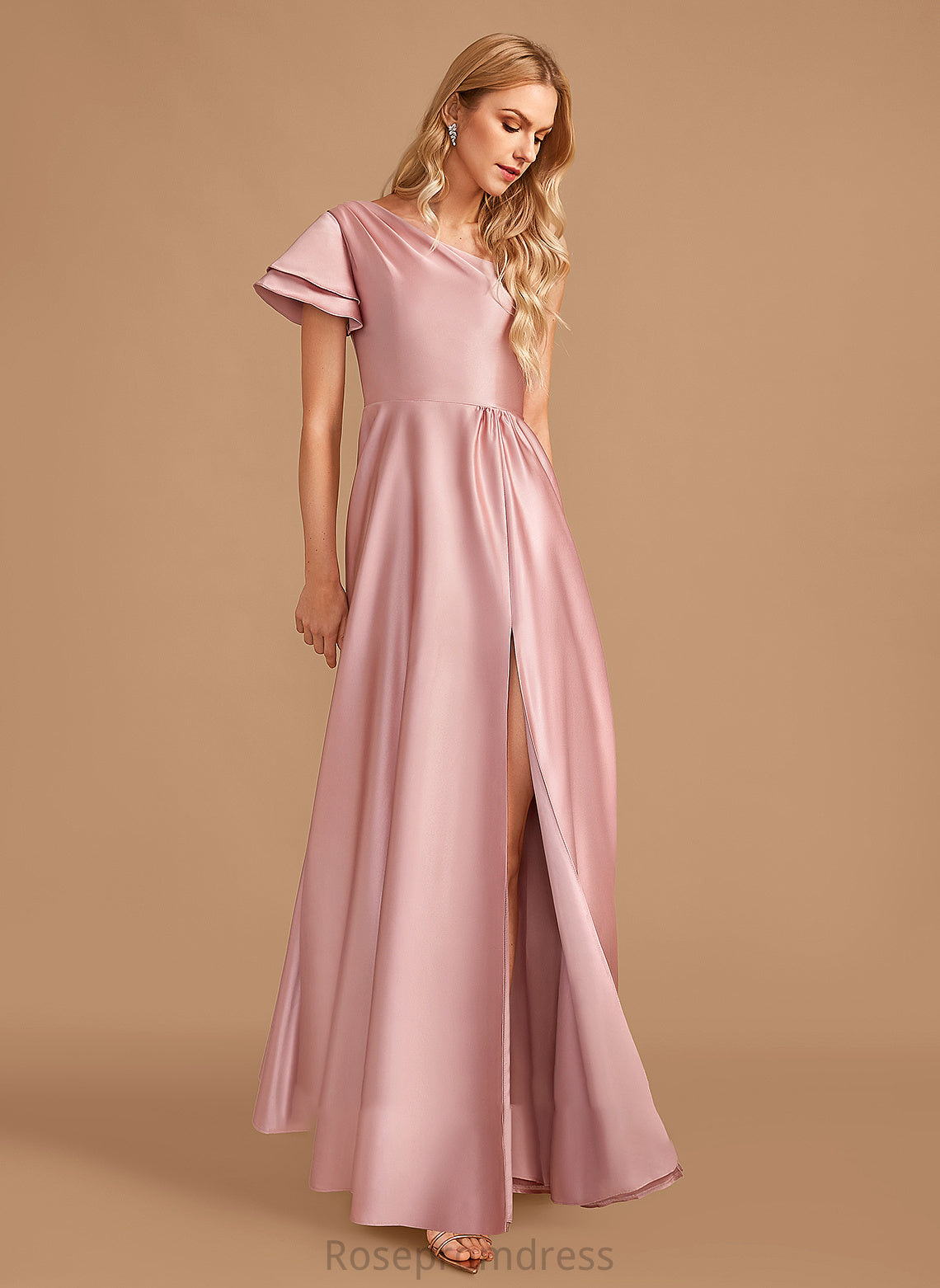 Neckline Embellishment SplitFront Length Fabric Silhouette Floor-Length A-Line One-Shoulder Kara Natural Waist Floor Length Bridesmaid Dresses