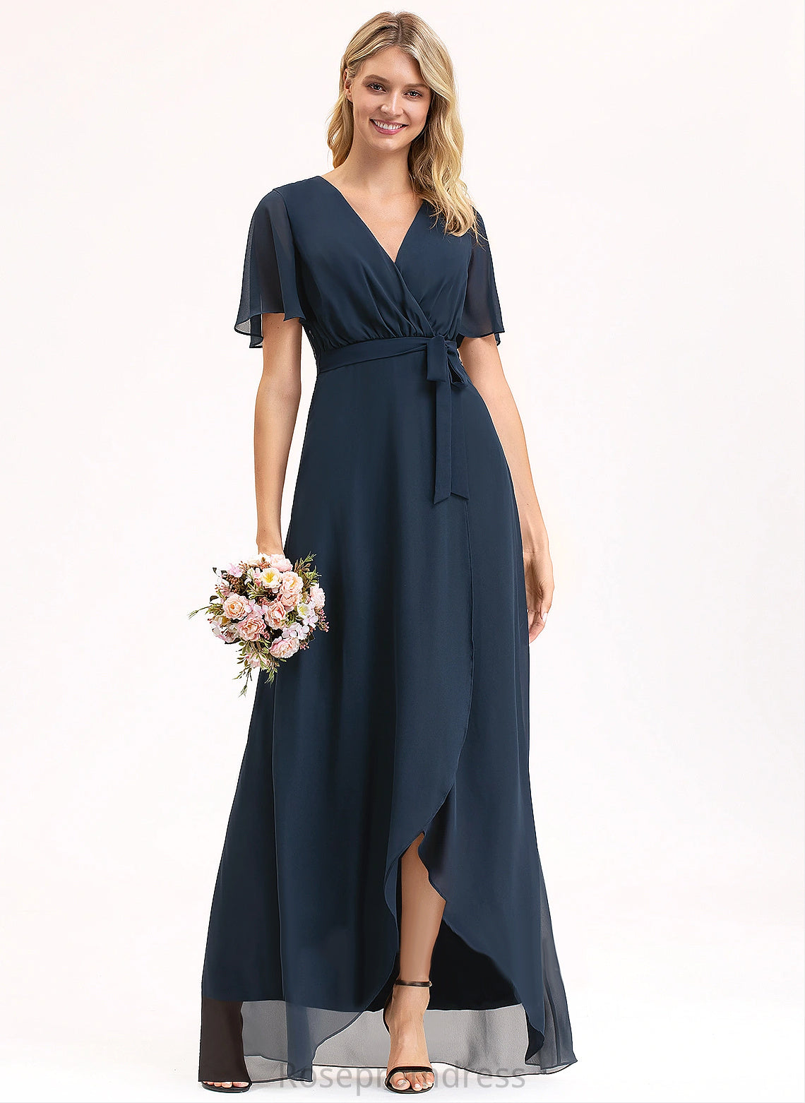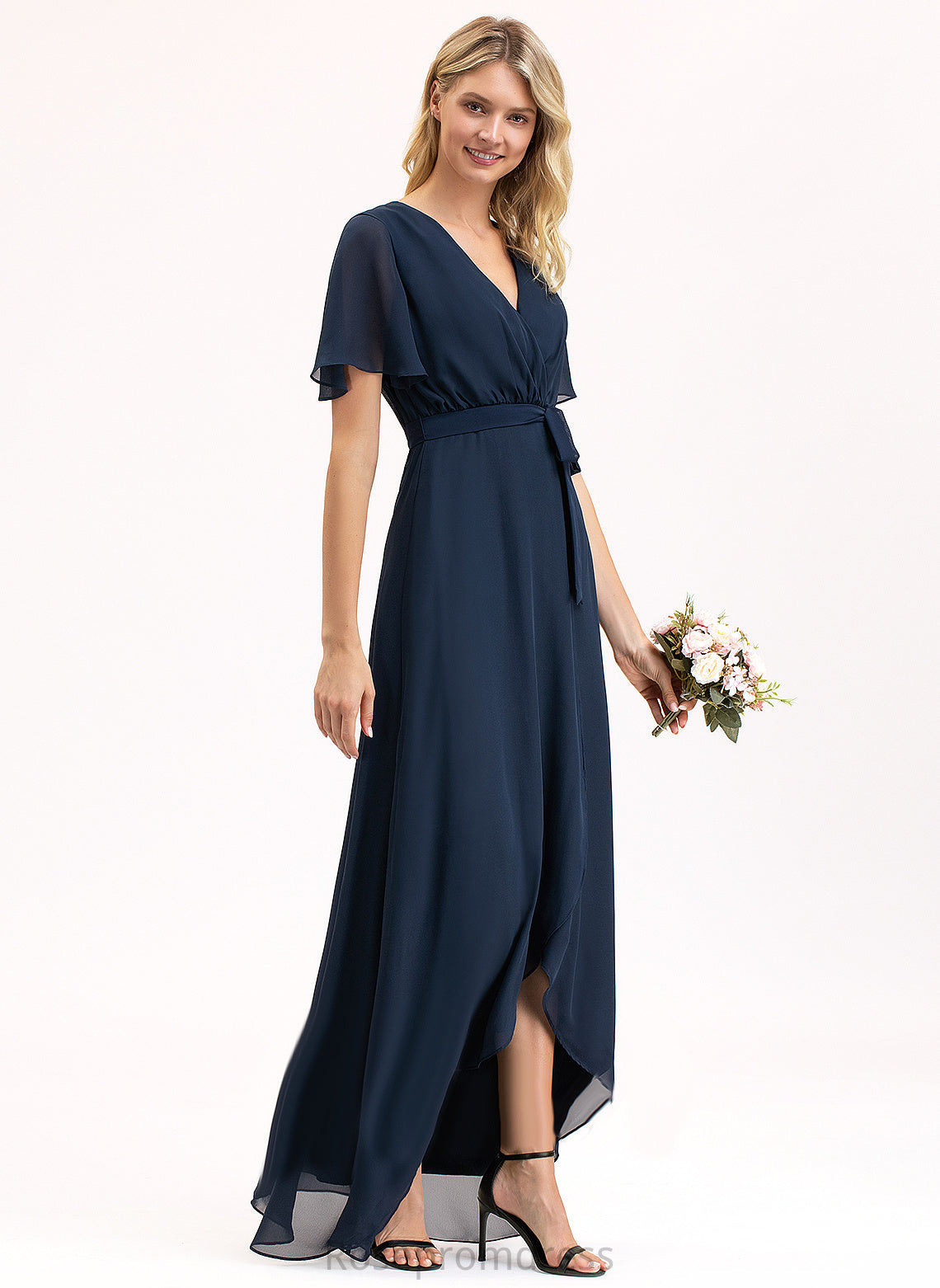 Neckline Fabric Length A-line V-Neck Asymmetrical Embellishment Silhouette Helena A-Line/Princess Spaghetti Staps Natural Waist Bridesmaid Dresses