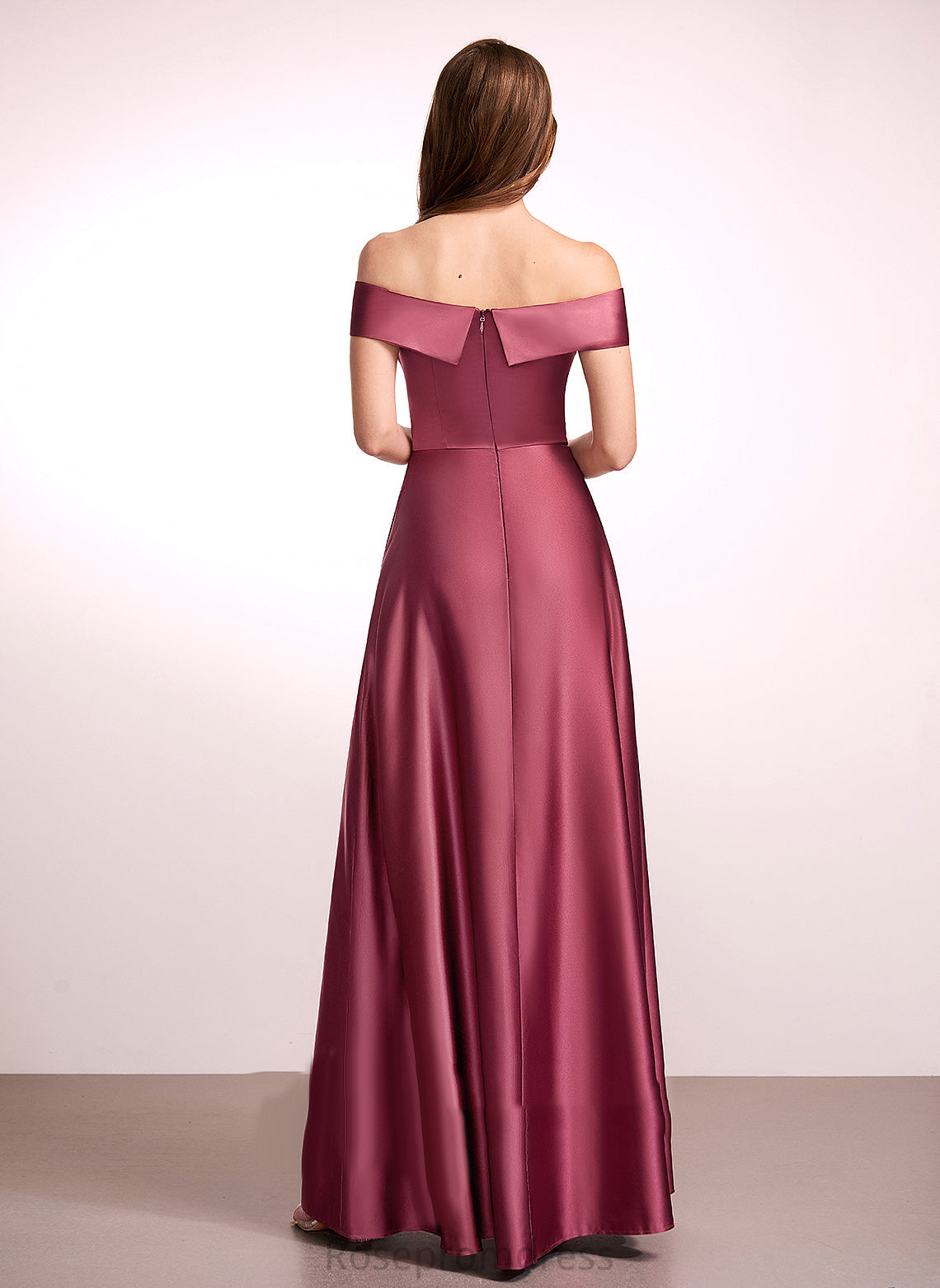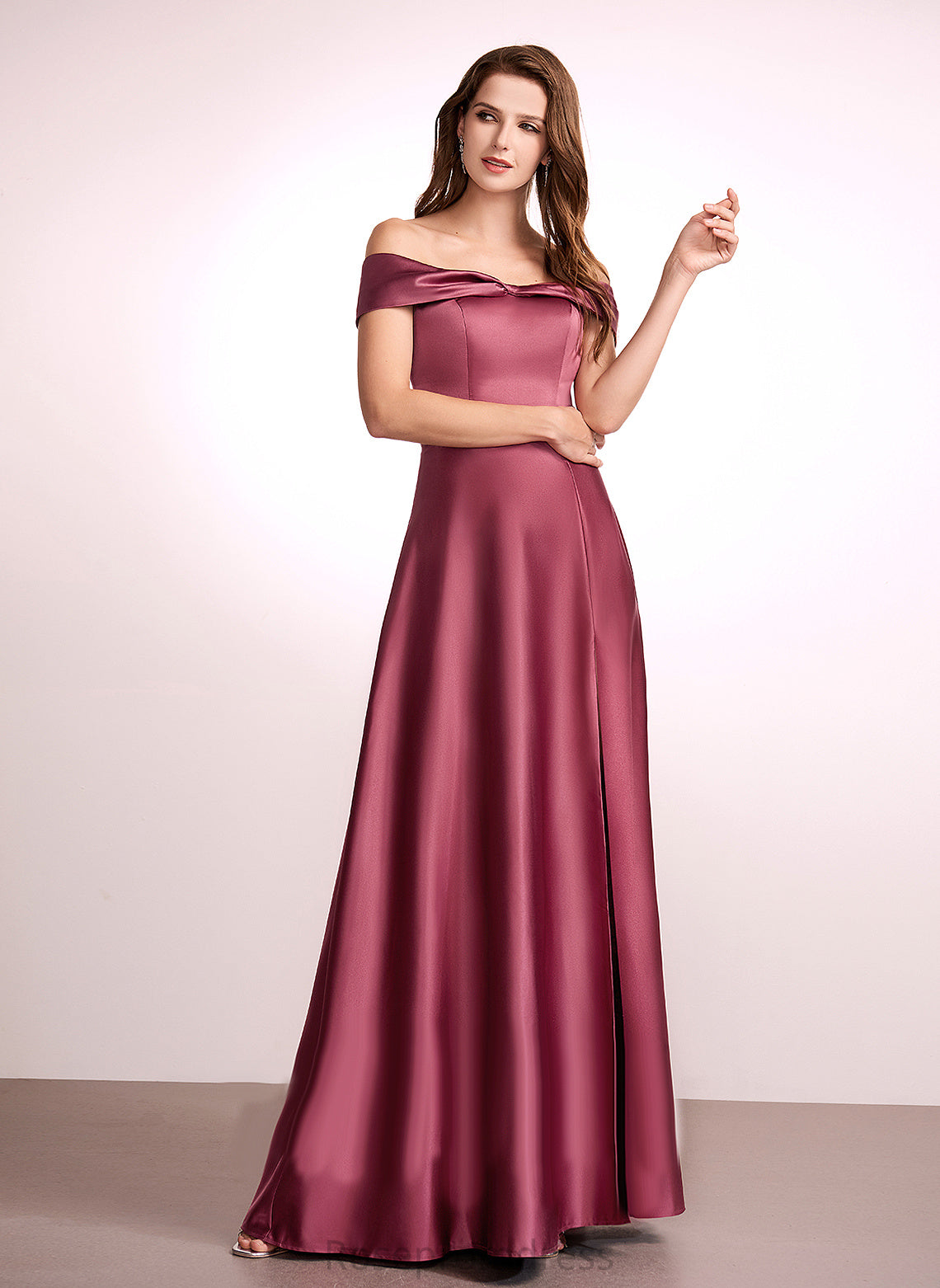 Neckline Fabric Length Floor-Length Embellishment Silhouette SplitFront Off-the-Shoulder A-Line Melinda Floor Length Sheath/Column Bridesmaid Dresses