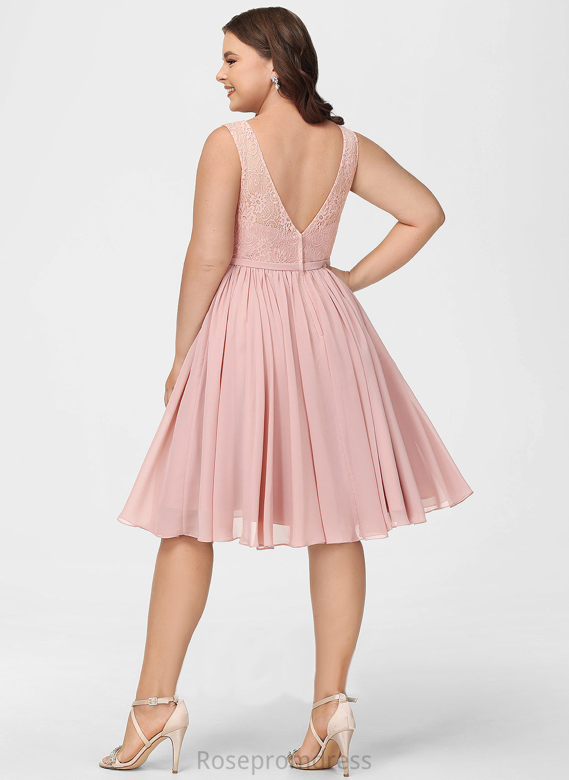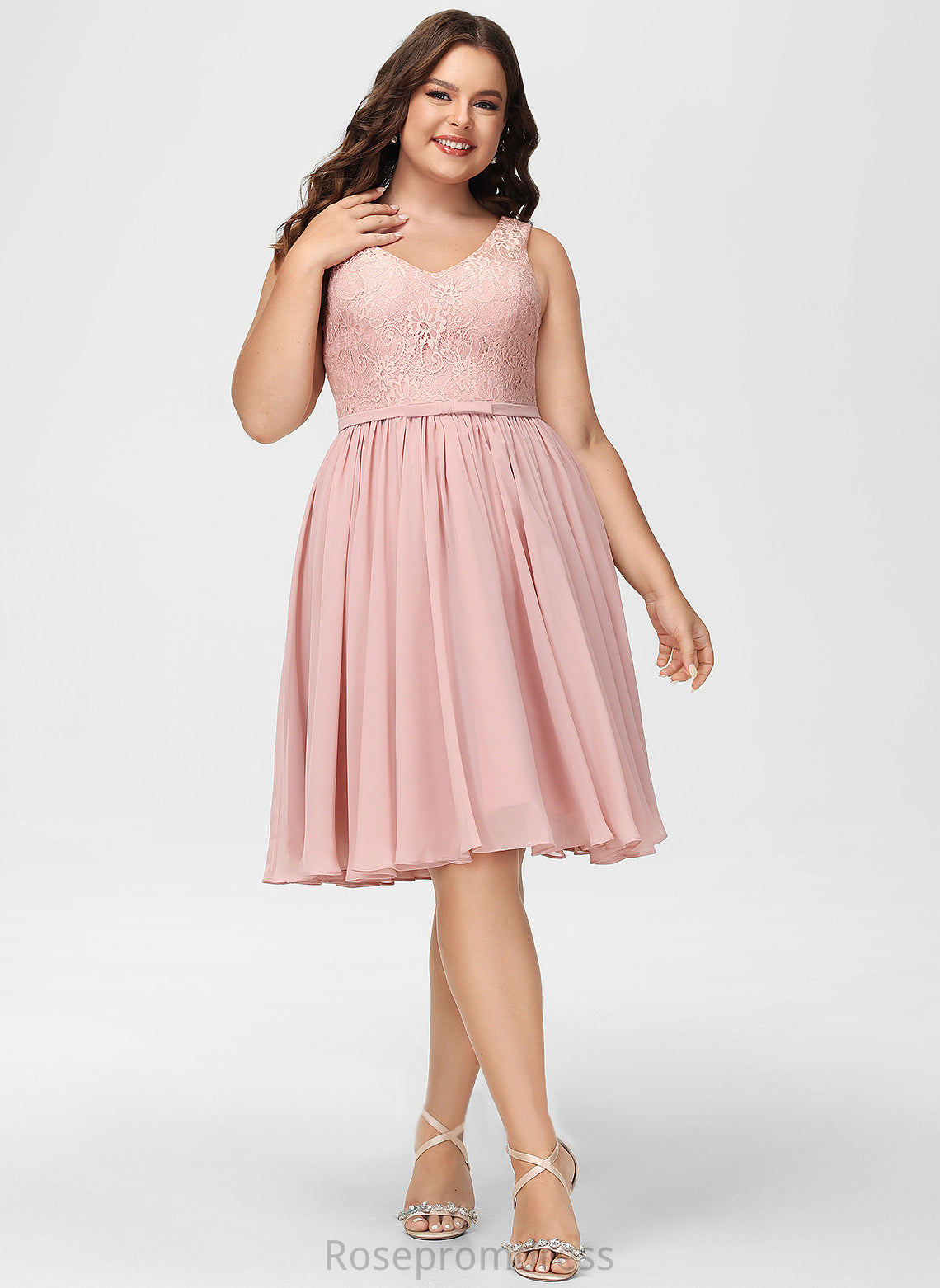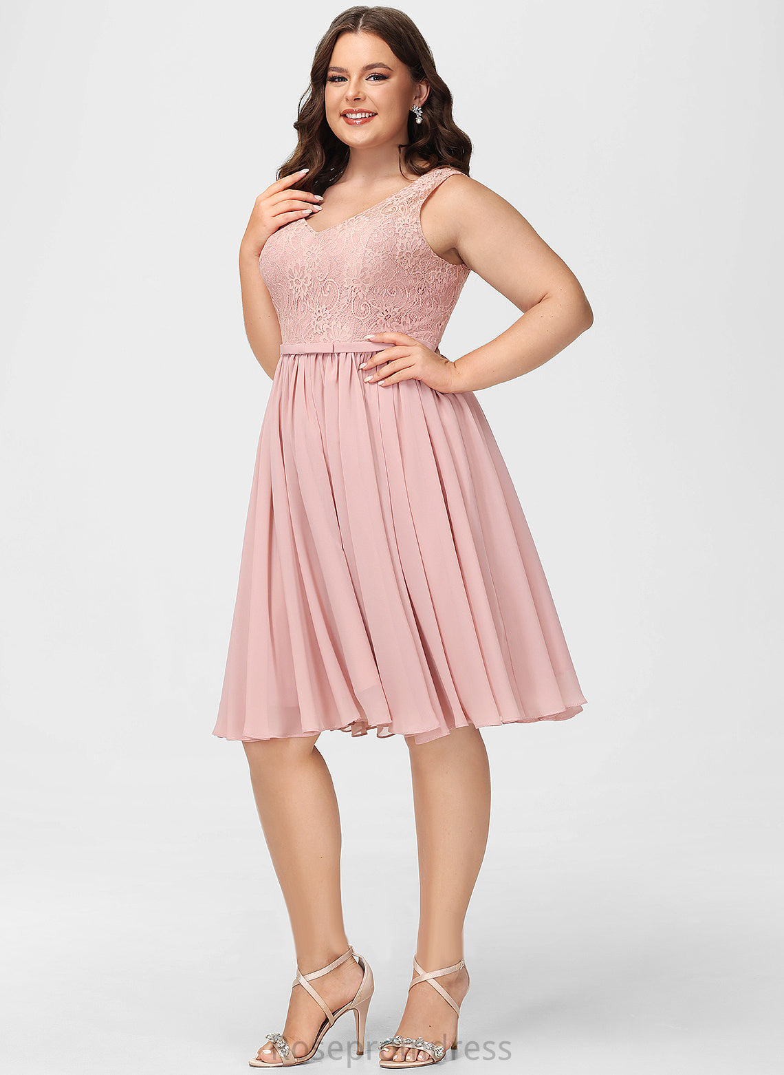 Neckline Fabric Length Silhouette Bow(s) A-Line Lace V-neck Knee-Length Embellishment Lilian Halter Bridesmaid Dresses