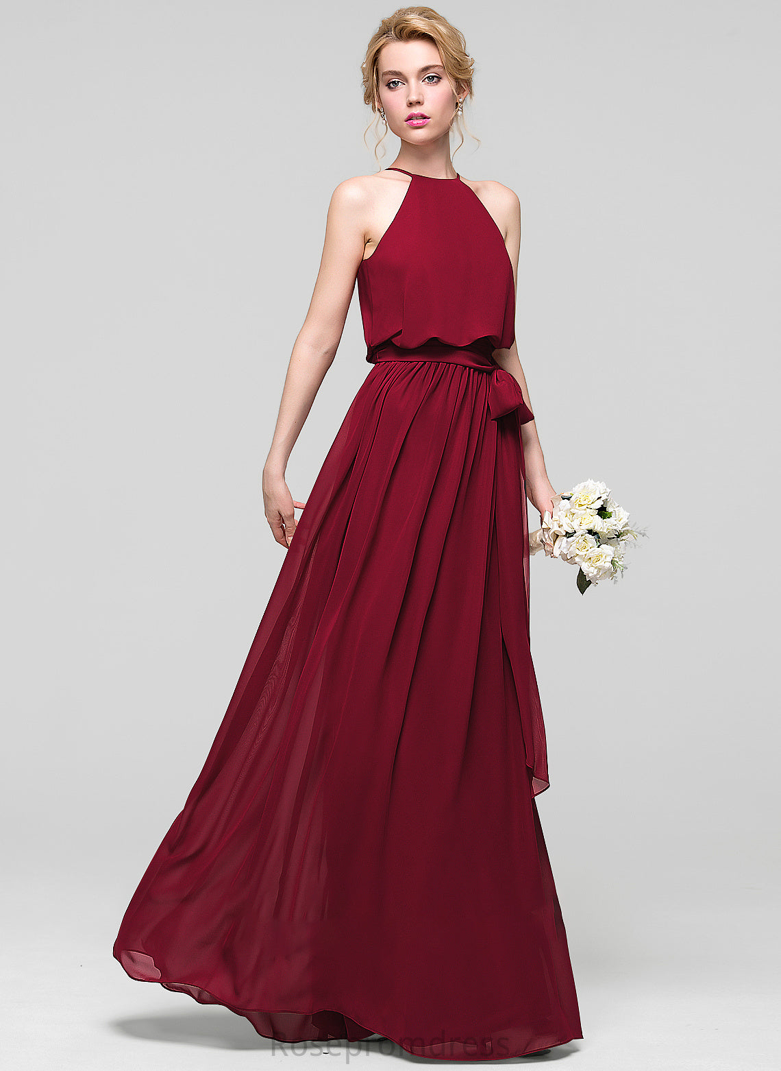 Neckline Fabric Silhouette A-Line Length Bow(s) Embellishment Floor-Length ScoopNeck Thelma A-Line/Princess One Shoulder Bridesmaid Dresses