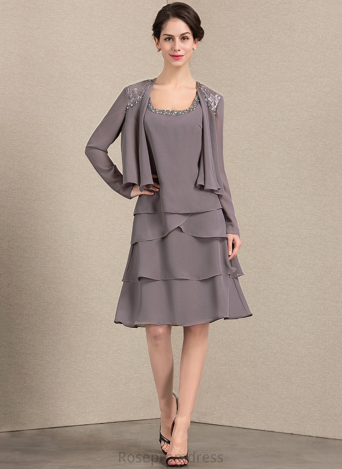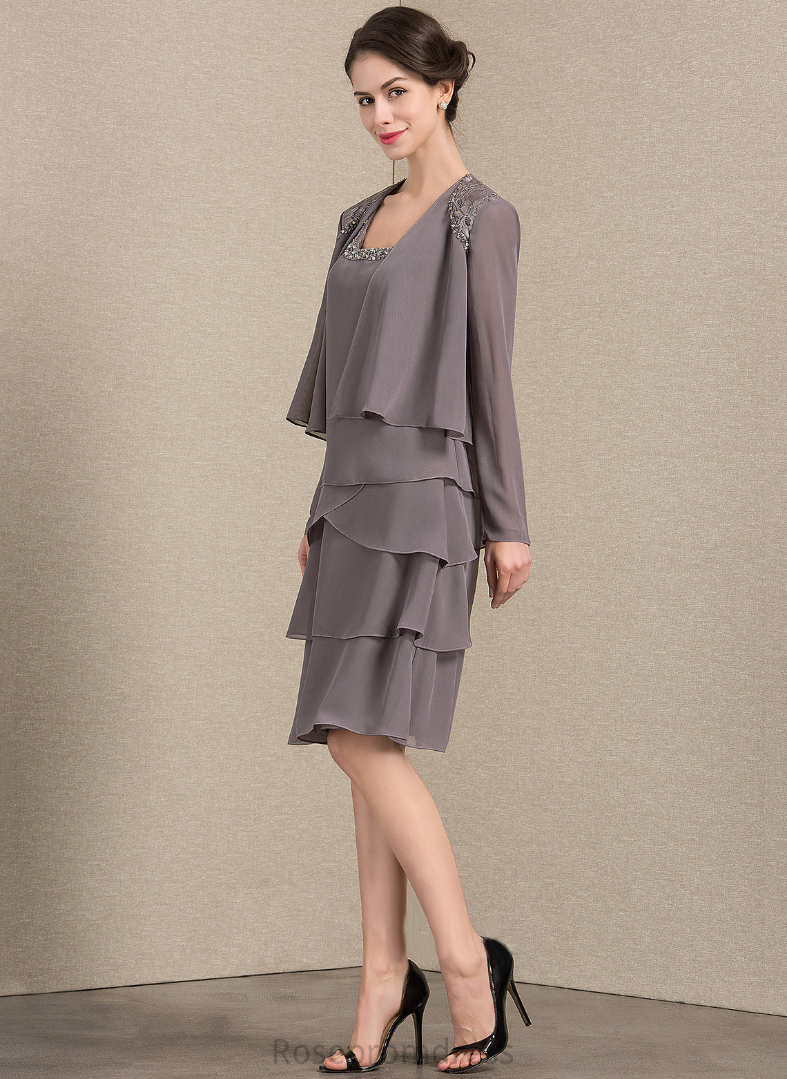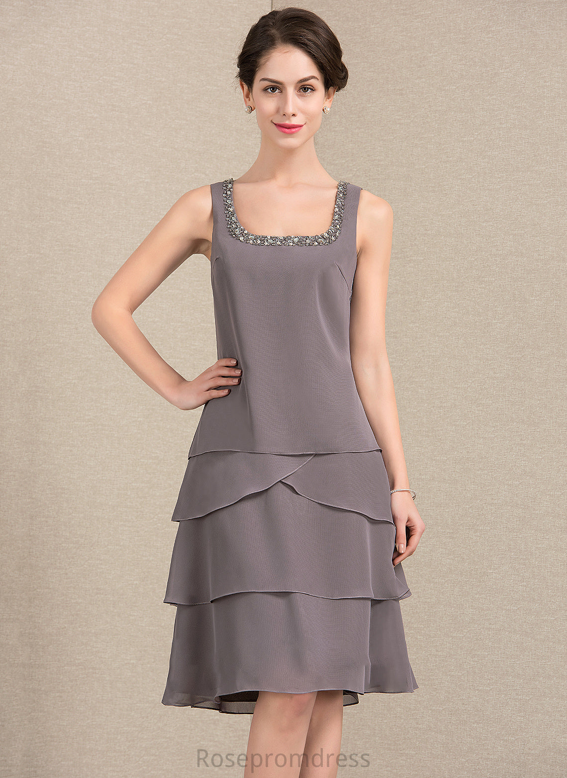 Neckline Gracie of Sequins Square Knee-Length Mother of the Bride Dresses Beading With Bride the Mother Chiffon A-Line Dress