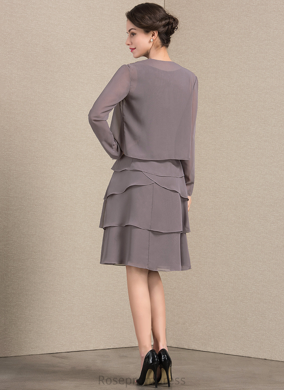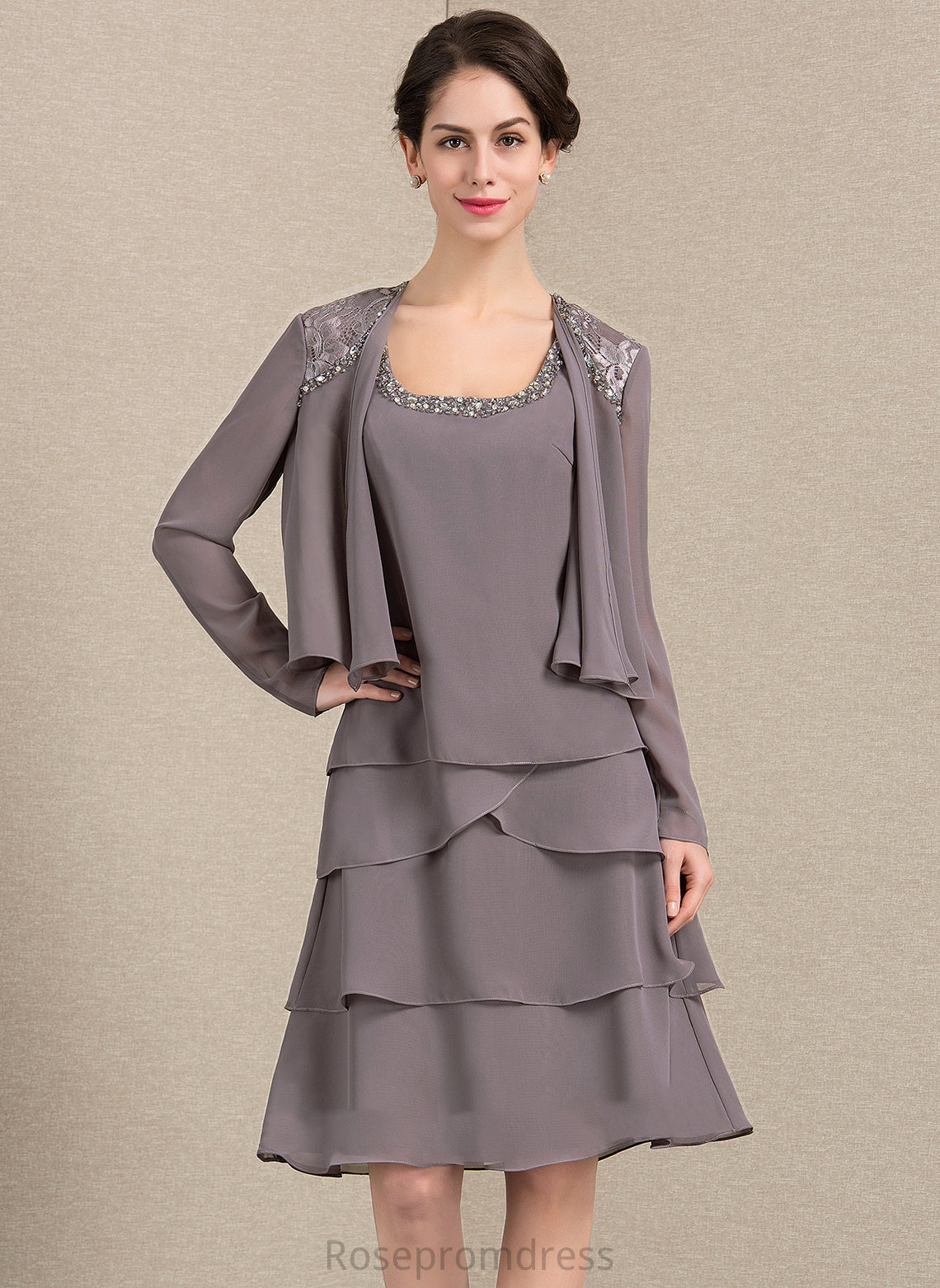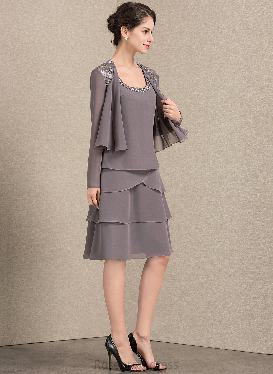 Neckline Gracie of Sequins Square Knee-Length Mother of the Bride Dresses Beading With Bride the Mother Chiffon A-Line Dress