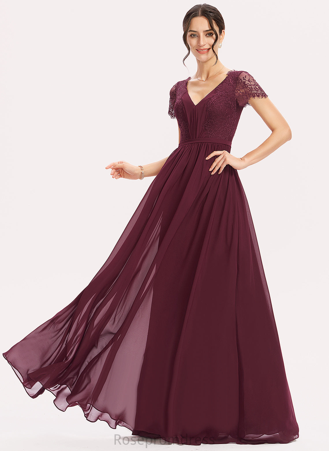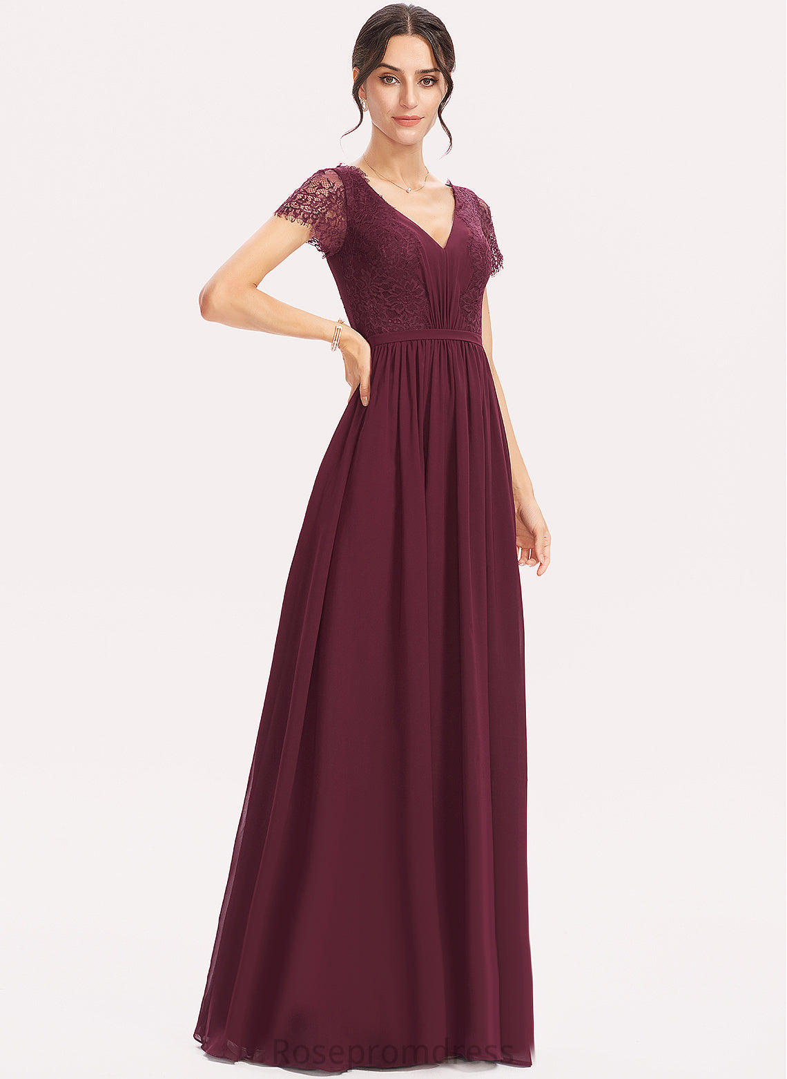Neckline Lace Fabric Length V-Neck A-line Silhouette Floor-Length Straps&Sleeves Akira Bridesmaid Dresses