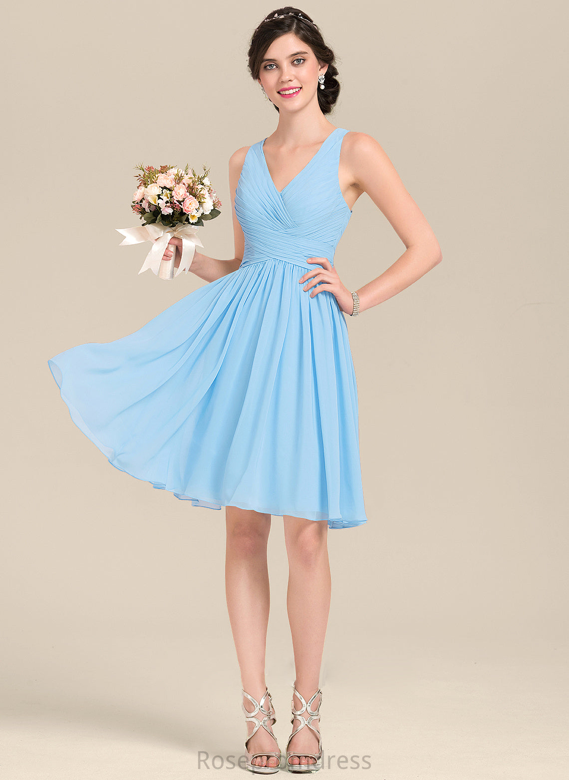 Neckline Length Fabric A-Line Silhouette Embellishment Knee-Length Ruffle V-neck Marin Bridesmaid Dresses
