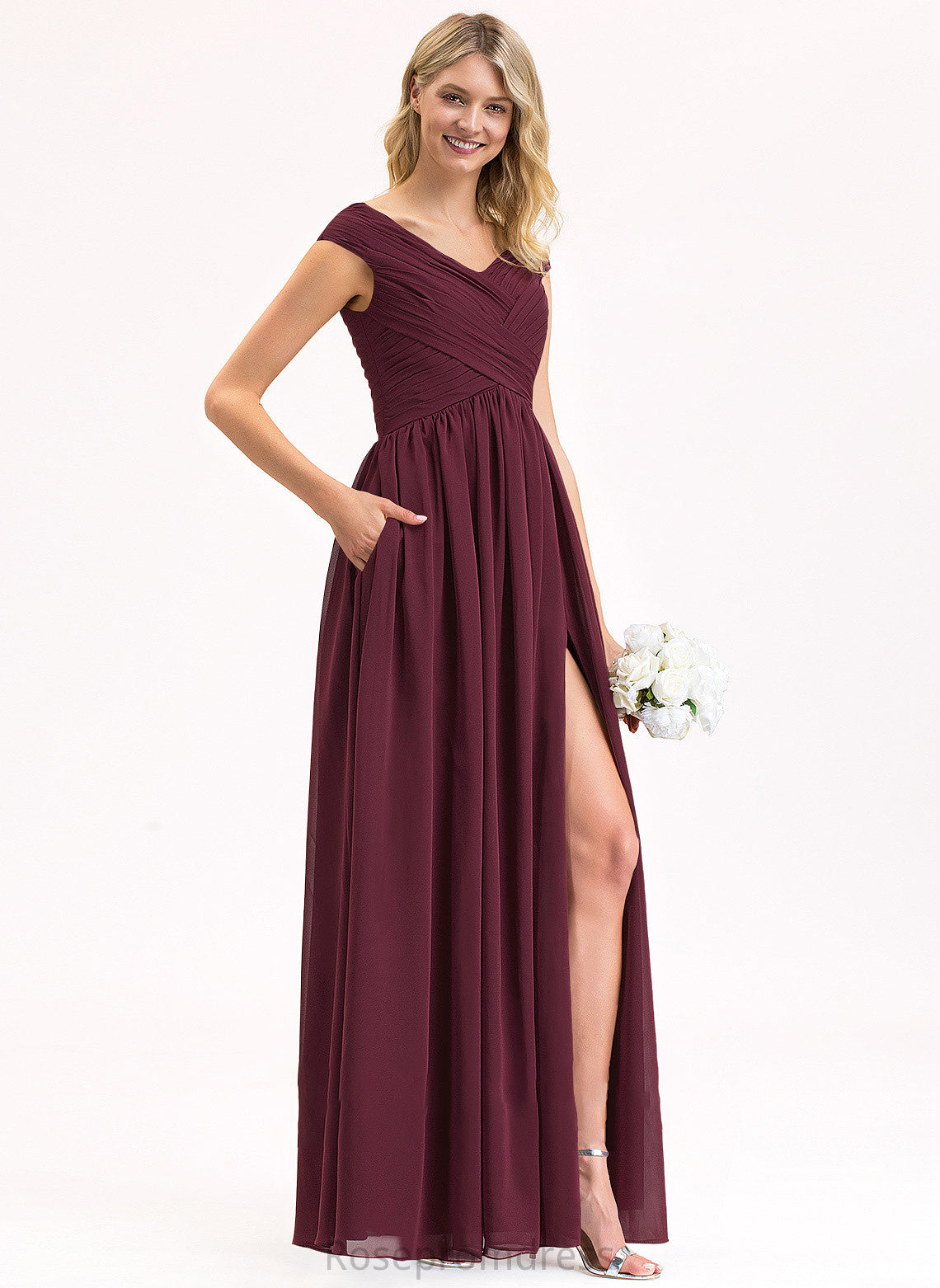 Neckline Off-the-Shoulder Silhouette Fabric Pockets Embellishment Length Floor-Length SplitFront A-Line Ruffle Sara Bridesmaid Dresses