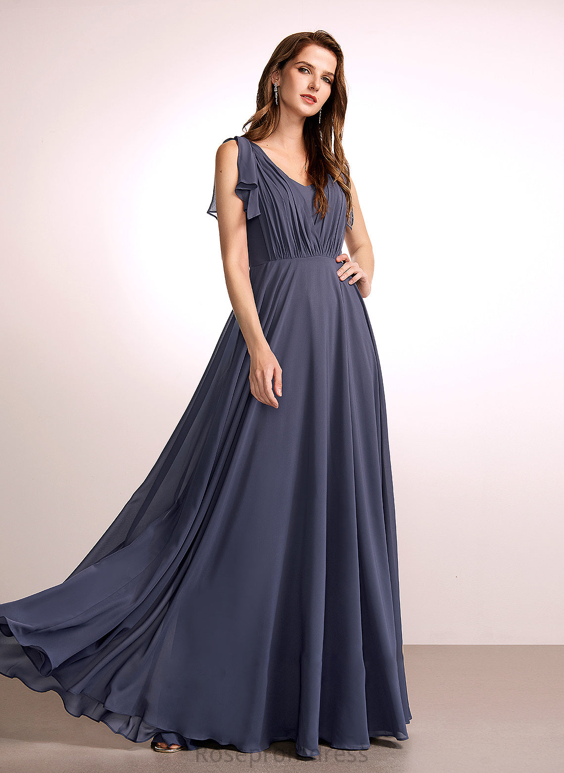 Neckline Ruffle Fabric Silhouette V-neck A-Line Floor-Length Length Embellishment Emma Scoop Sleeveless Bridesmaid Dresses