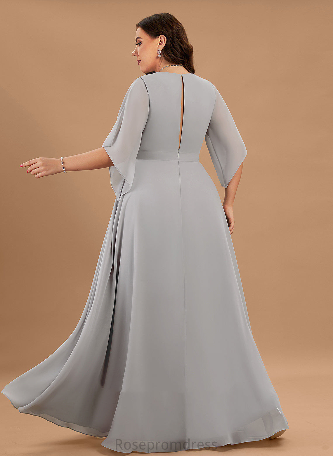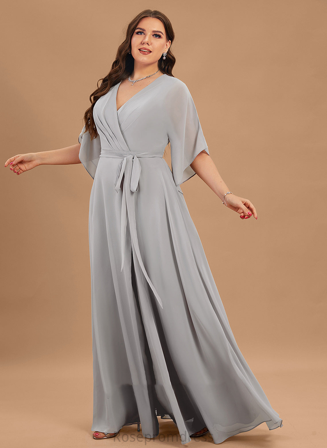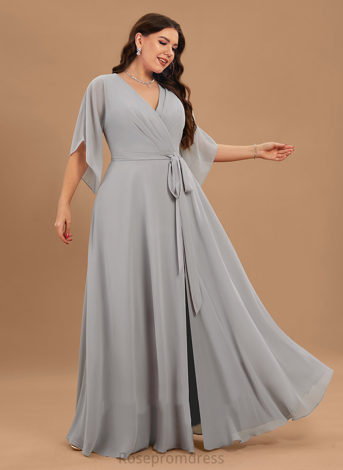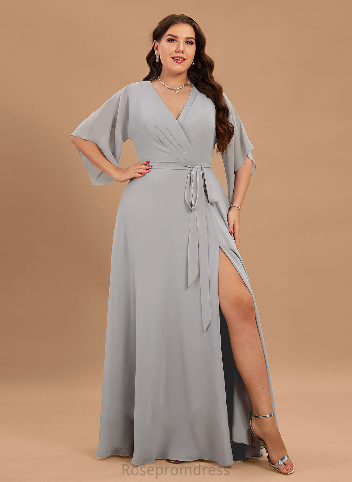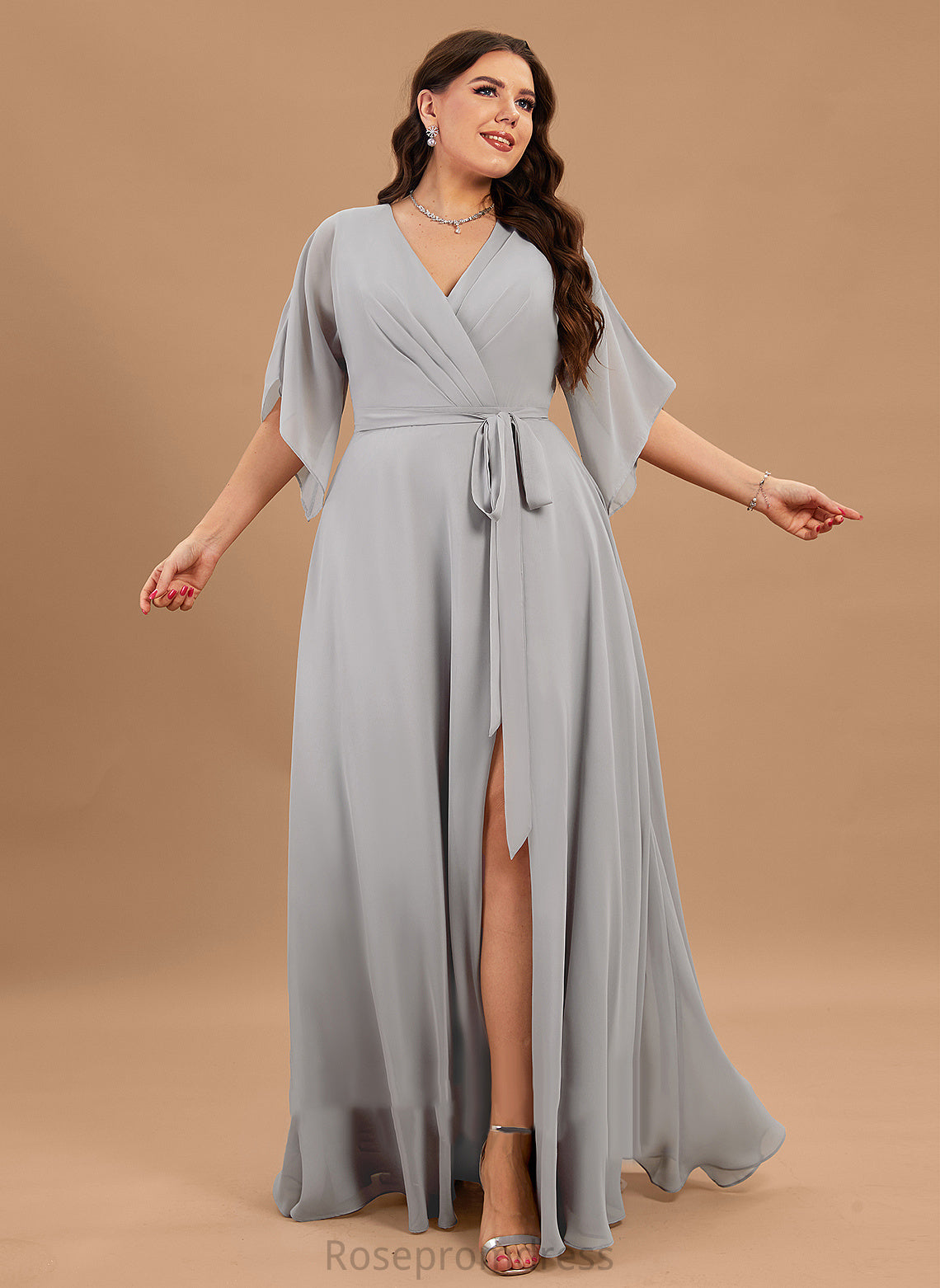 Neckline Ruffle Floor-Length Silhouette V-neck Fabric SplitFront A-Line Length Embellishment Gianna Floor Length Bridesmaid Dresses