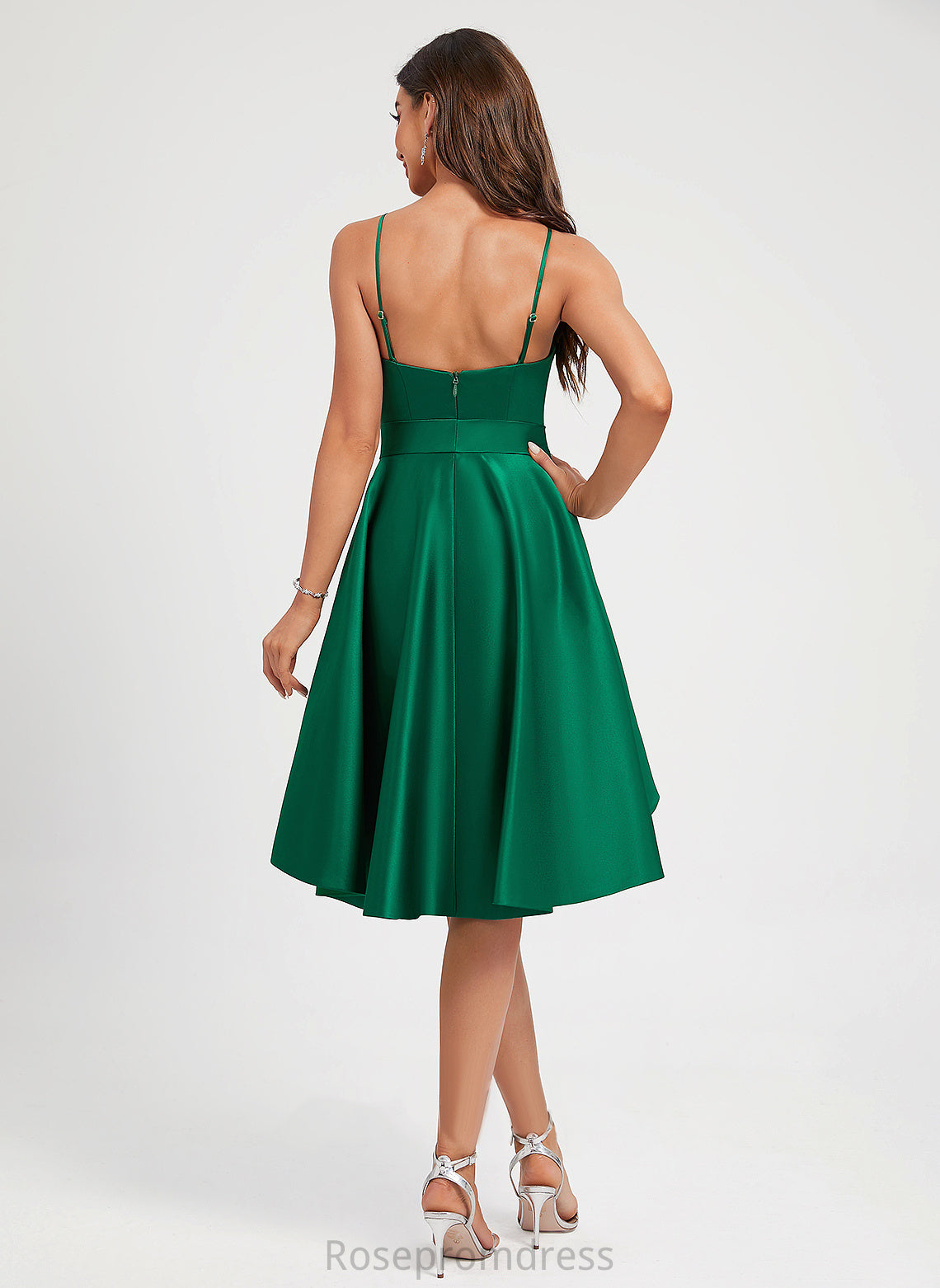 Neckline Satin Knee-Length Homecoming Homecoming Dresses Ruffle Square Bow(s) A-Line Jaylah Dress With