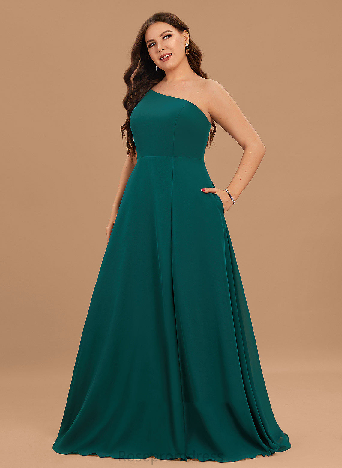 Neckline SplitFront Embellishment One-Shoulder Length A-Line Fabric Silhouette Floor-Length Pockets Amina Bridesmaid Dresses