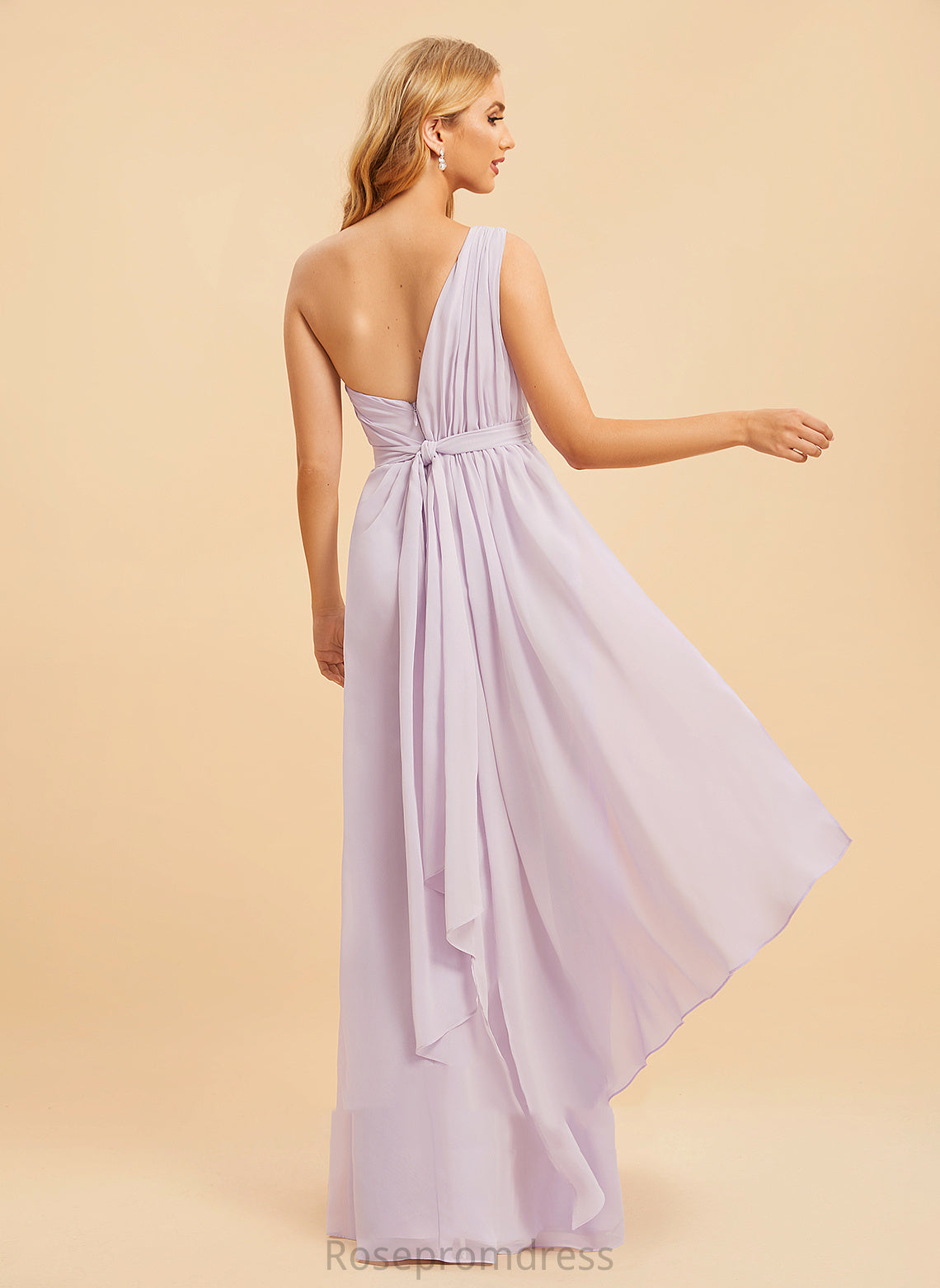 Neckline SplitFront Silhouette Fabric Ruffle A-Line Length Embellishment Floor-Length One-Shoulder Madilynn Empire Waist Bridesmaid Dresses