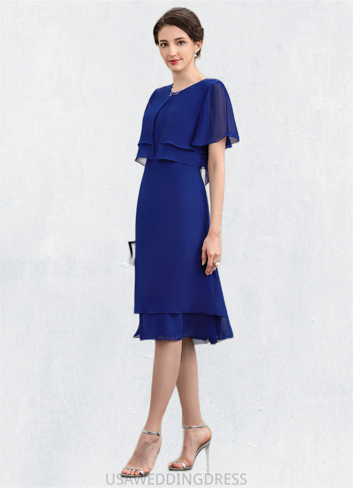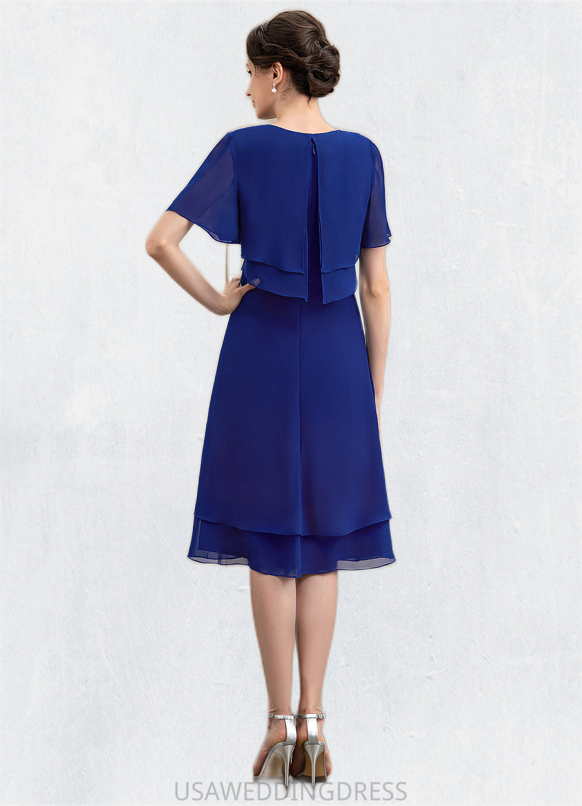 Nevaeh A-Line Scoop Neck Knee-Length Chiffon Mother of the Bride Dress With Cascading Ruffles DS126P0014813