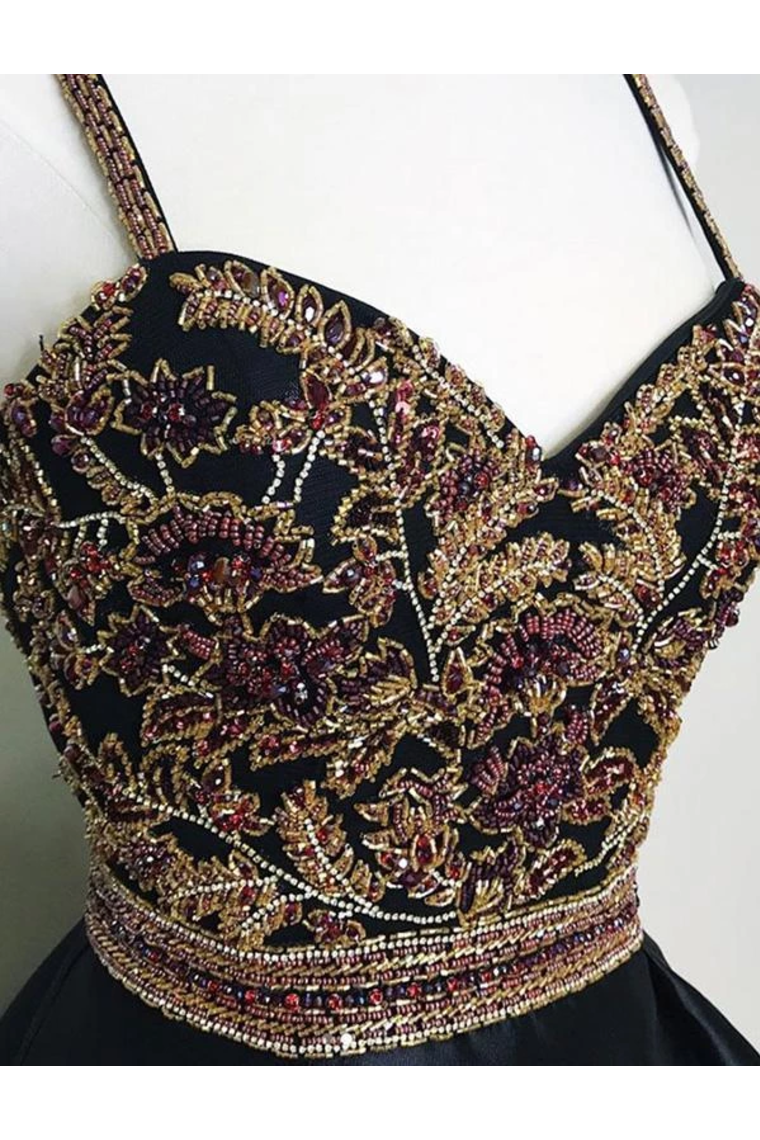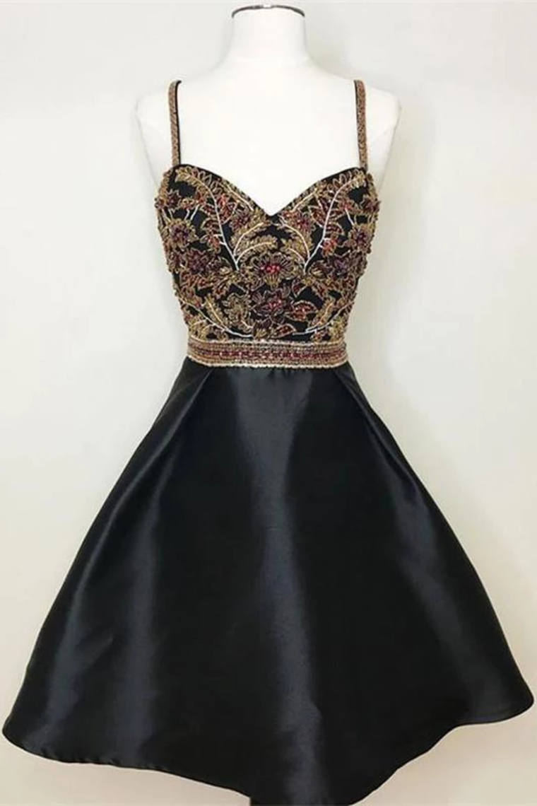 New Arrival Black Spaghetti Straps A Line Beading Homecoming Dresses