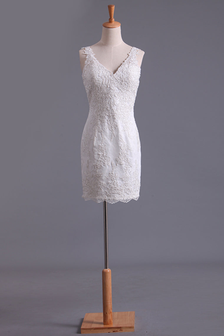 New Arrival Spaghetti Straps Wedding Dresses Sheath Lace & Tulle With Applique Court Train SRSPRX2EKZH