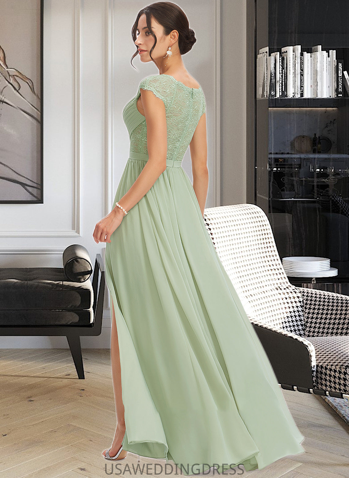 Nia A-Line V-neck Floor-Length Bridesmaid Dress With Lace Split Front DSP0013096