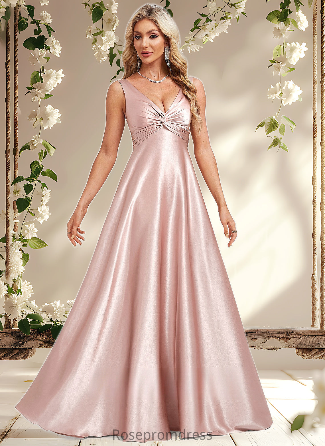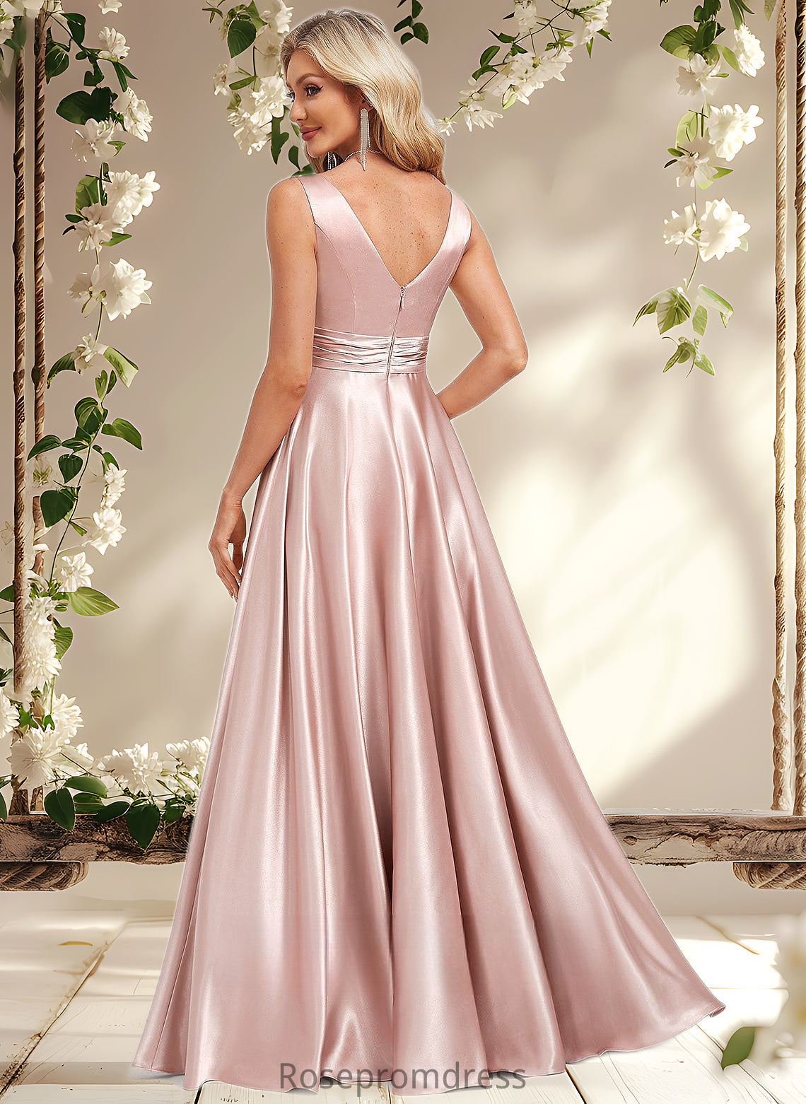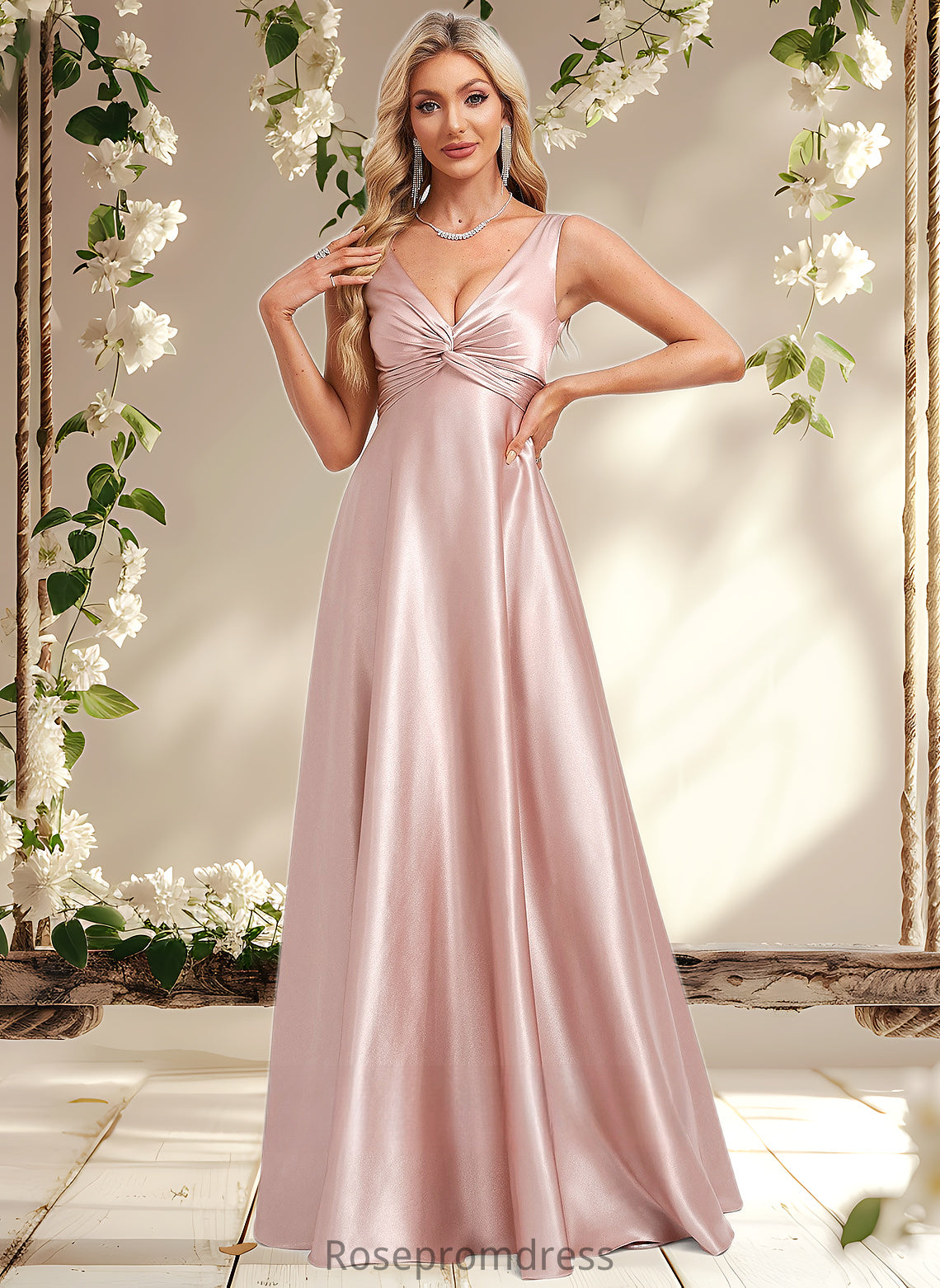 Nina A-line V-Neck Floor-Length Stretch Satin Bridesmaid Dress DSP0025779