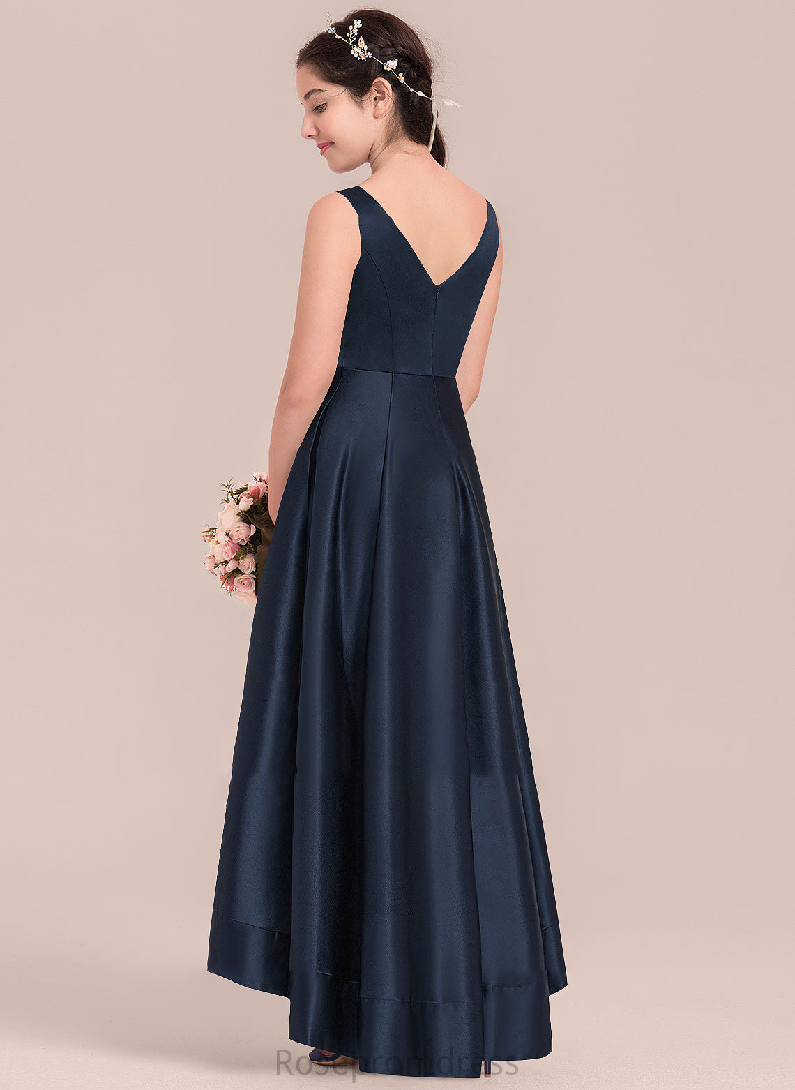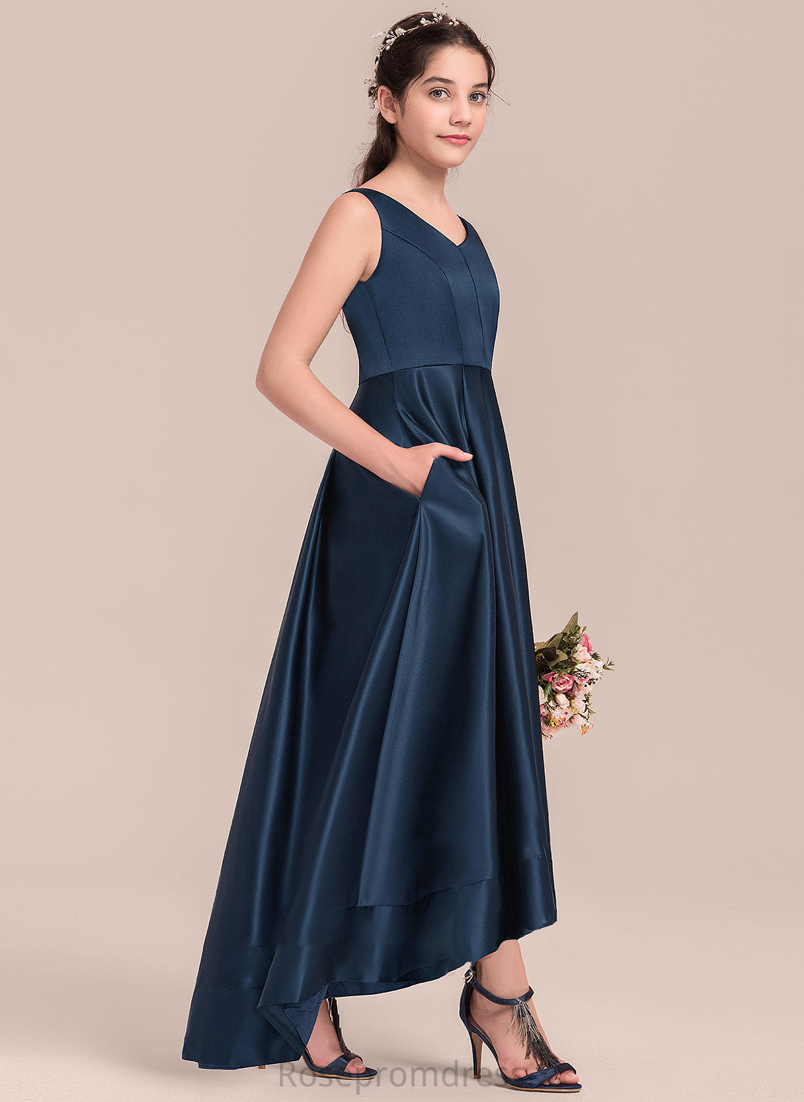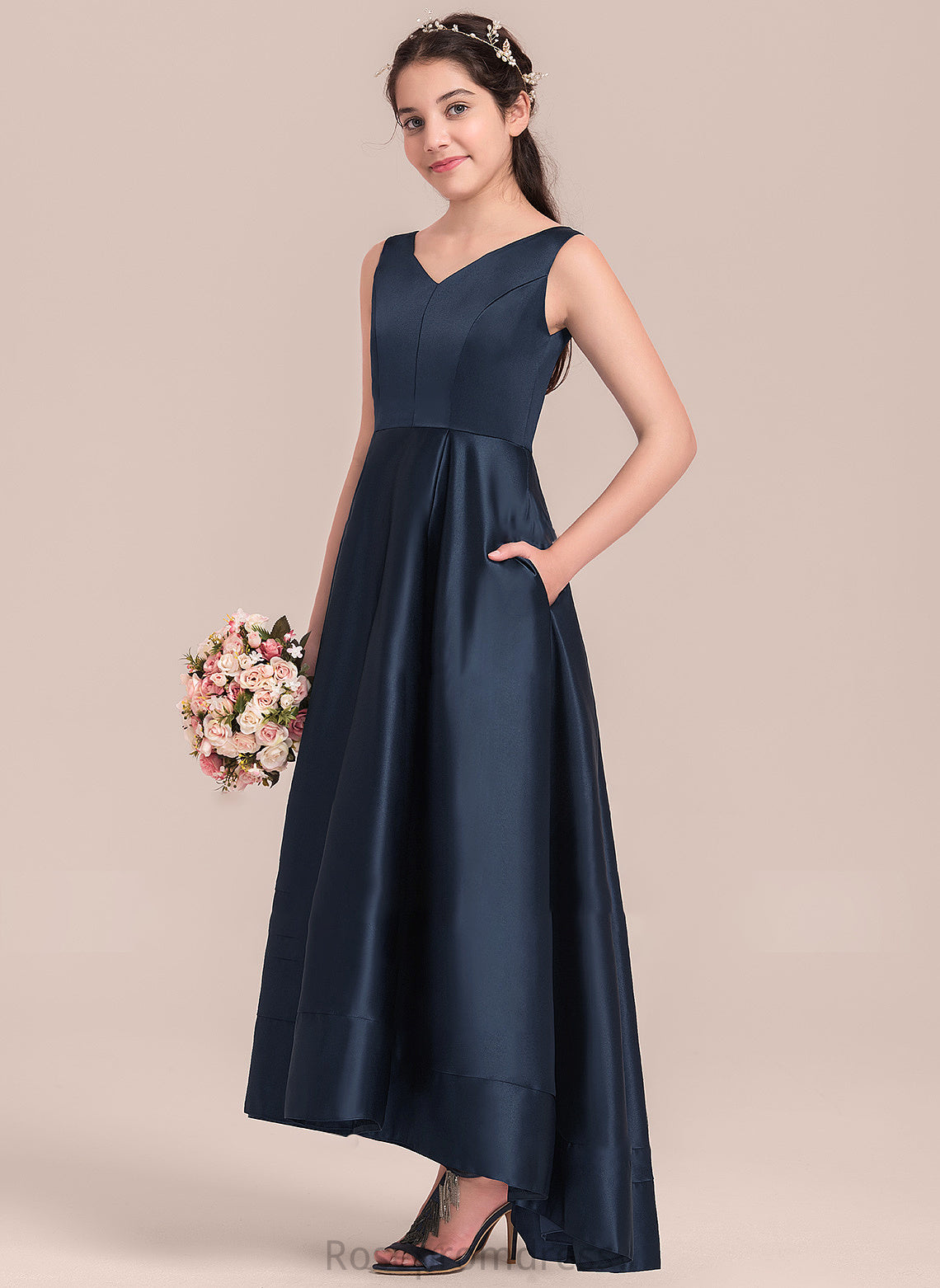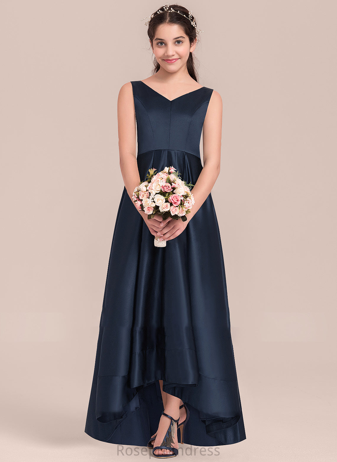 Nita Asymmetrical A-Line Satin Junior Bridesmaid Dresses V-neck