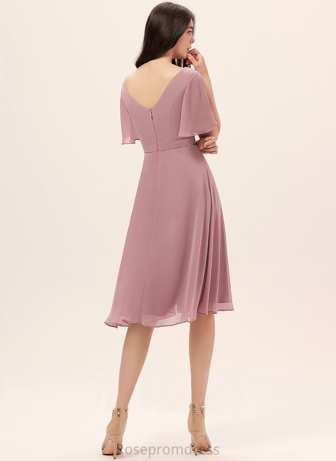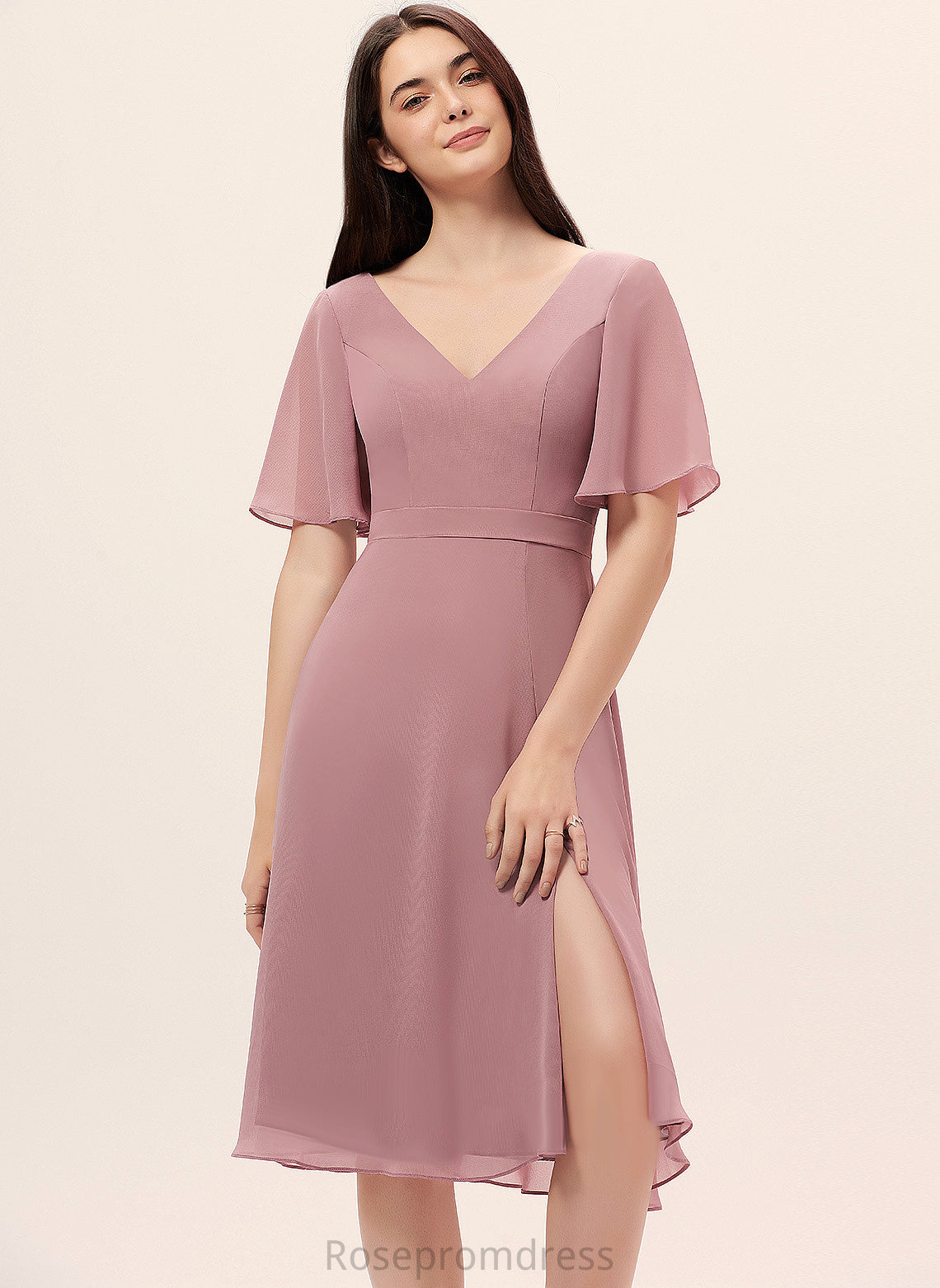 Noelle V-neck Front Dress Cocktail Split With A-Line Knee-Length Chiffon Cocktail Dresses