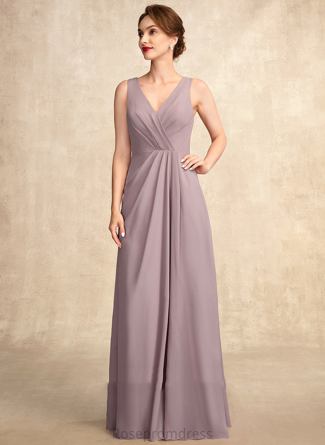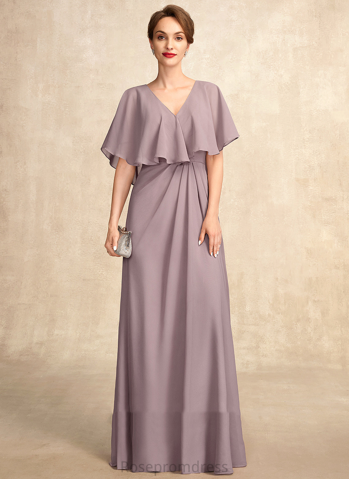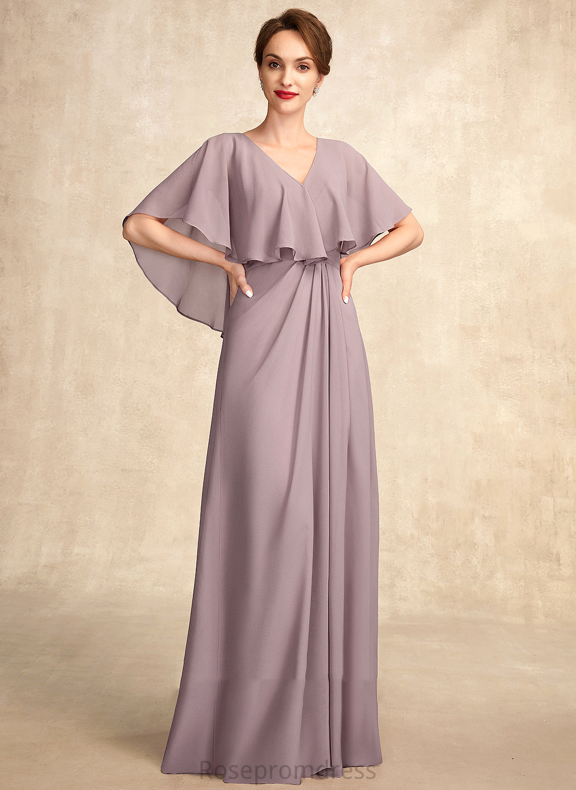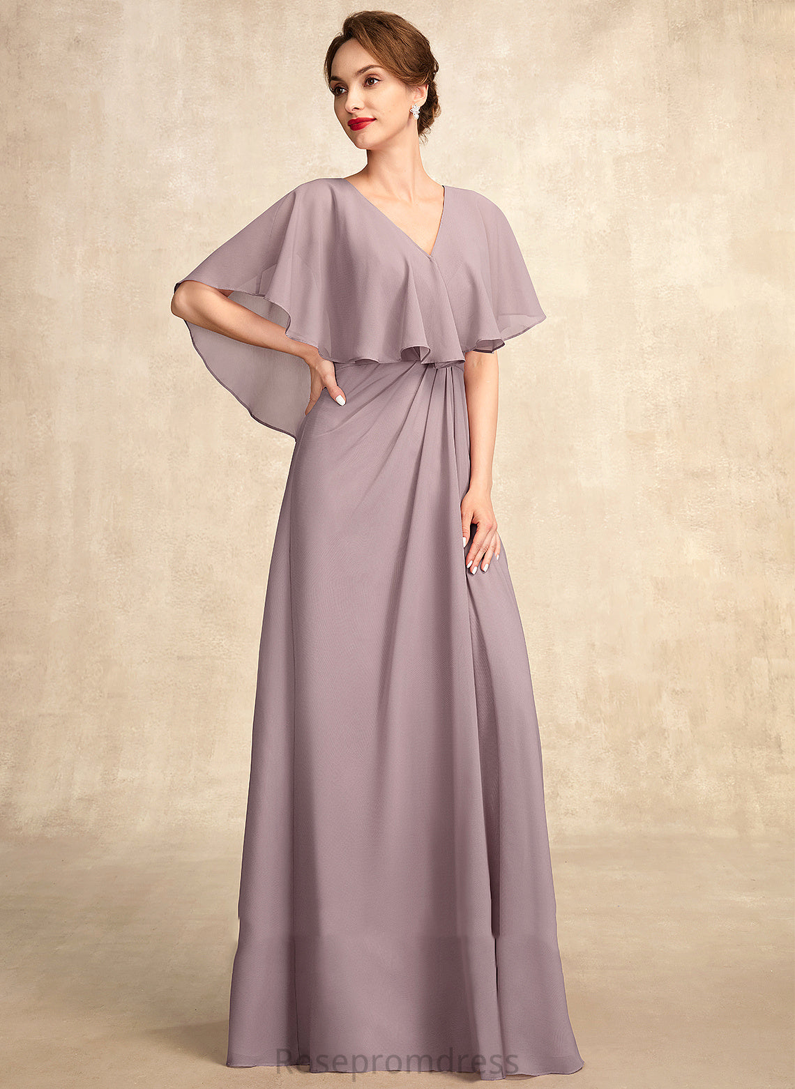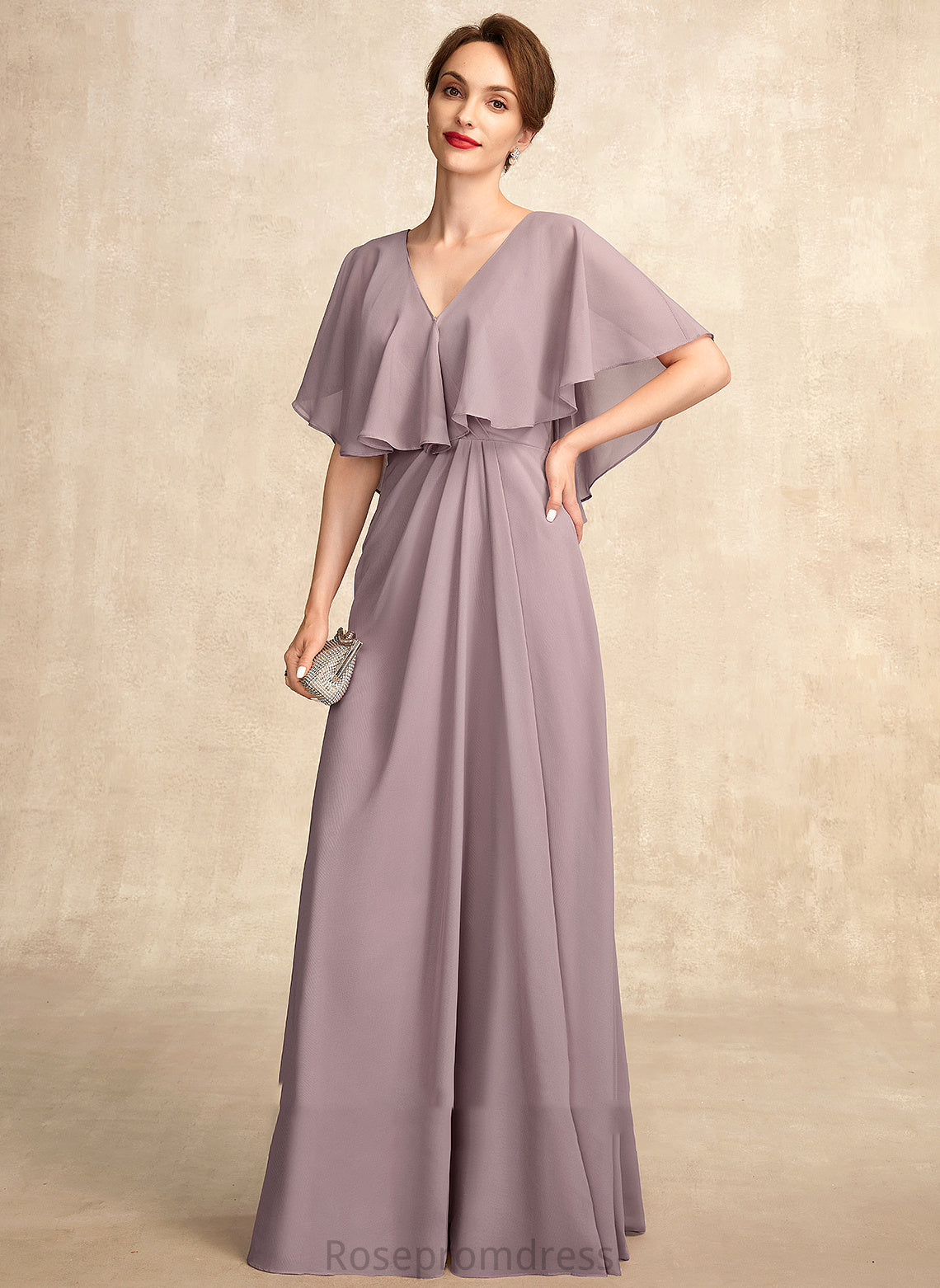 of A-Line Dress the With Chiffon Mother of the Bride Dresses Floor-Length Mother Bride Rose Ruffle V-neck