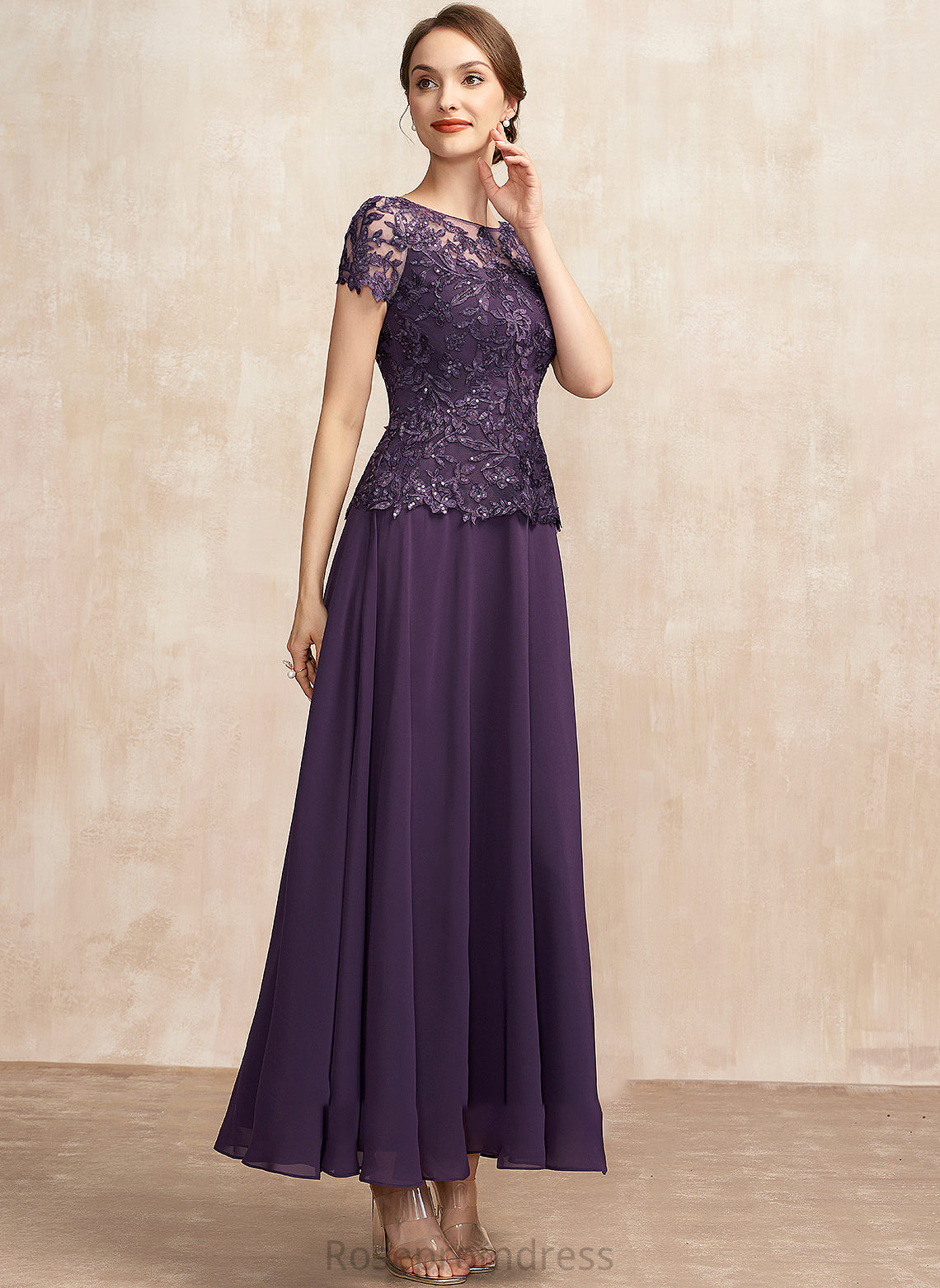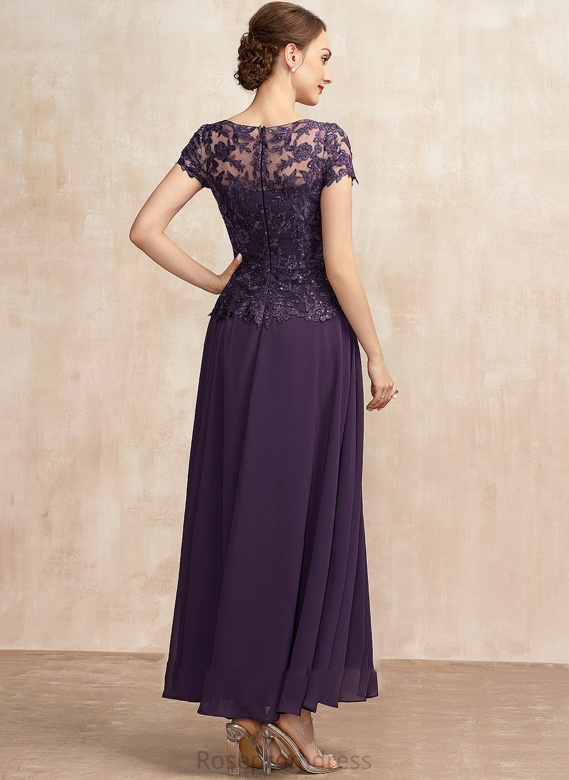 of Ankle-Length A-Line Mother of the Bride Dresses Lace Dress Neck Bride Sabrina the Sequins Mother With Scoop Chiffon