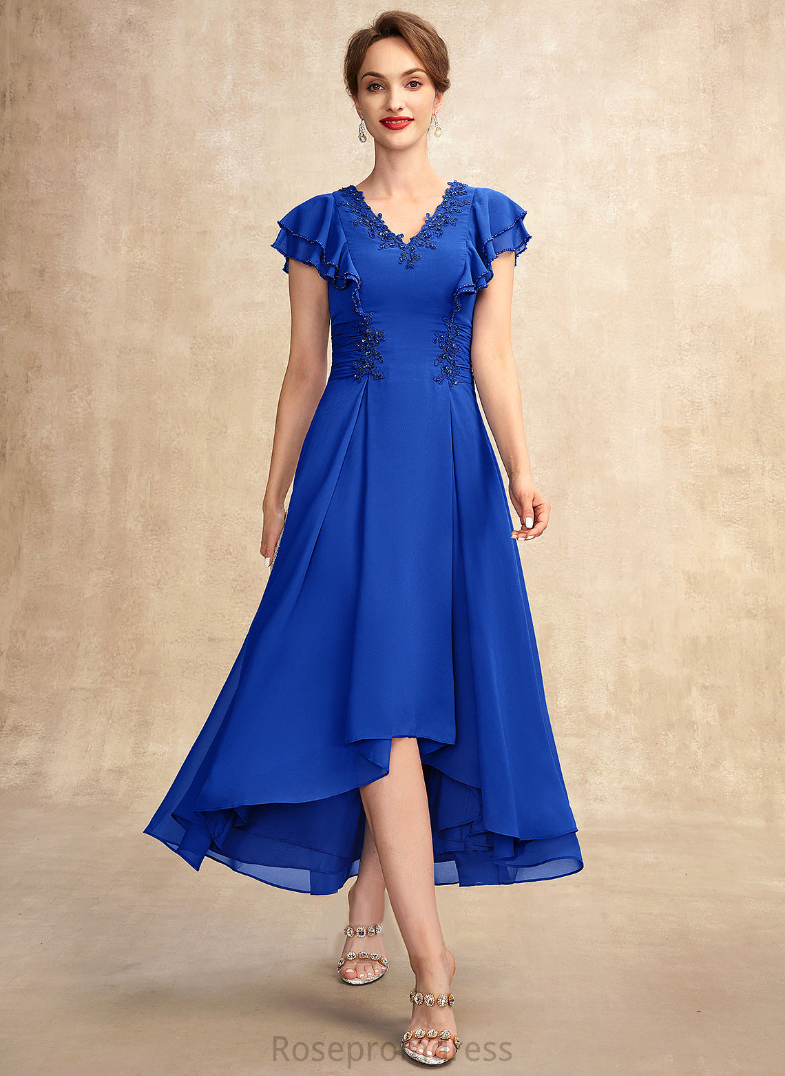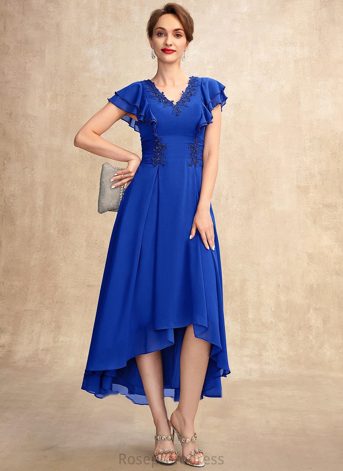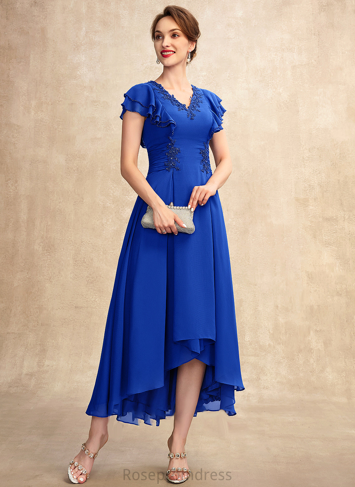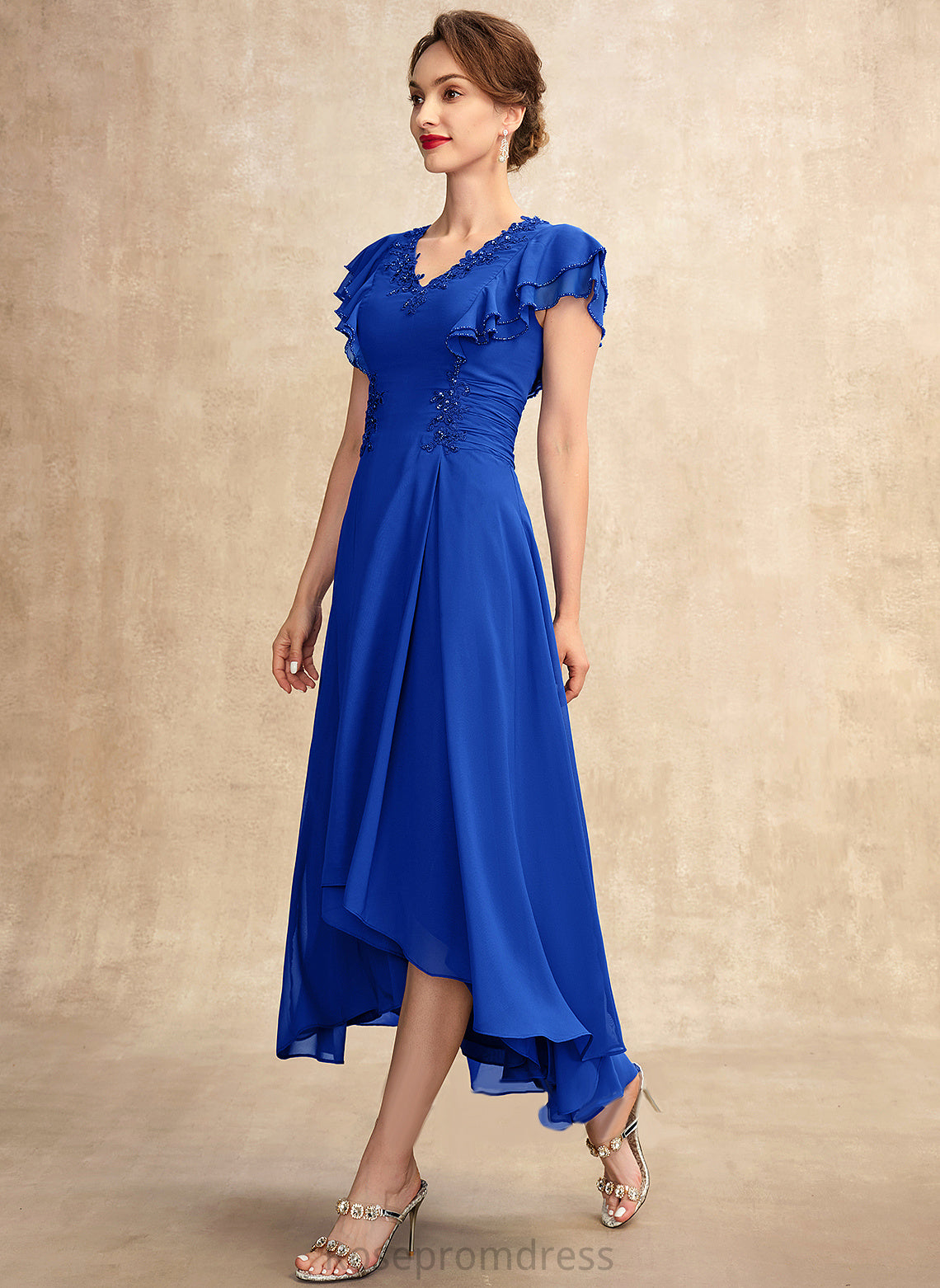 of Asymmetrical the Dress Cascading Mother A-Line Sequins V-neck Ruffles Lace Alena With Bride Mother of the Bride Dresses Appliques Chiffon Beading