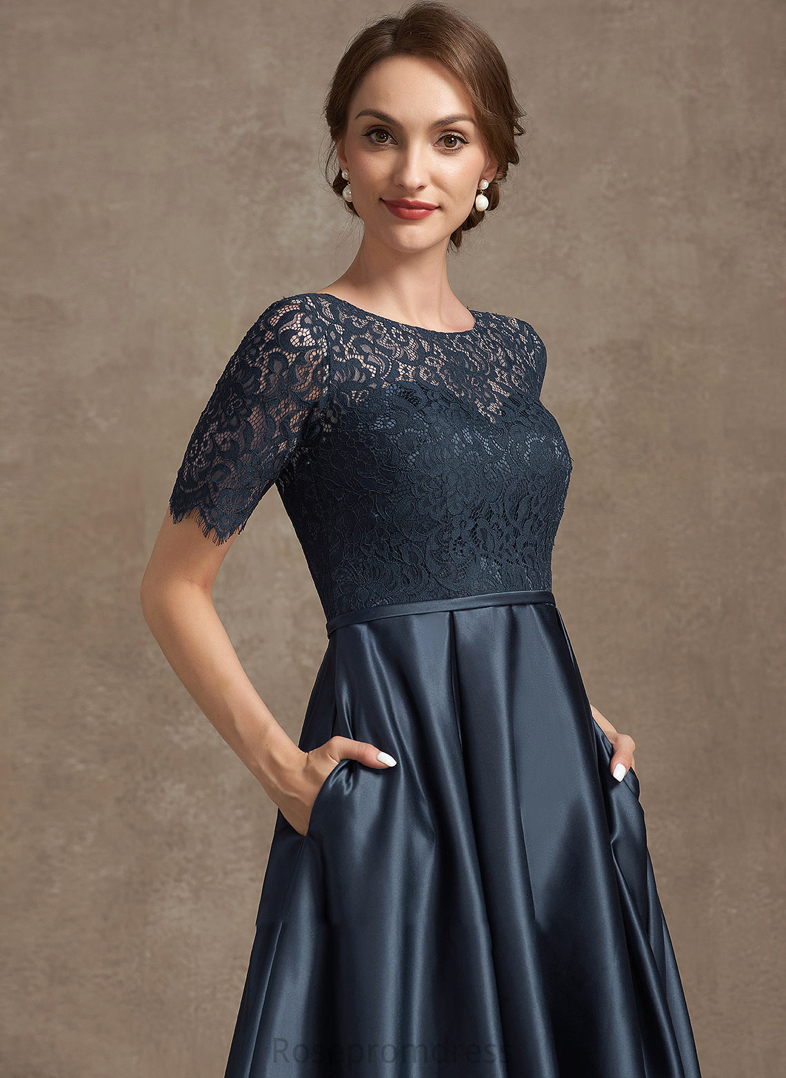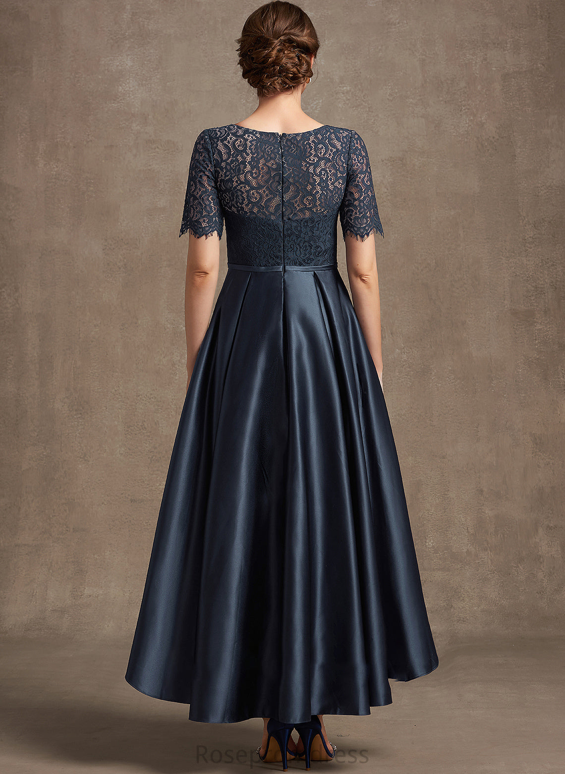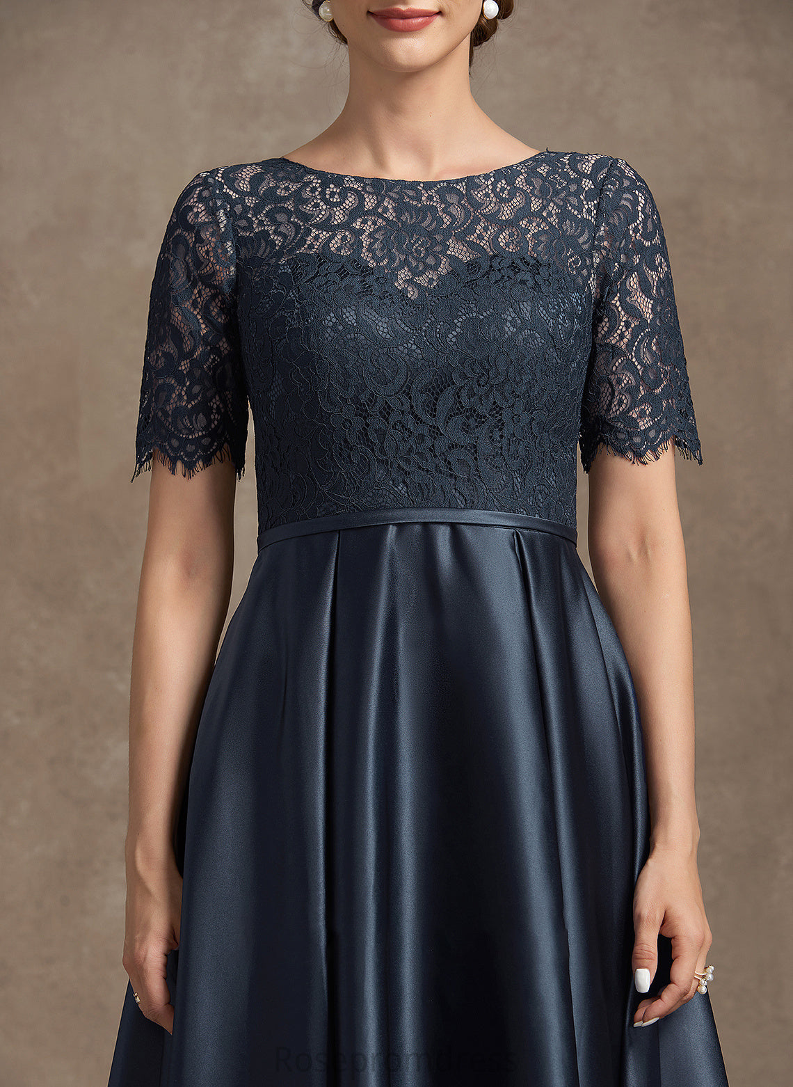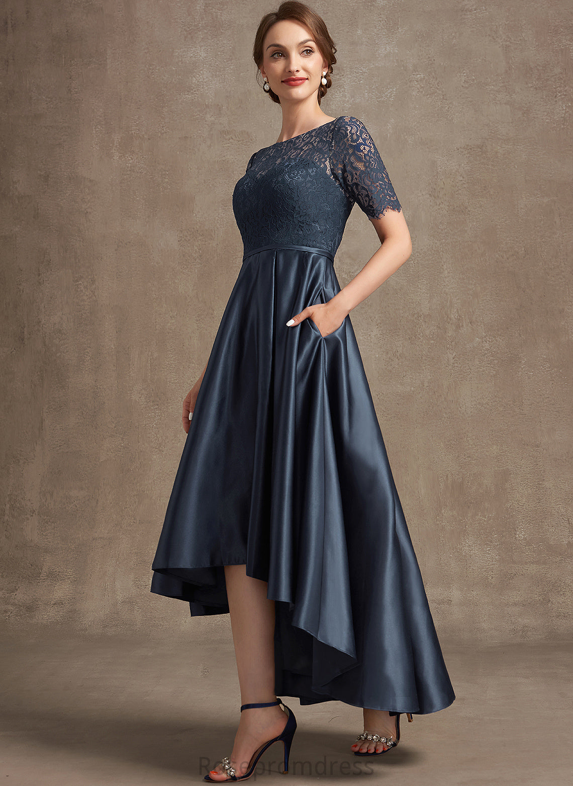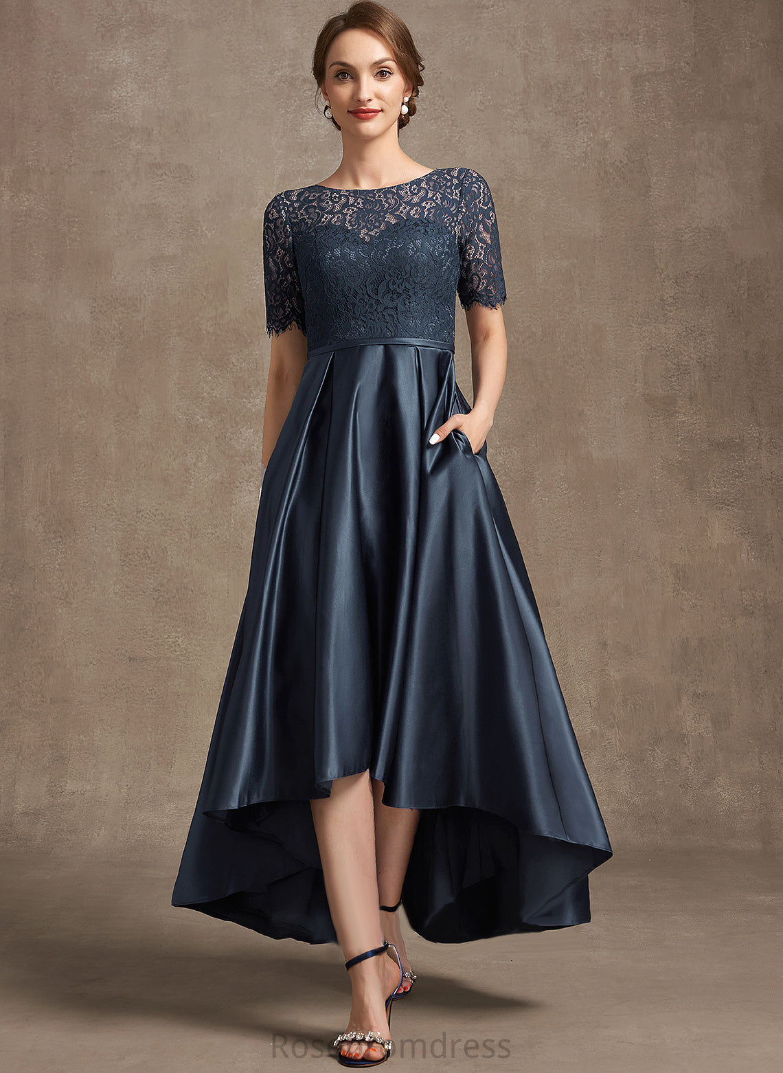 of Bride Neck Satin Sandy Mother of the Bride Dresses A-Line Scoop the Lace Dress Mother Asymmetrical