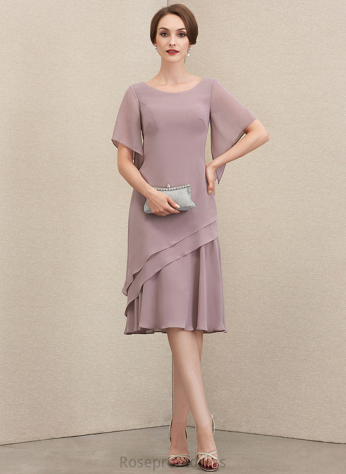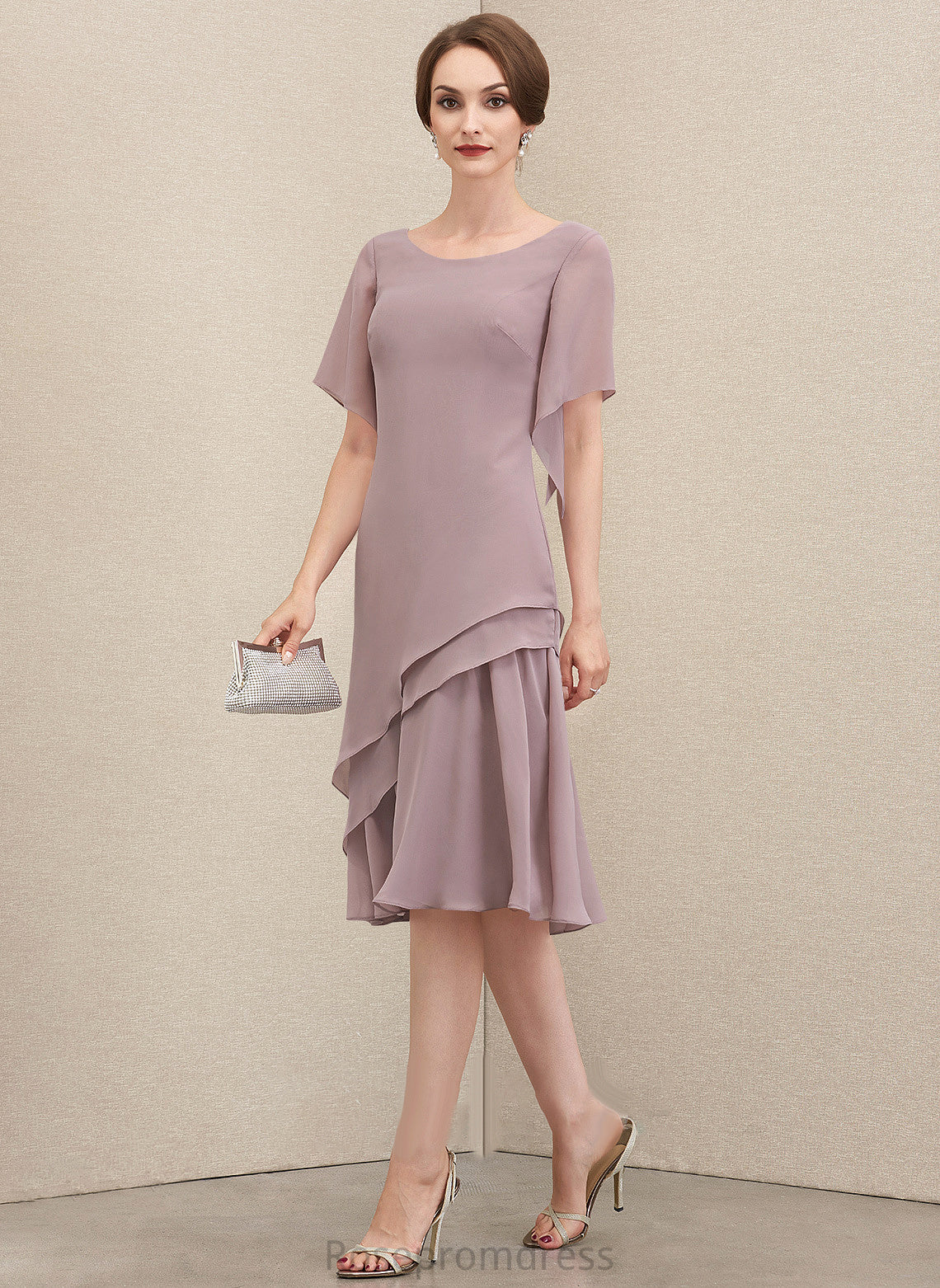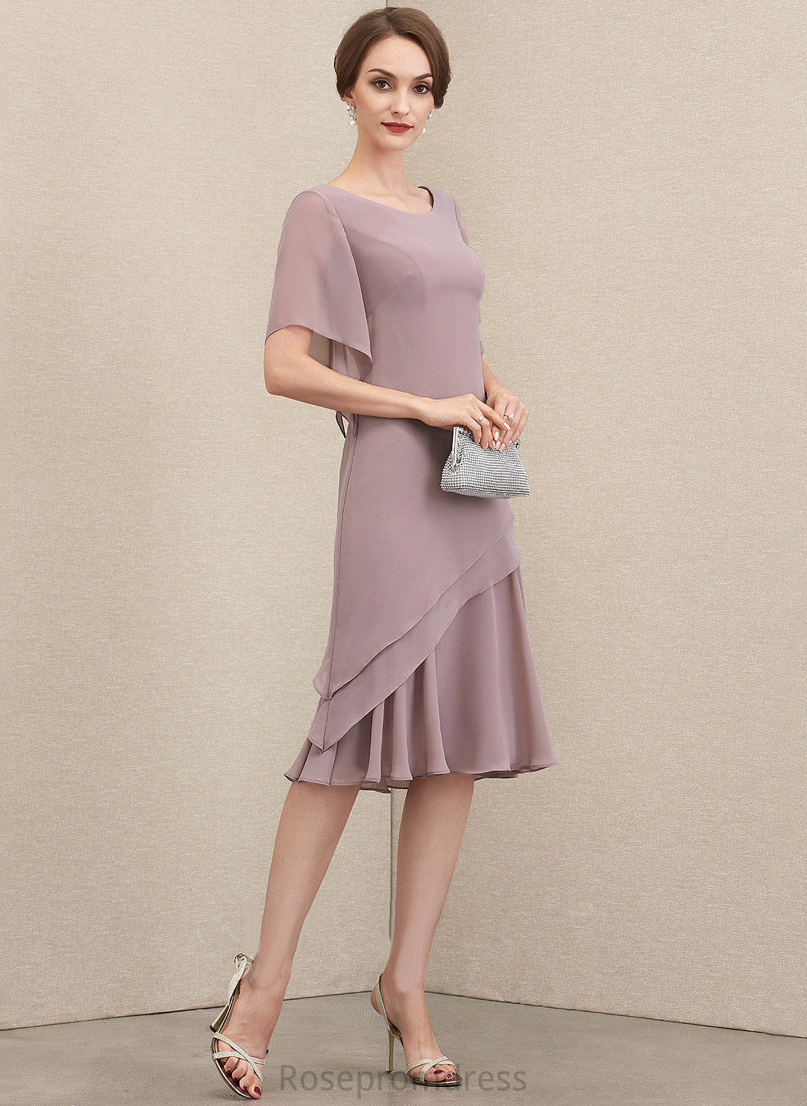 of Chiffon Mother Cascading A-Line the Knee-Length Dress Mother of the Bride Dresses Neck With Ruffles Bride Danica Scoop